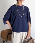 肩に被るショルダーデザインが特徴的なヤッコスリーブのトップスです。
