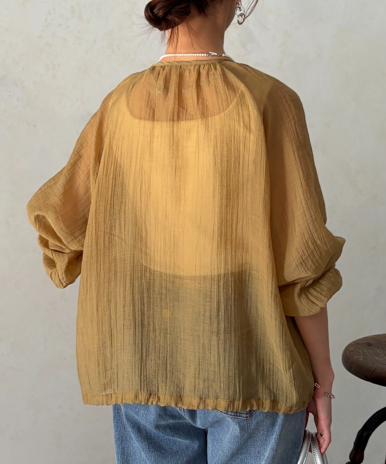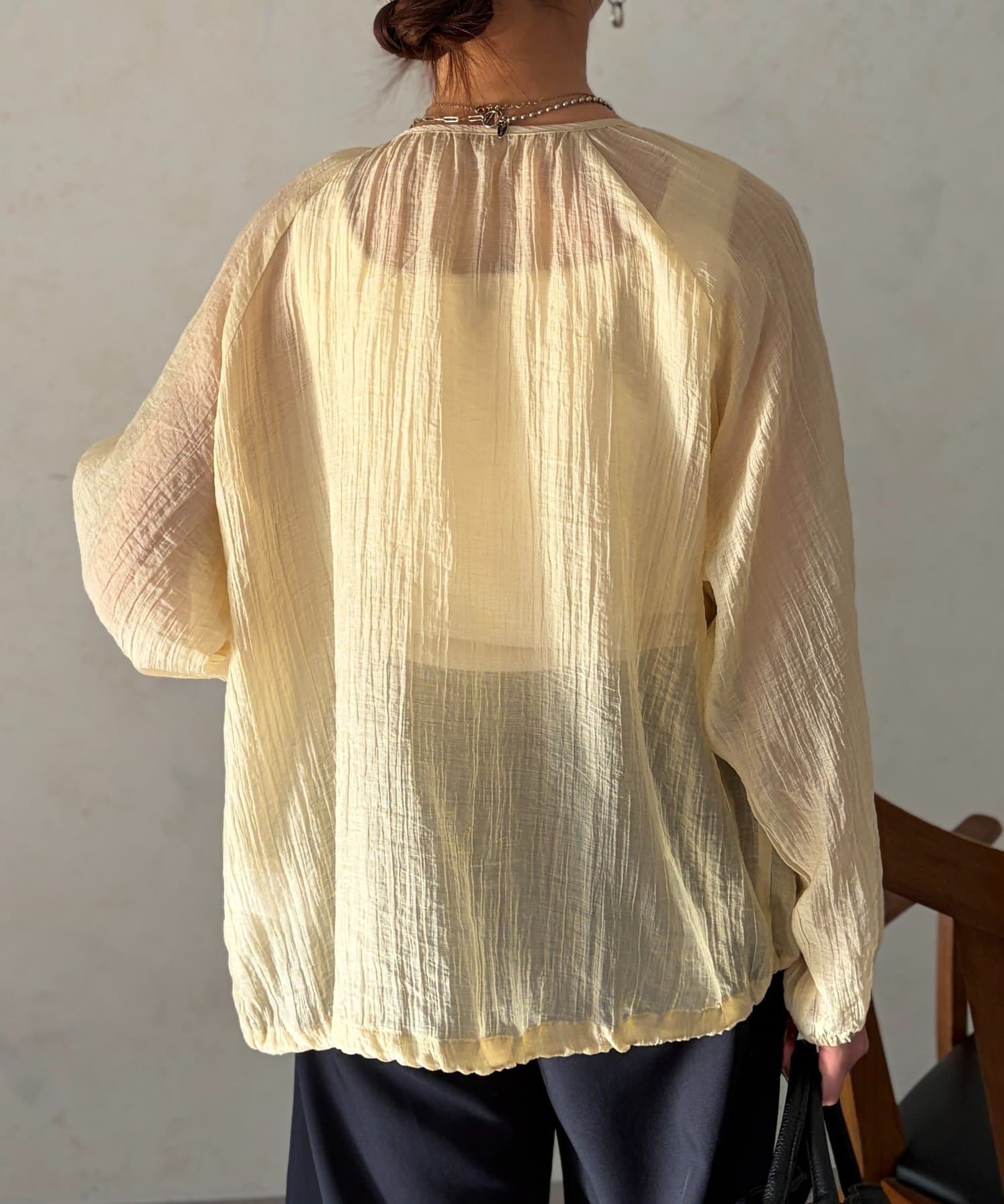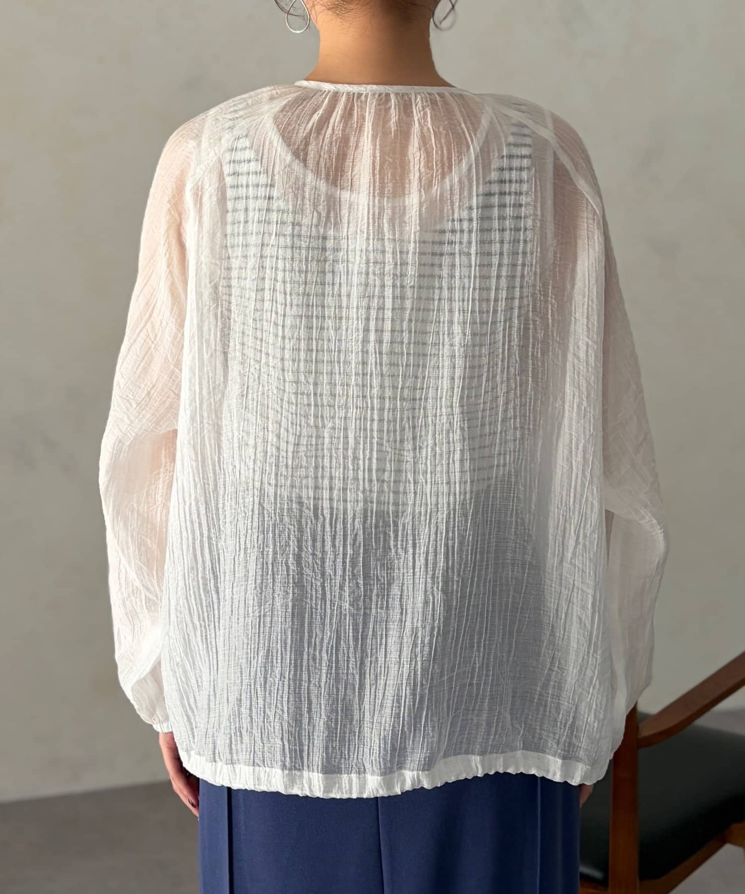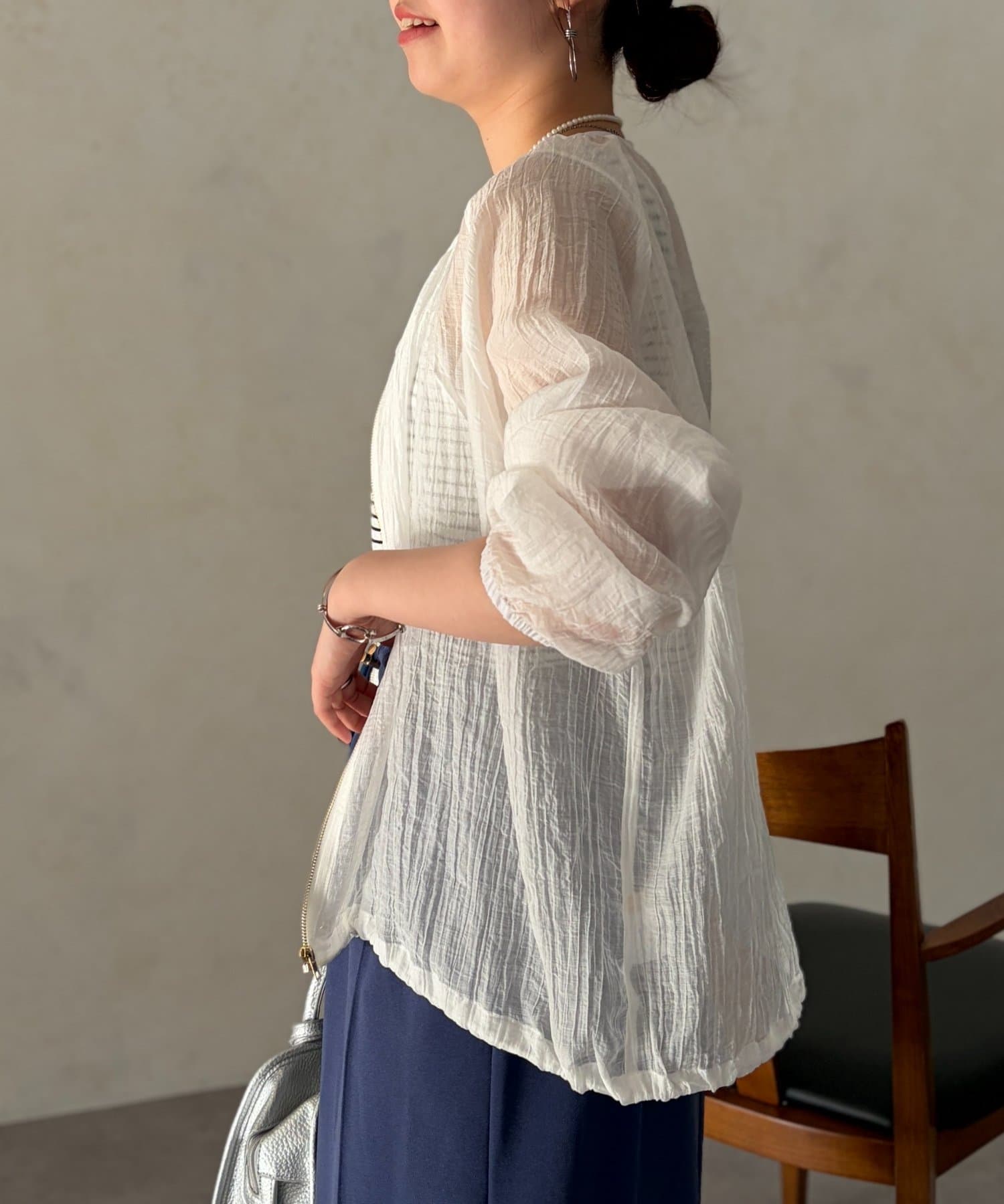 やり過ぎない透け感で適度な肌見せになり、涼し気に着ていただけます。