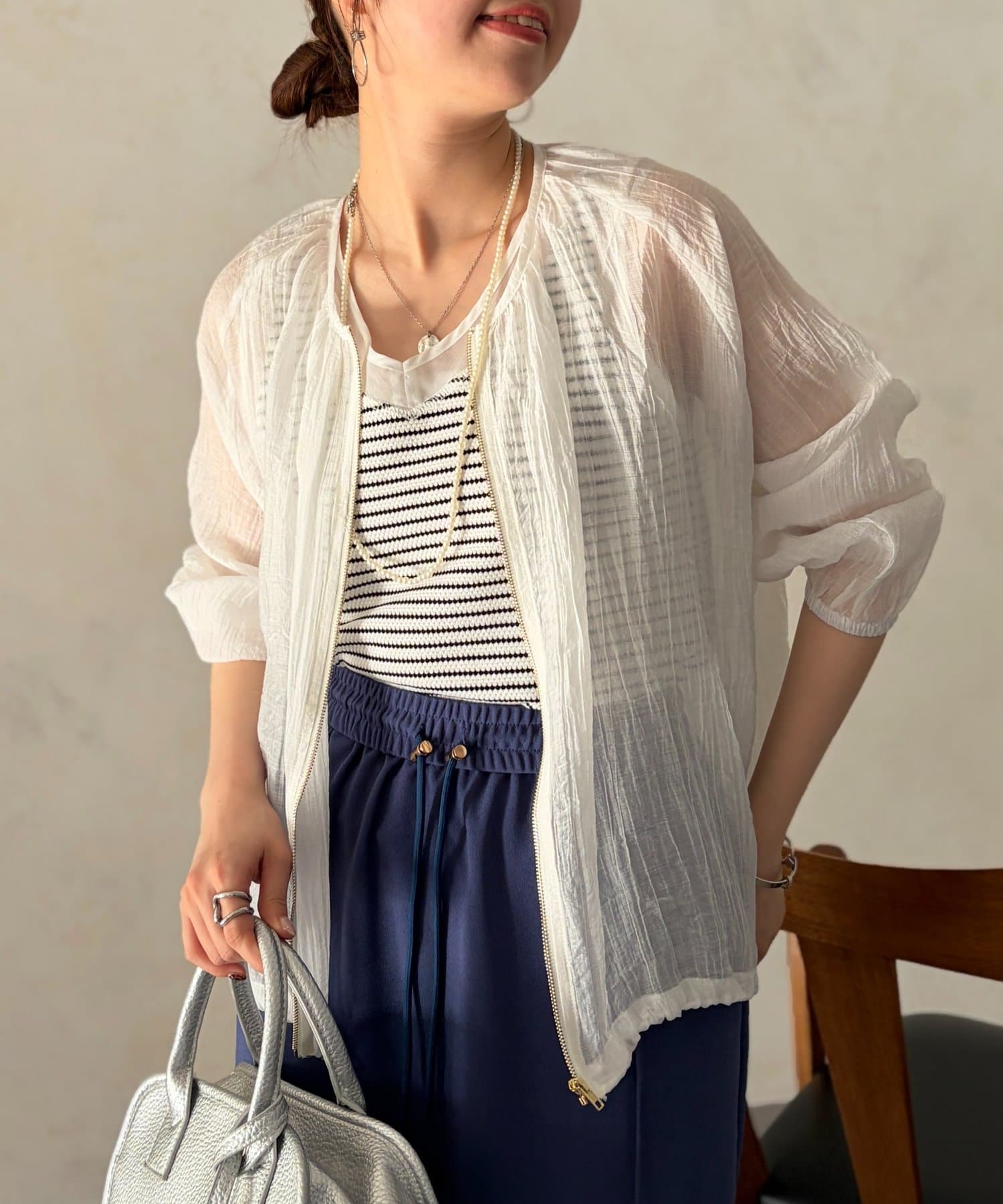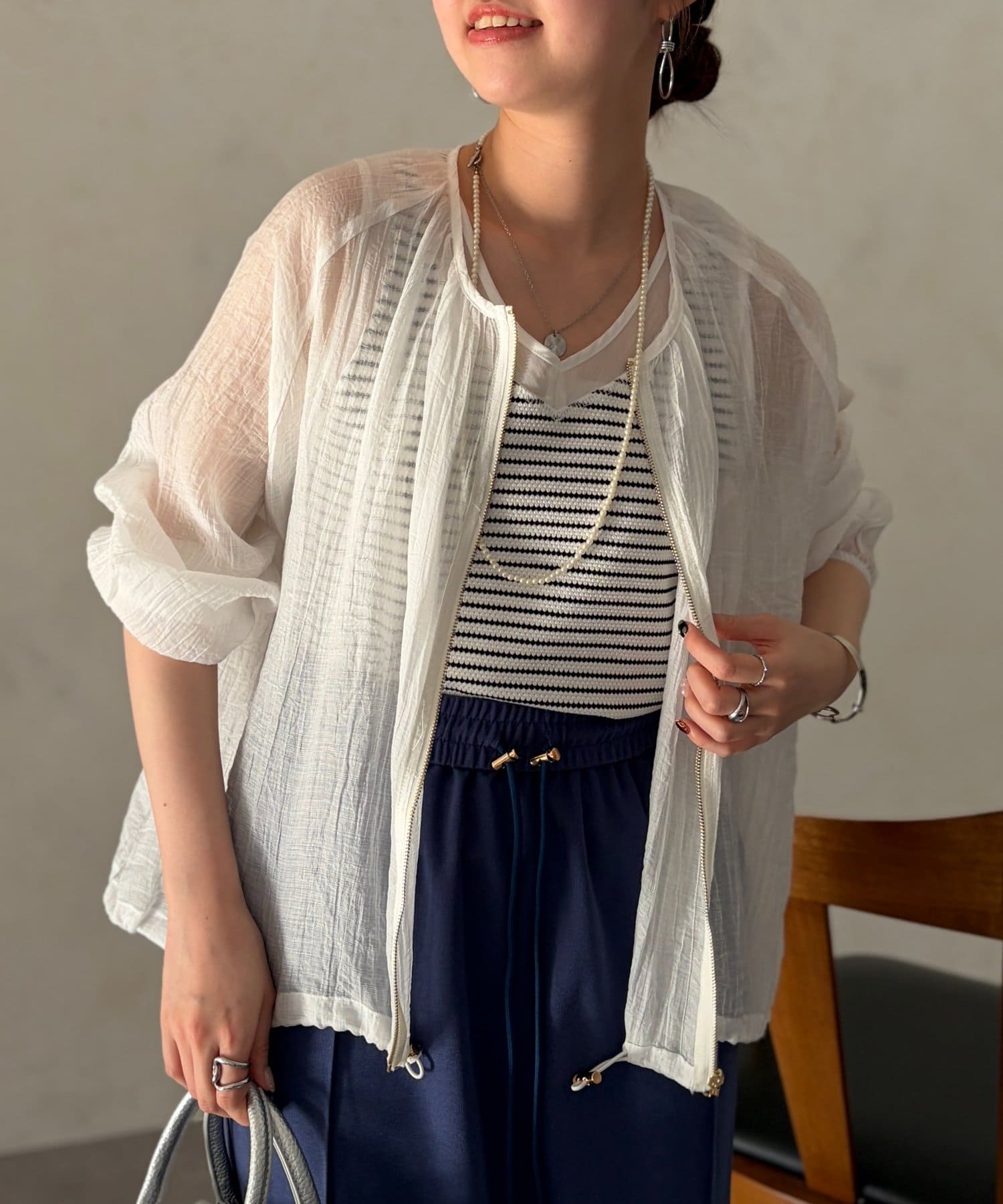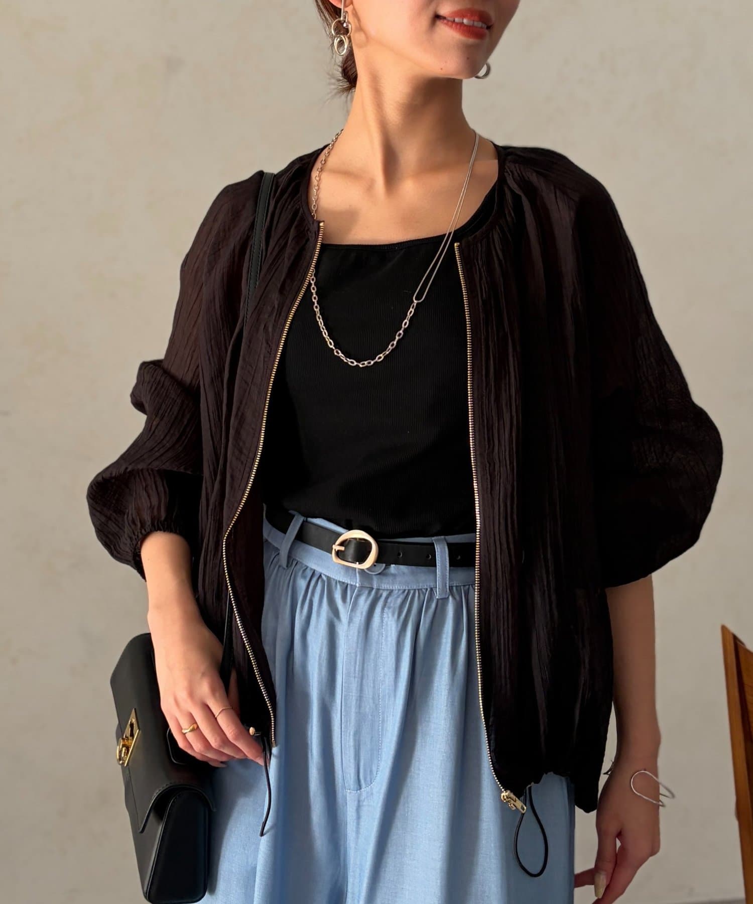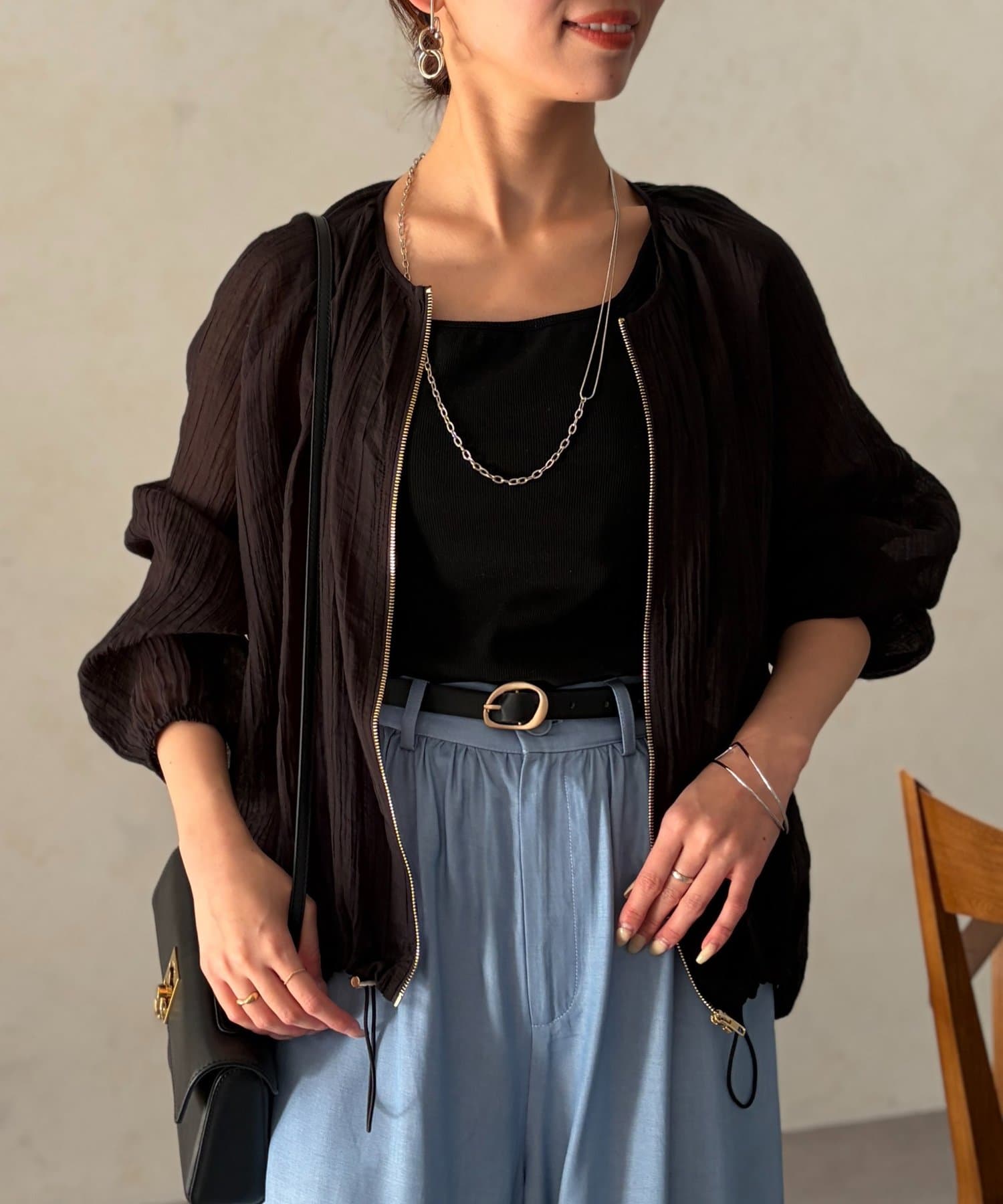 シアー素材が品のある着こなしに