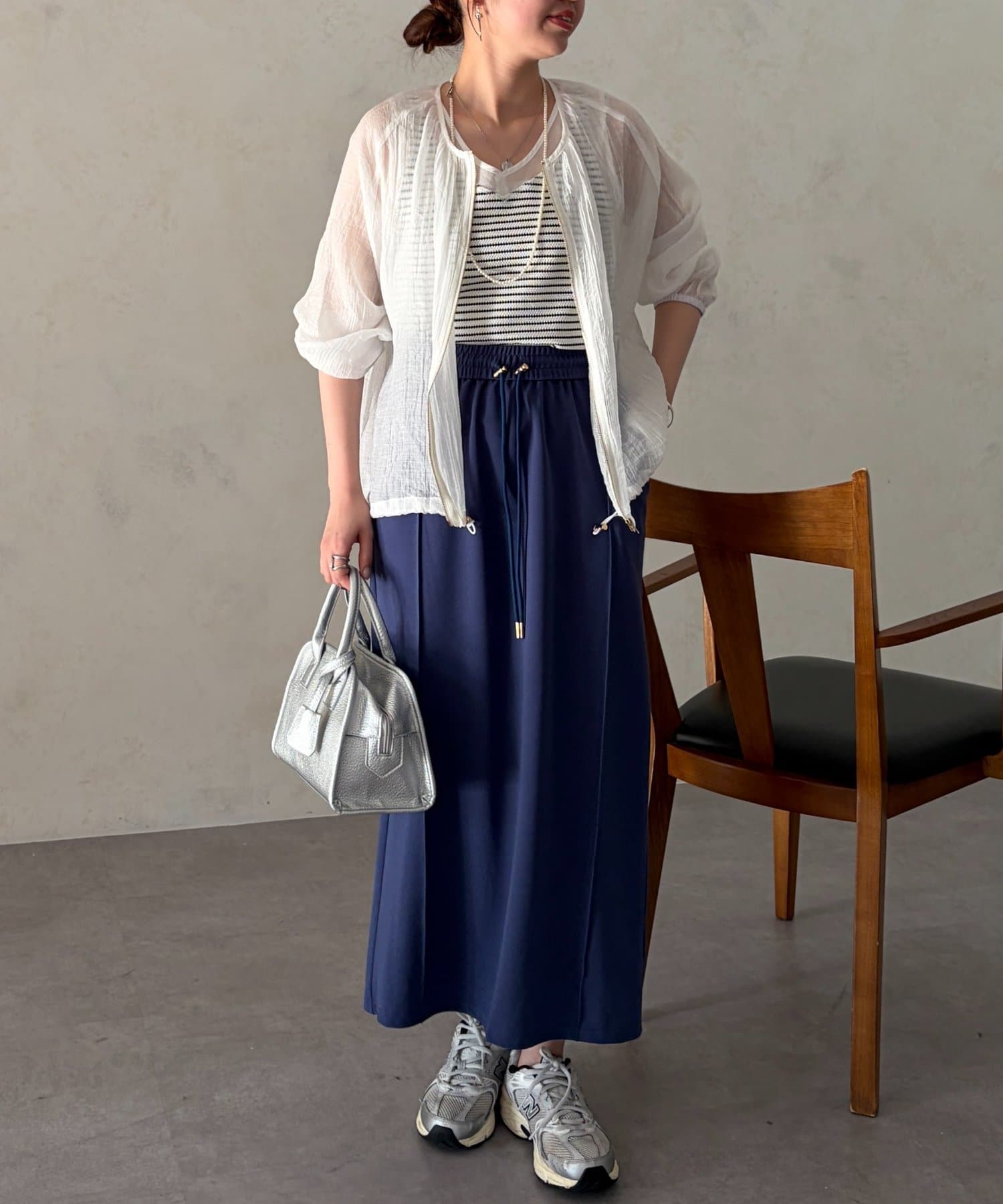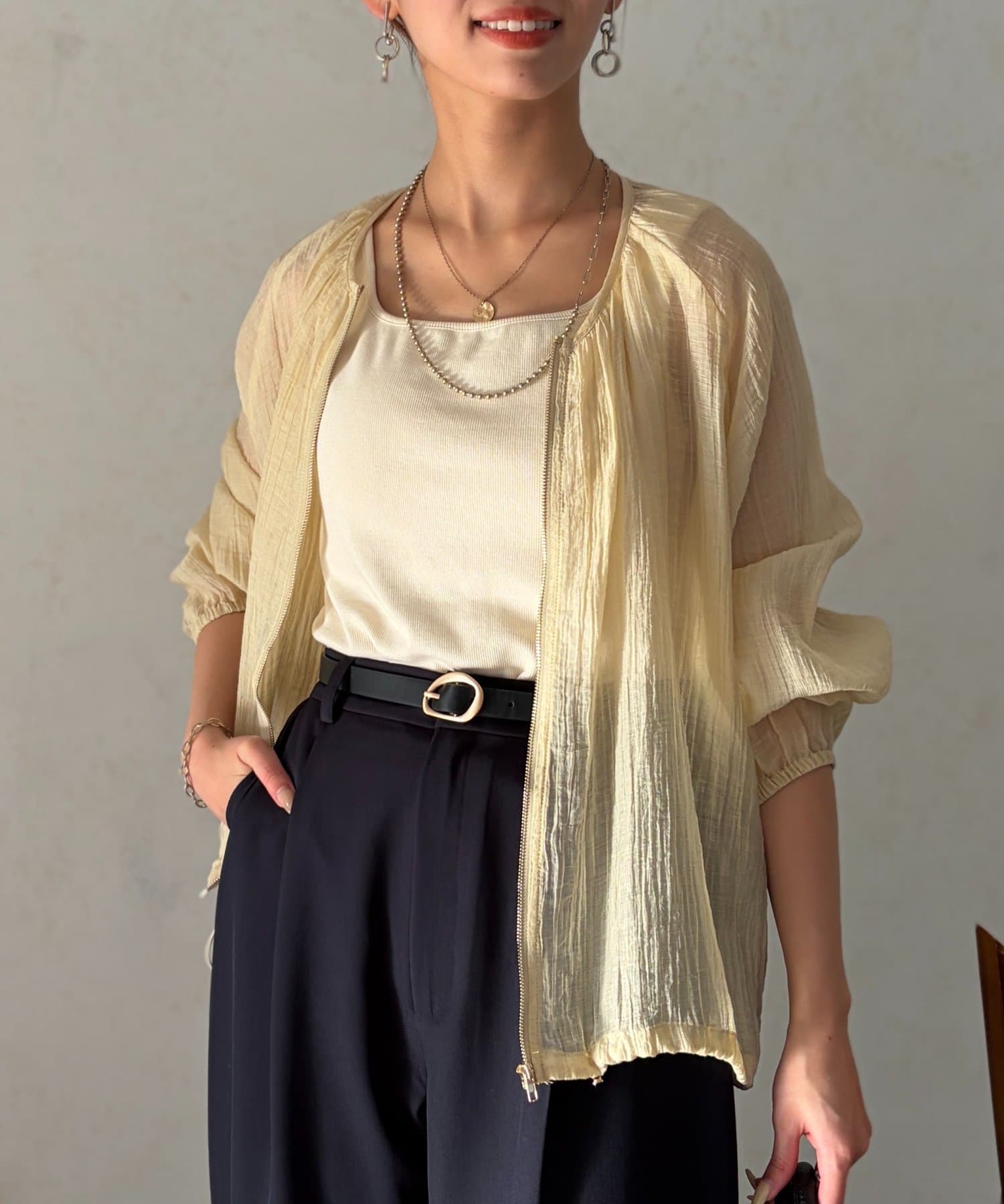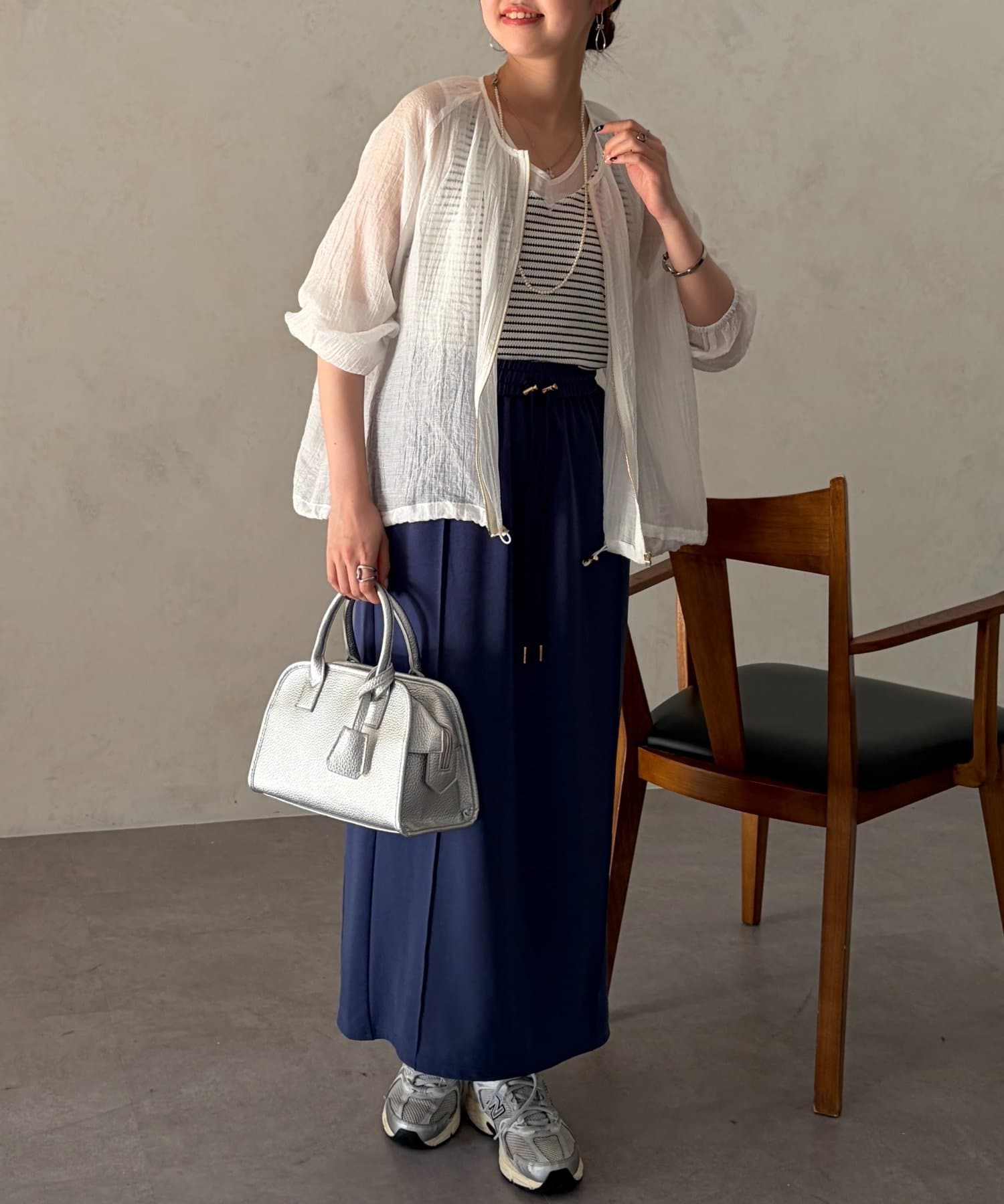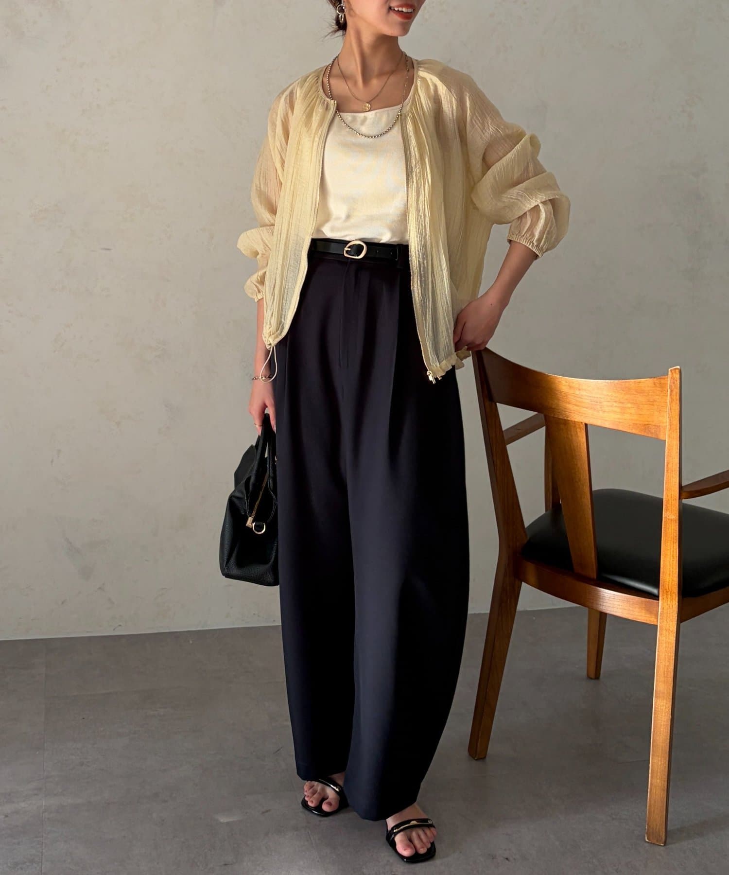 シアー素材が品のある着こなしに