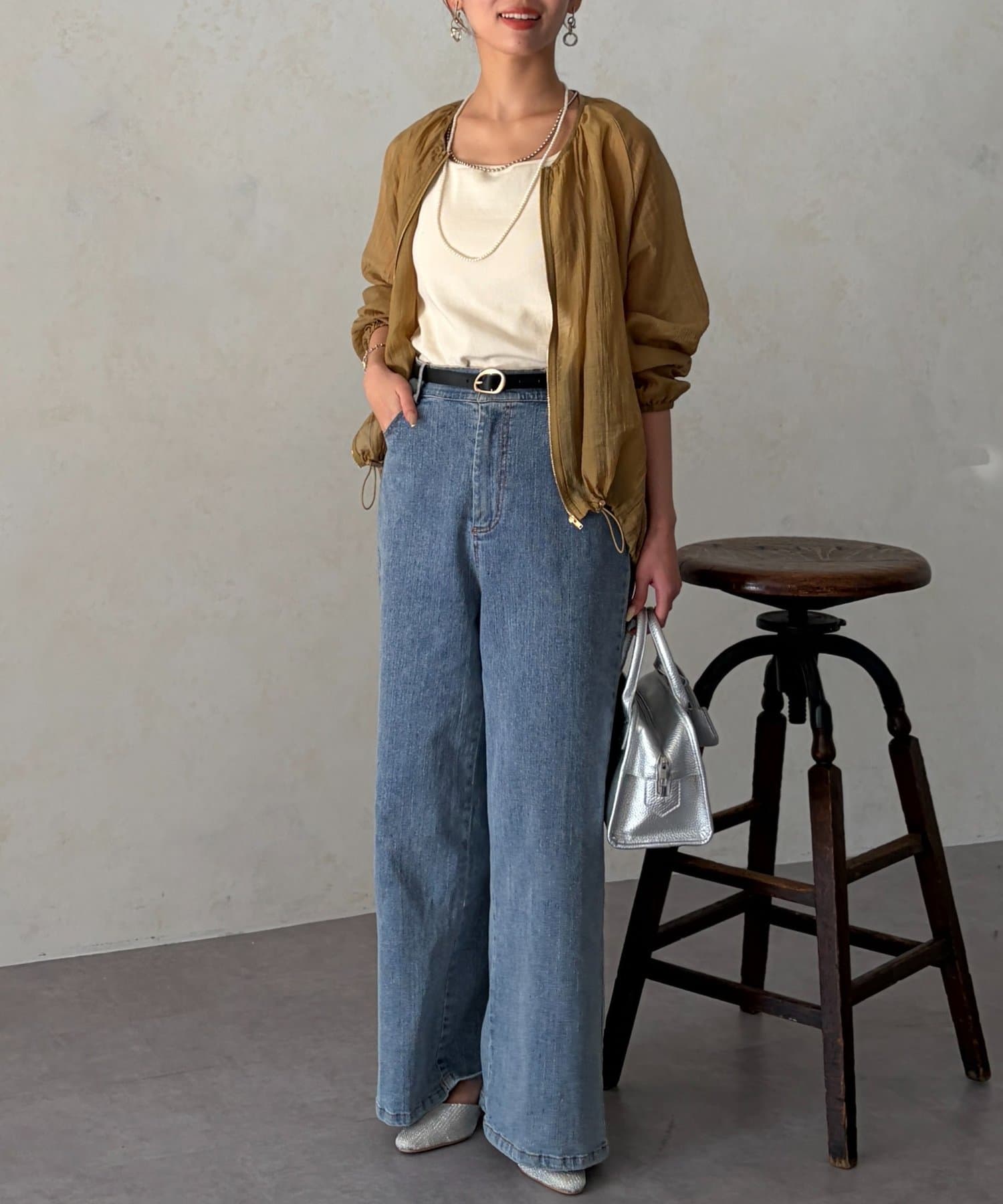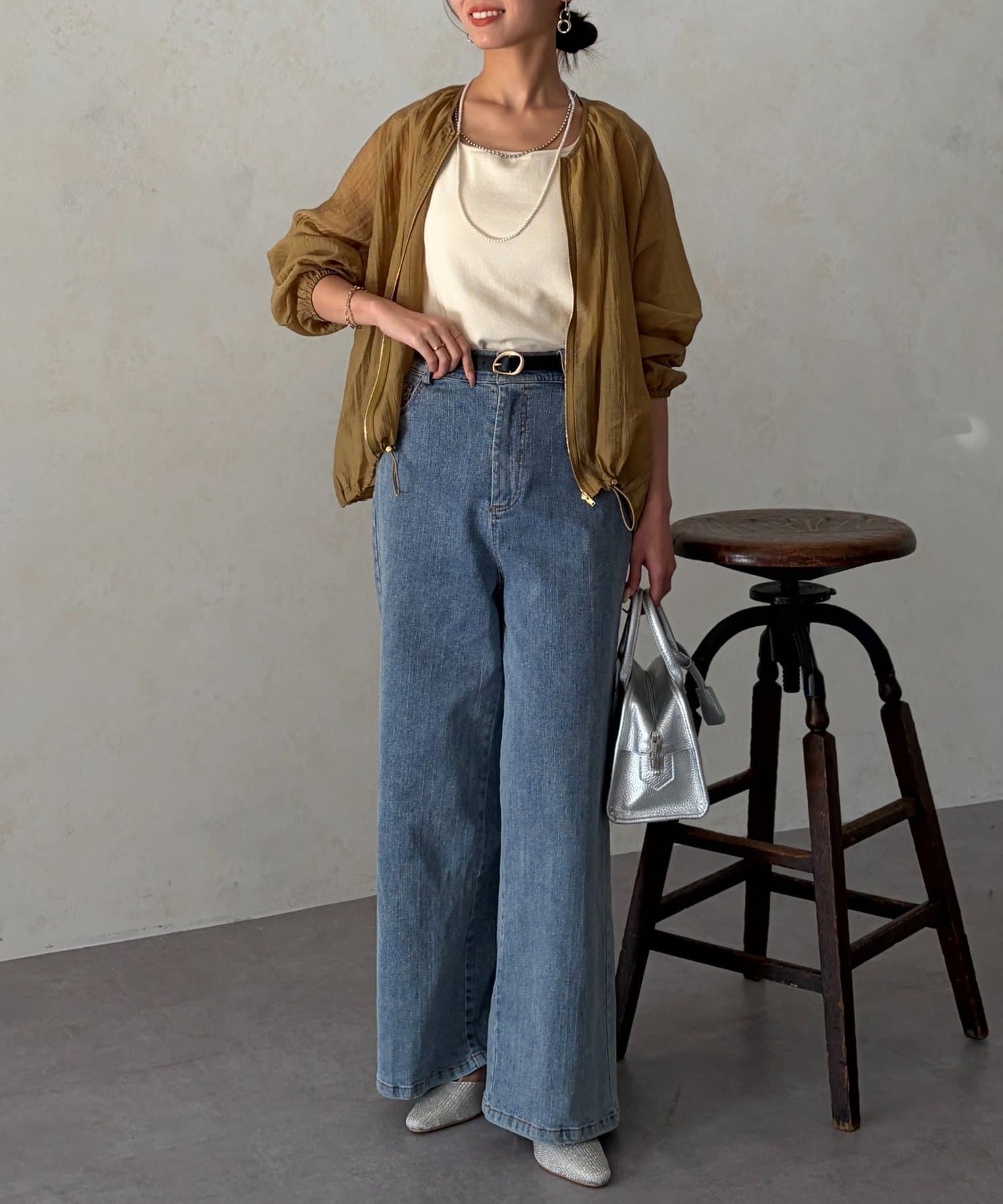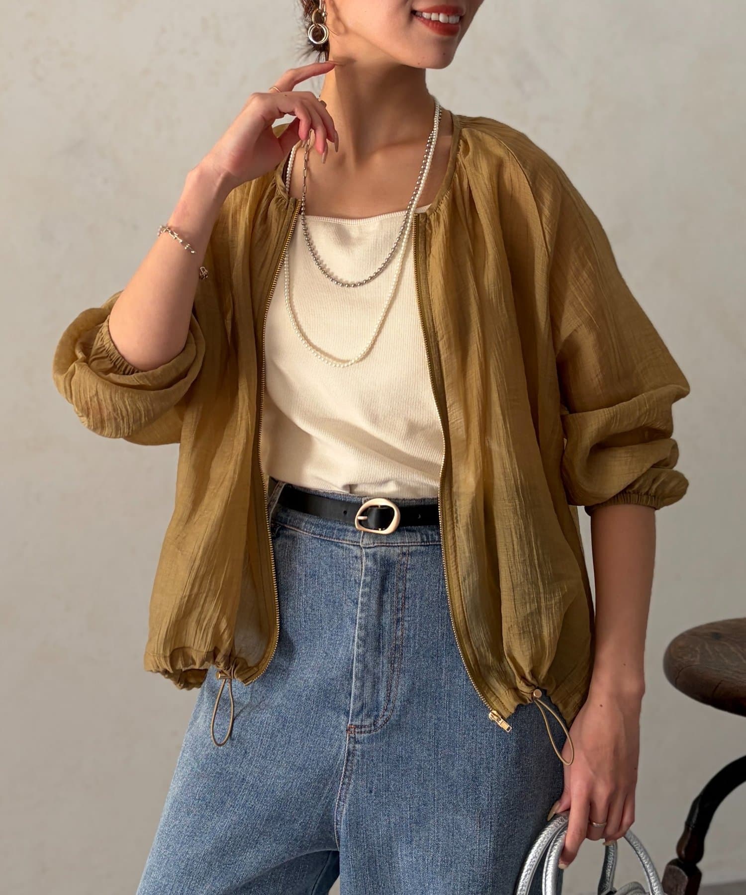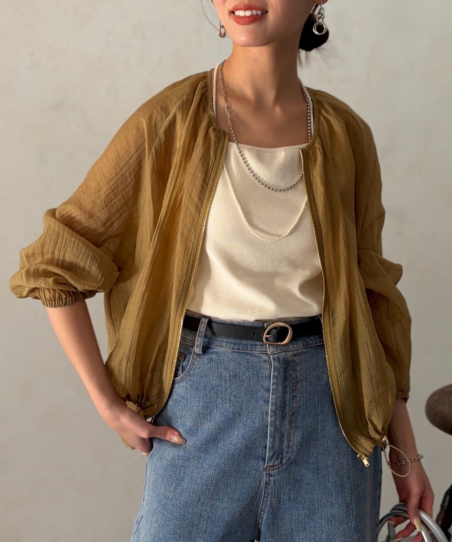 カジュアルにも、きれいめなスタイリングにも合わせやすいシンプルシルエットなので、お出かけの時にさっと羽織れる便利アイテムです。