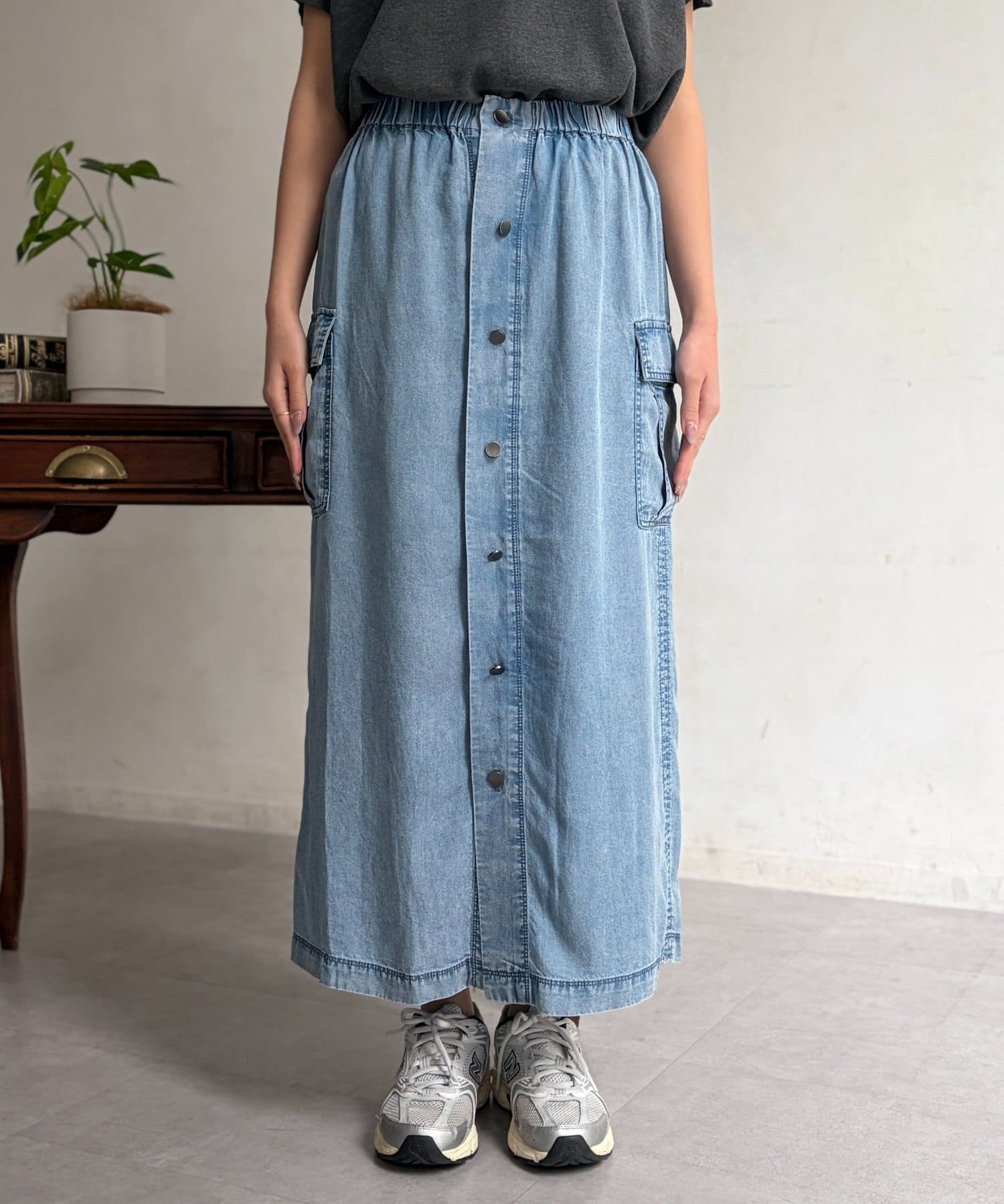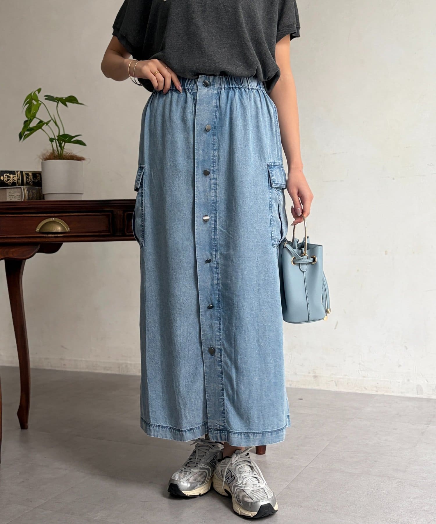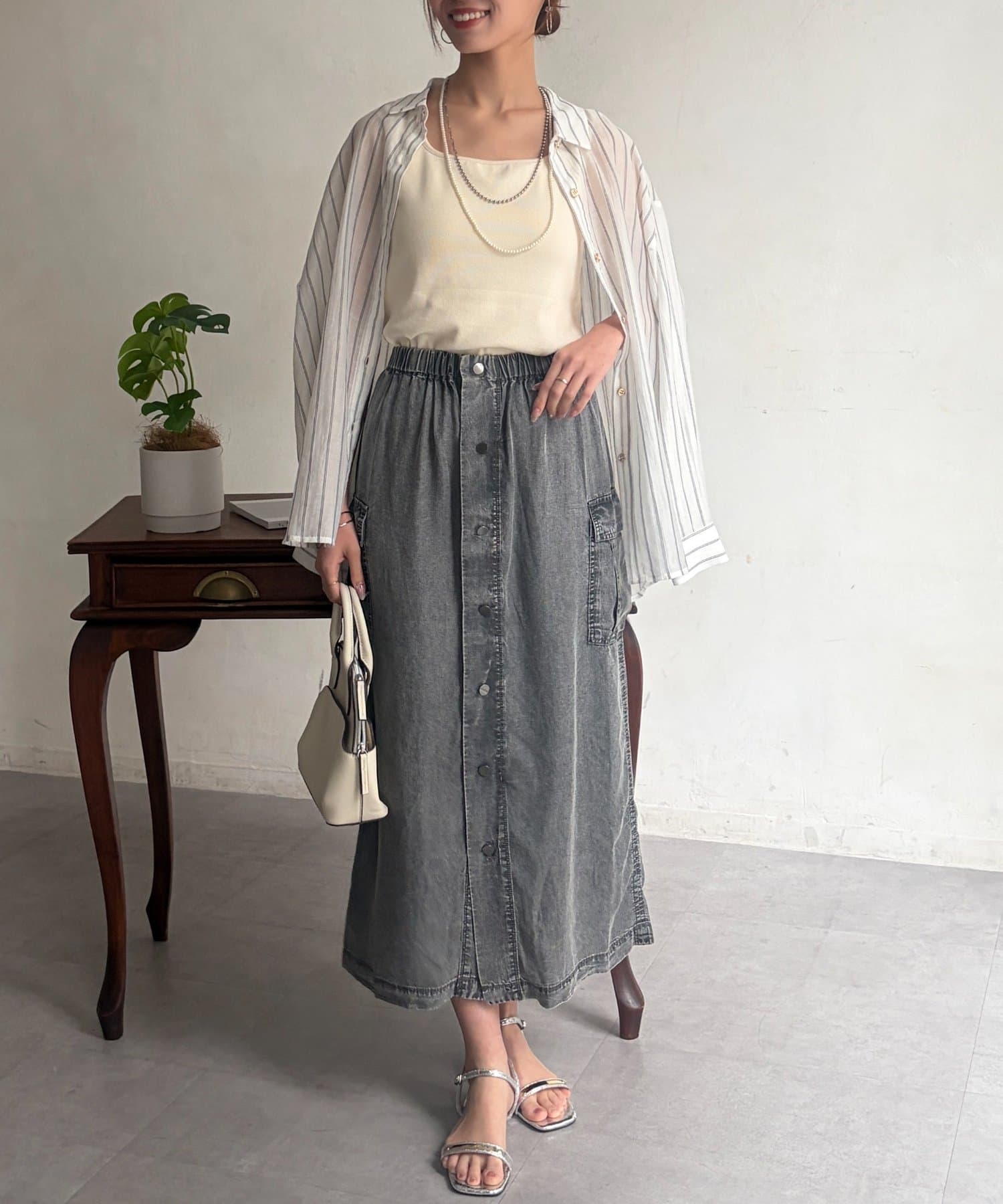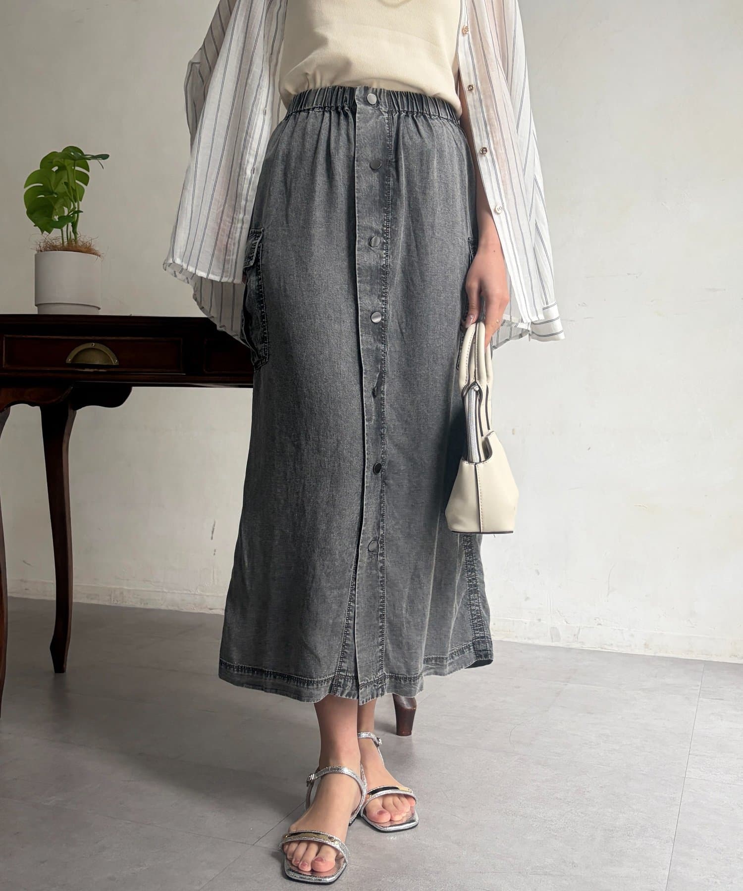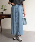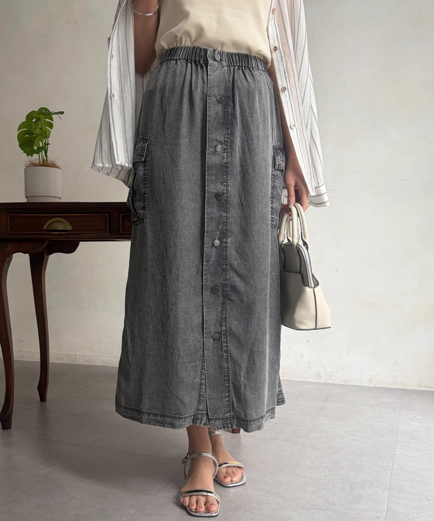 フロントボタンがスッキリとした印象にしてくれるスカート