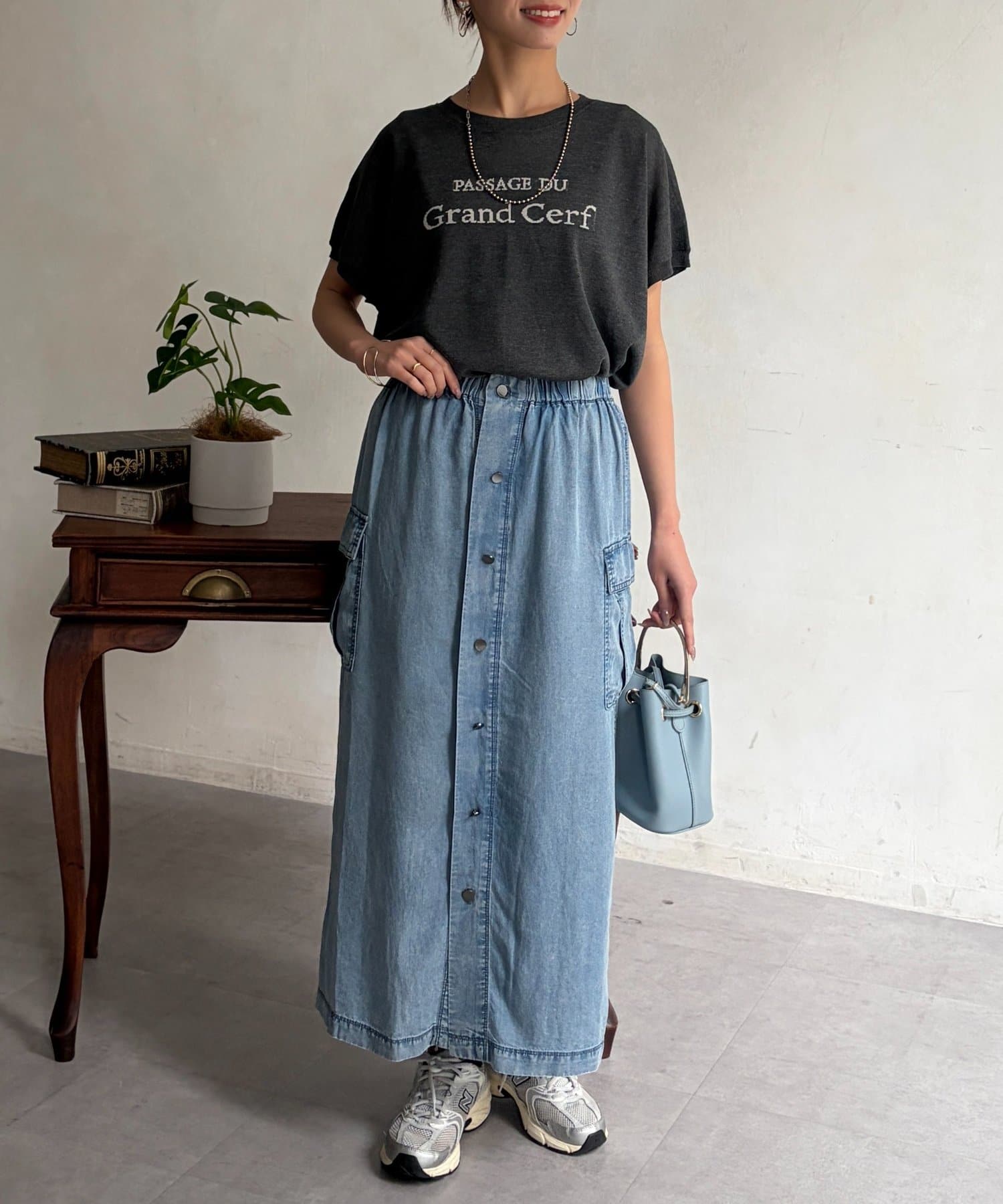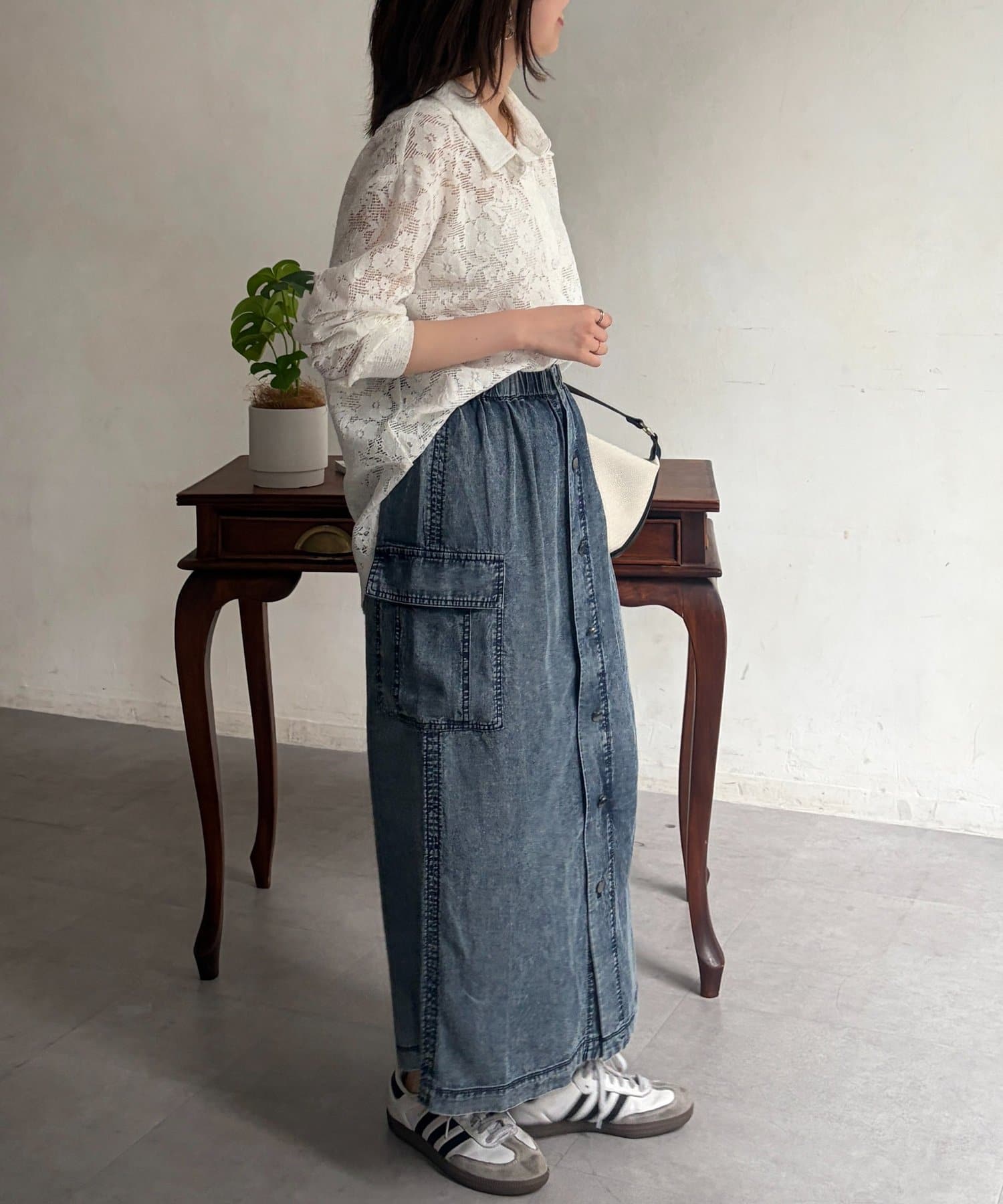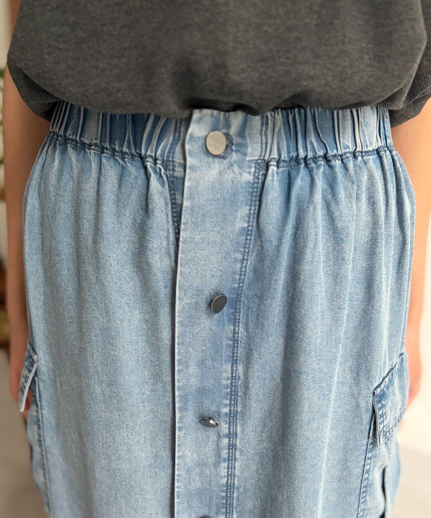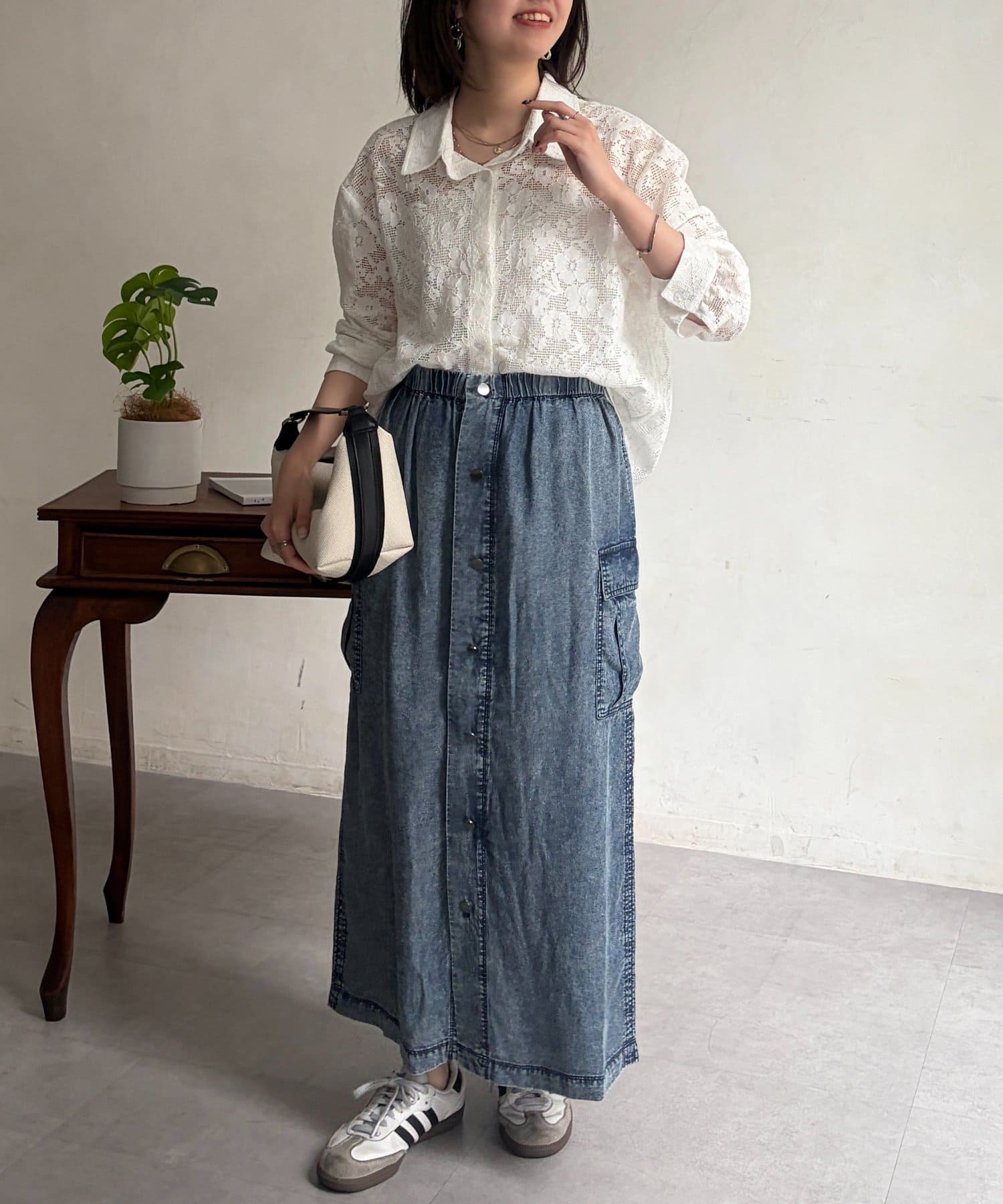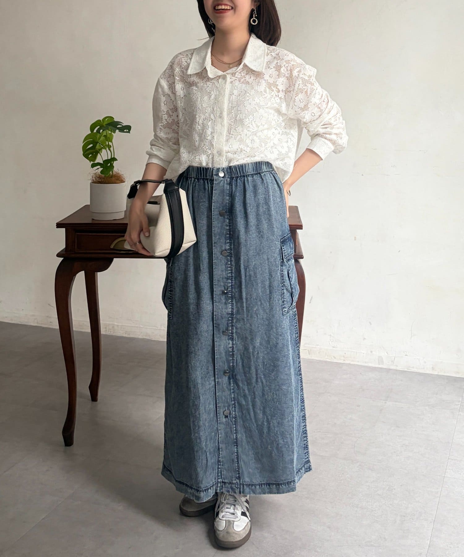 フロントボタンがスッキリとした印象にしてくれるスカート