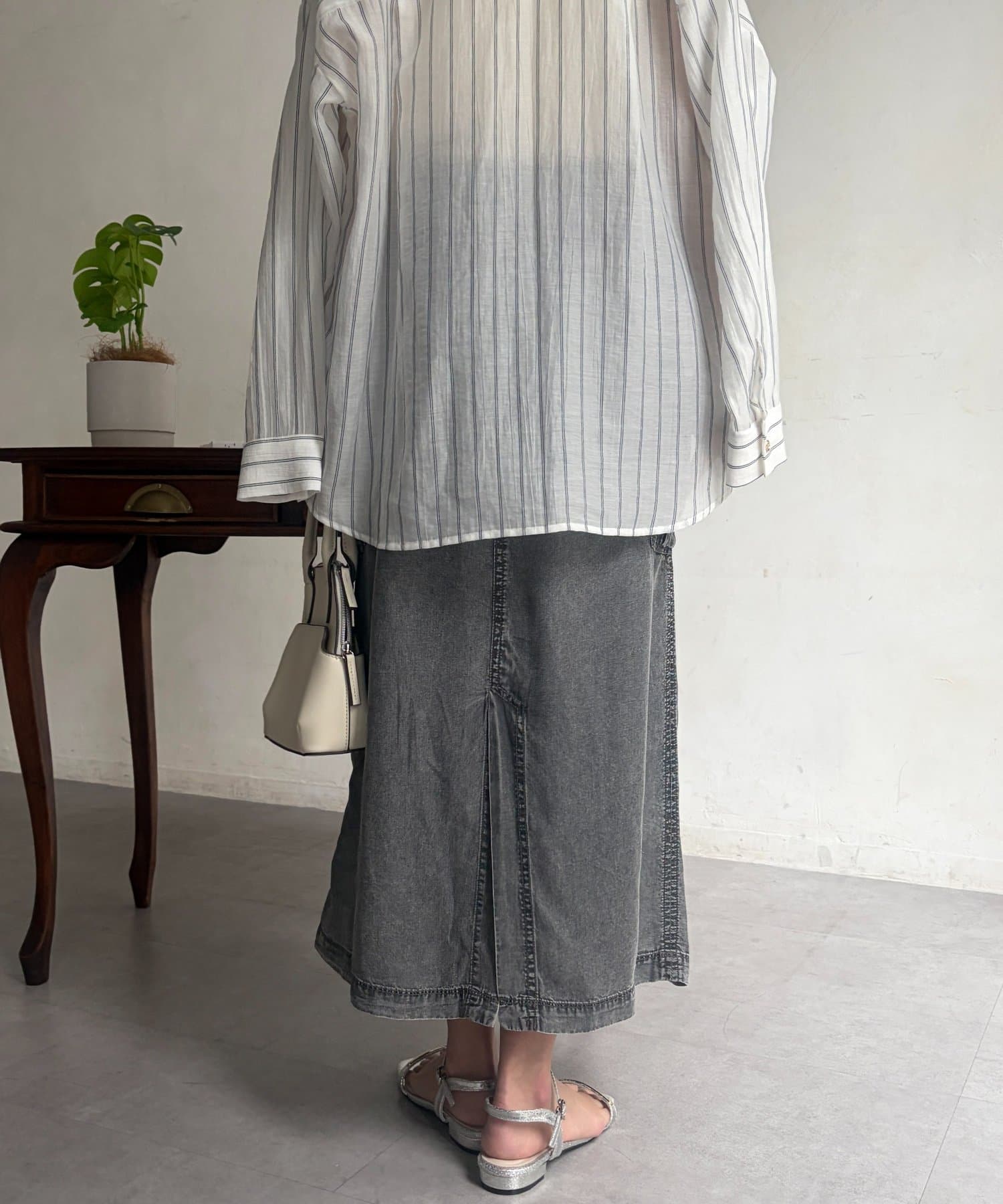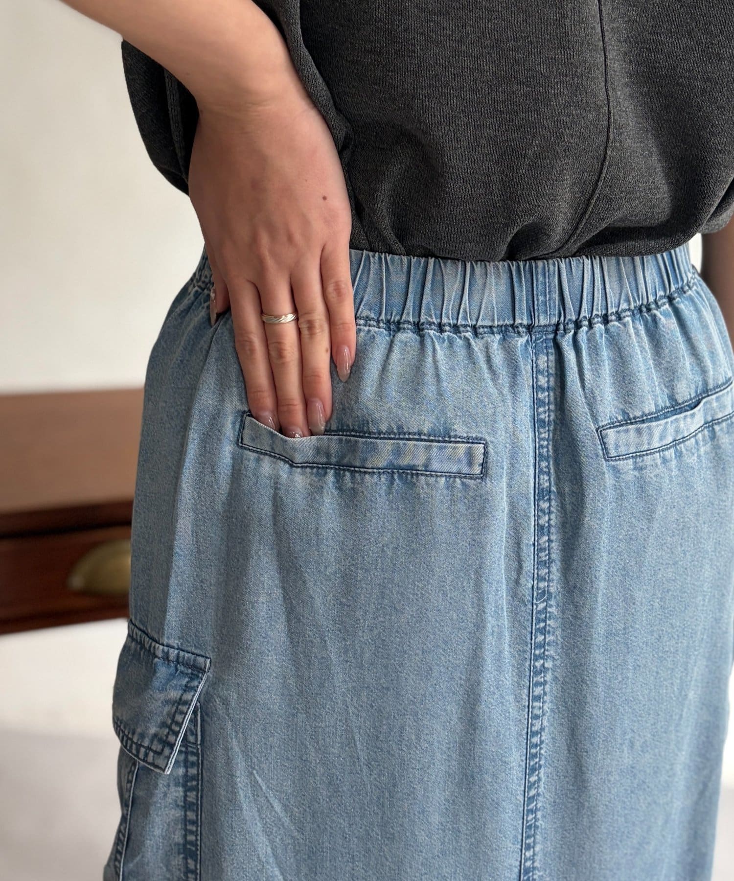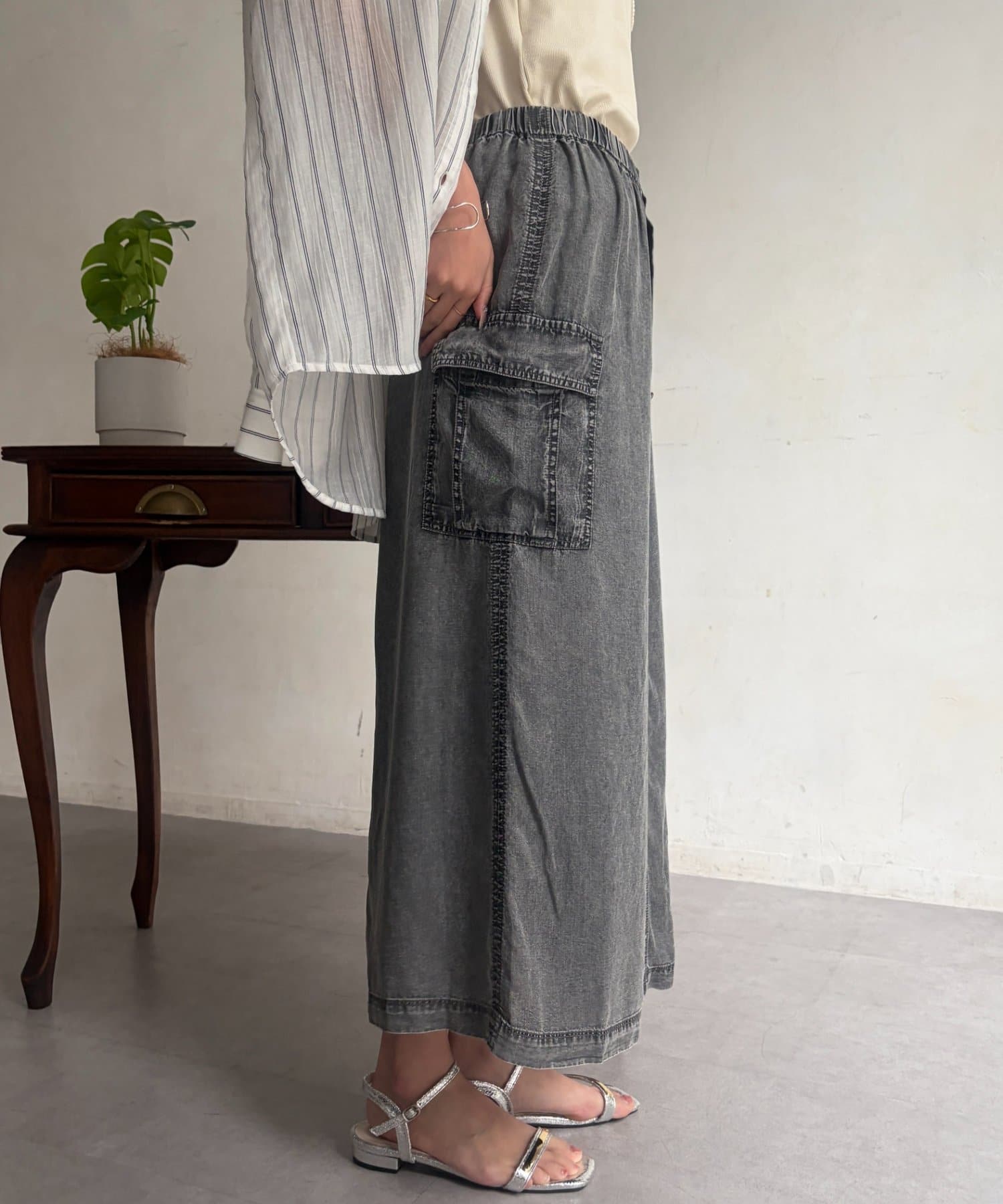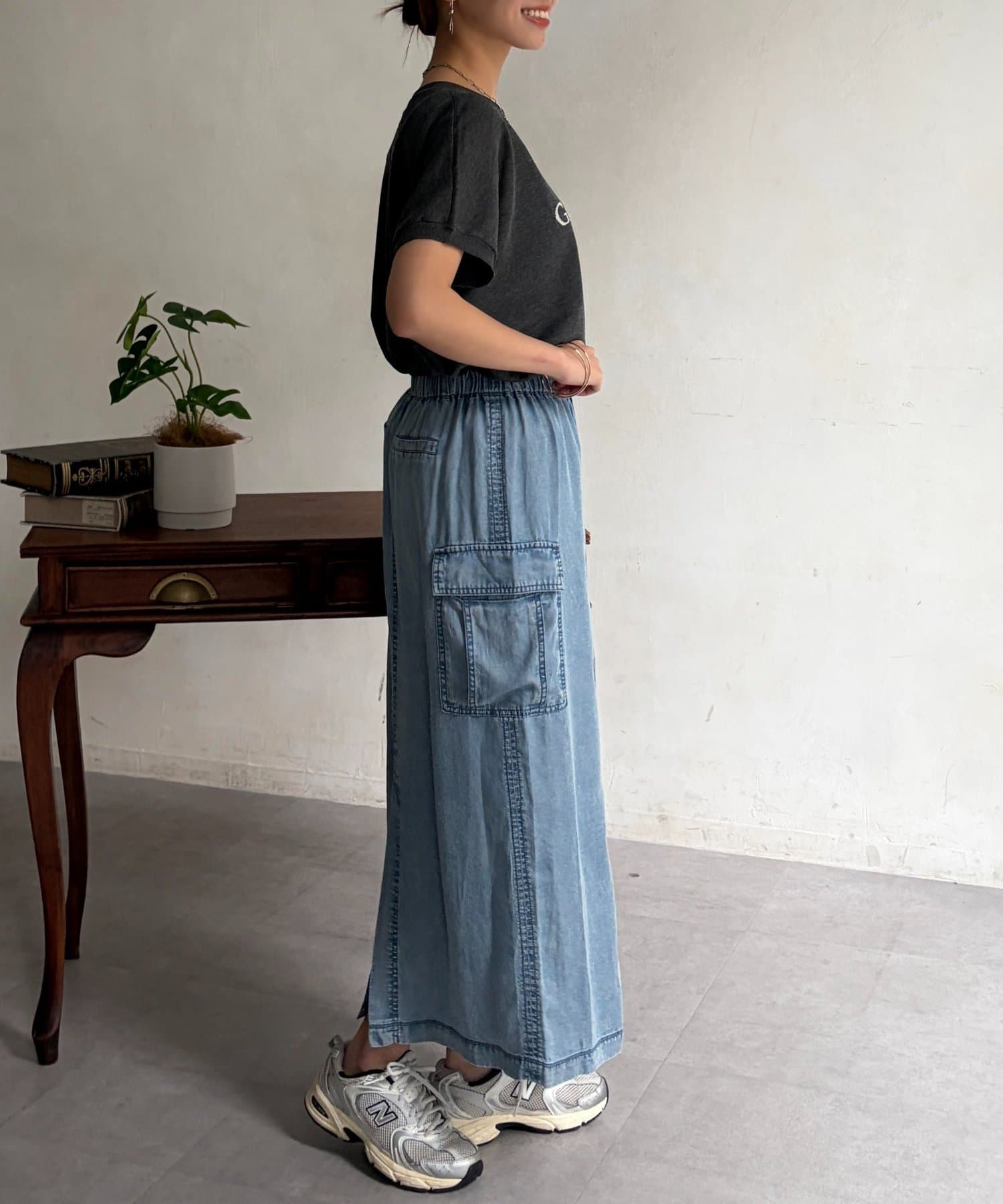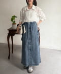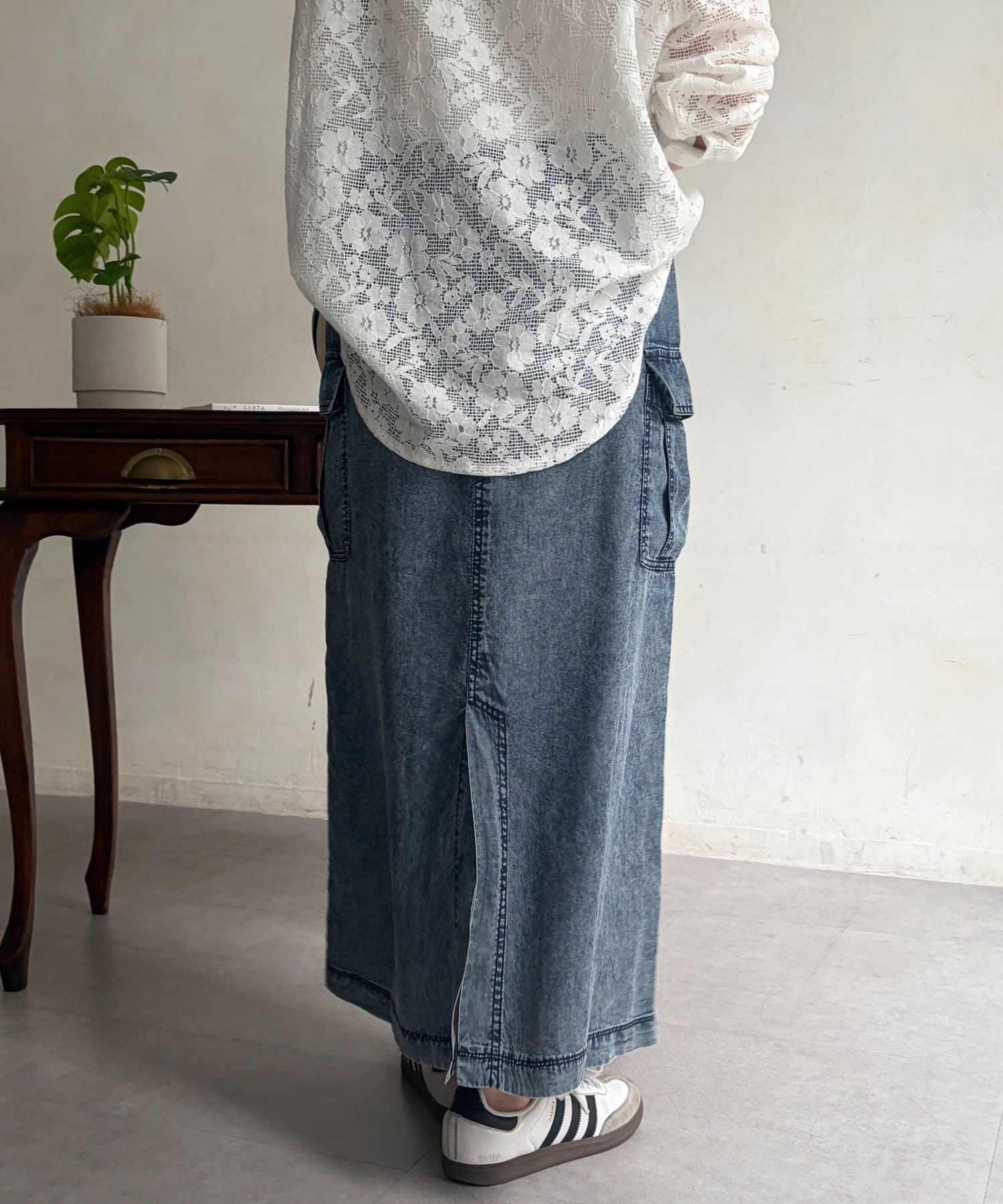 • Chez toi(シェトワ) パウダー加工デニムナロースカート