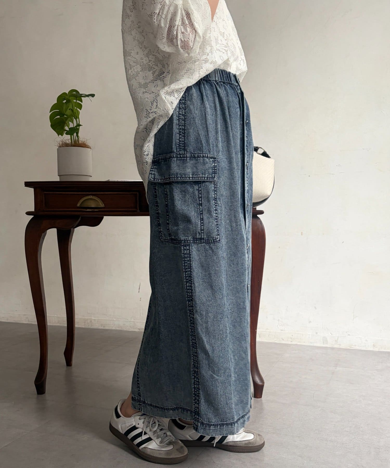 カーゴポケットを効かせつつ、軽やかで上品な1着に仕上げました。