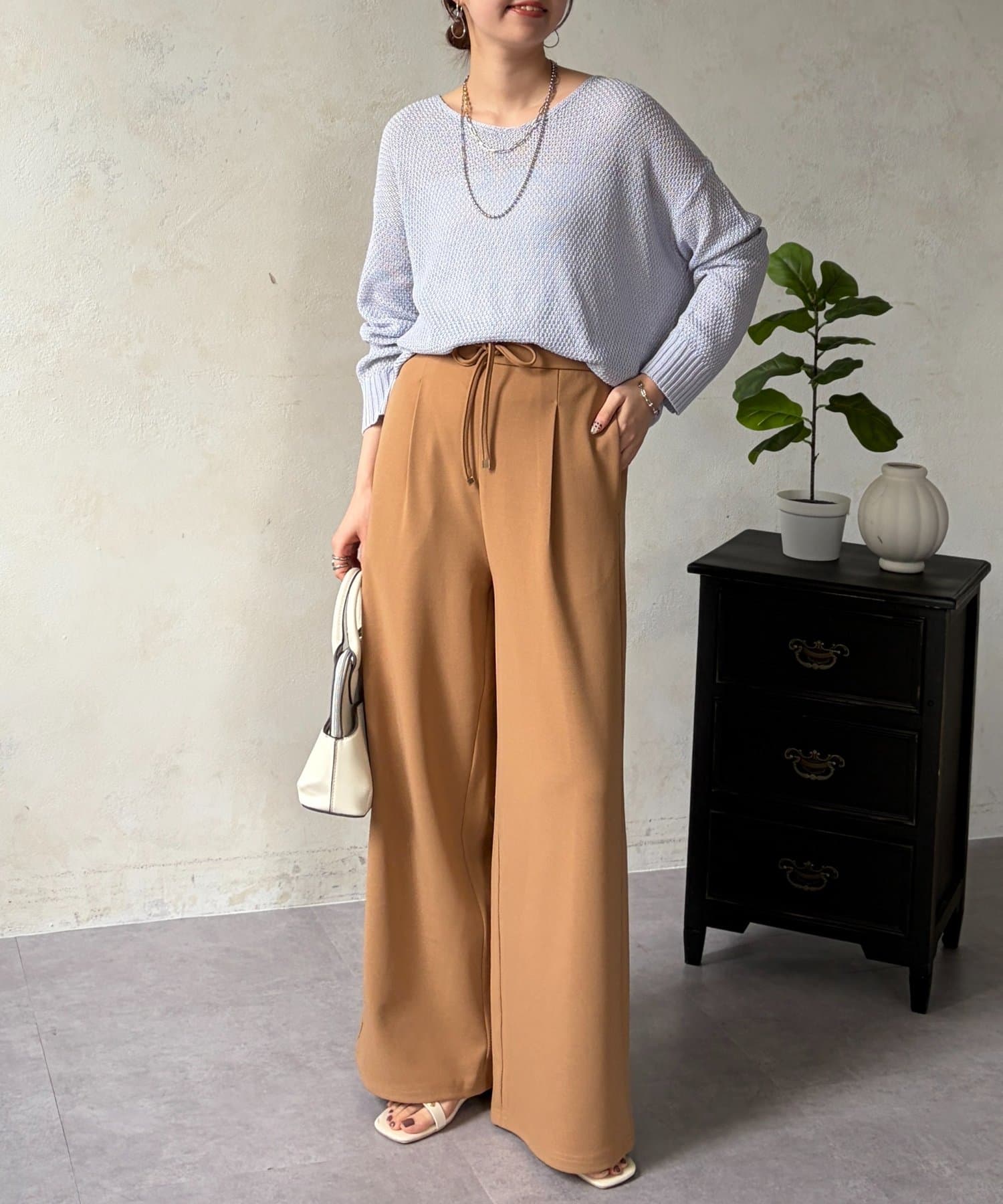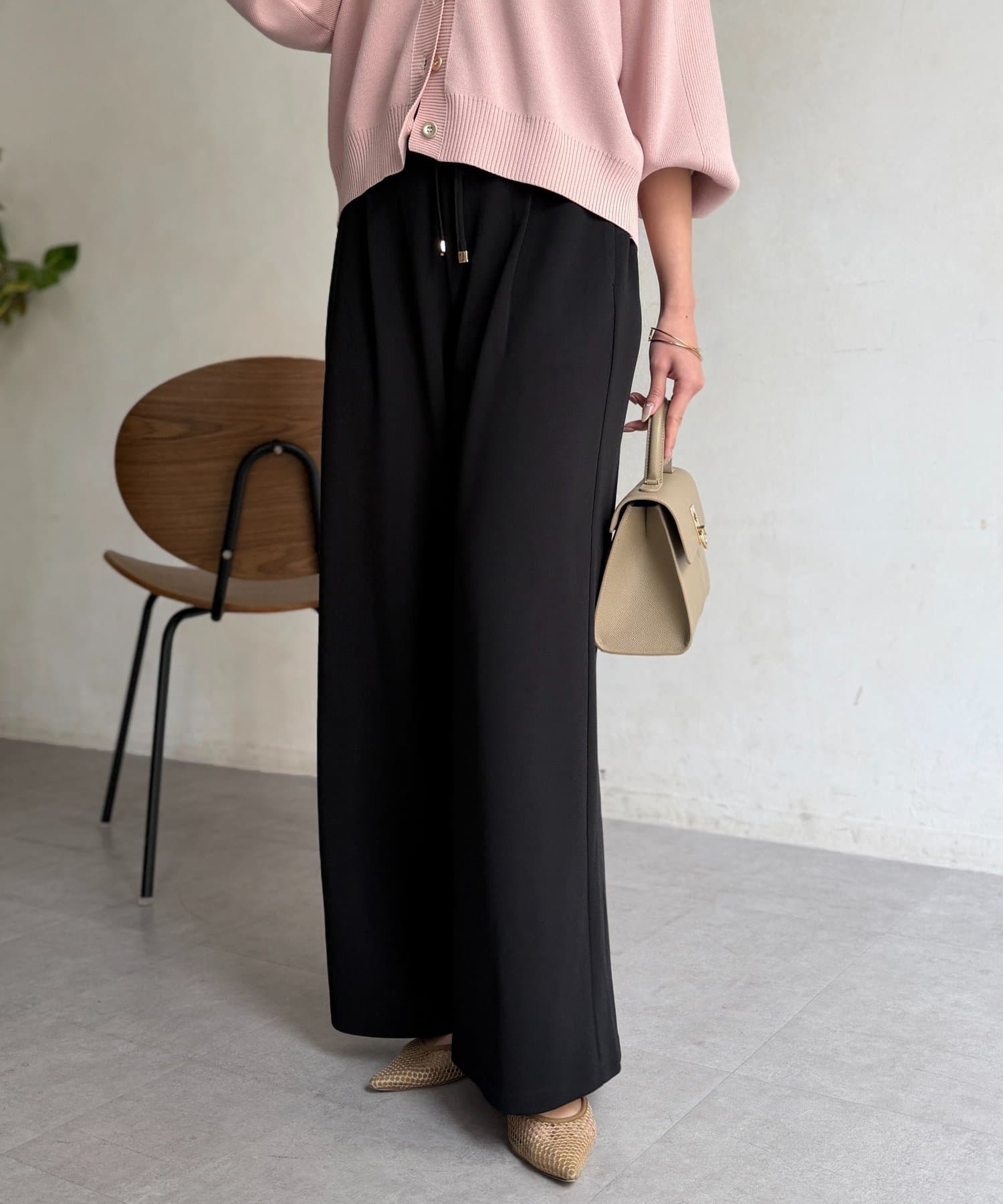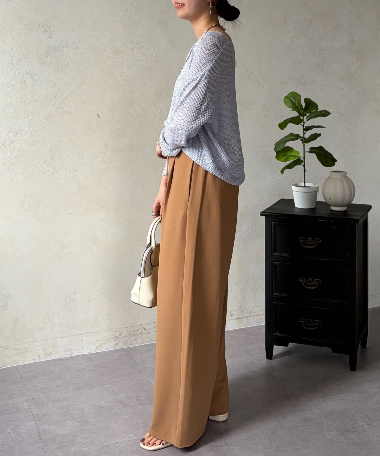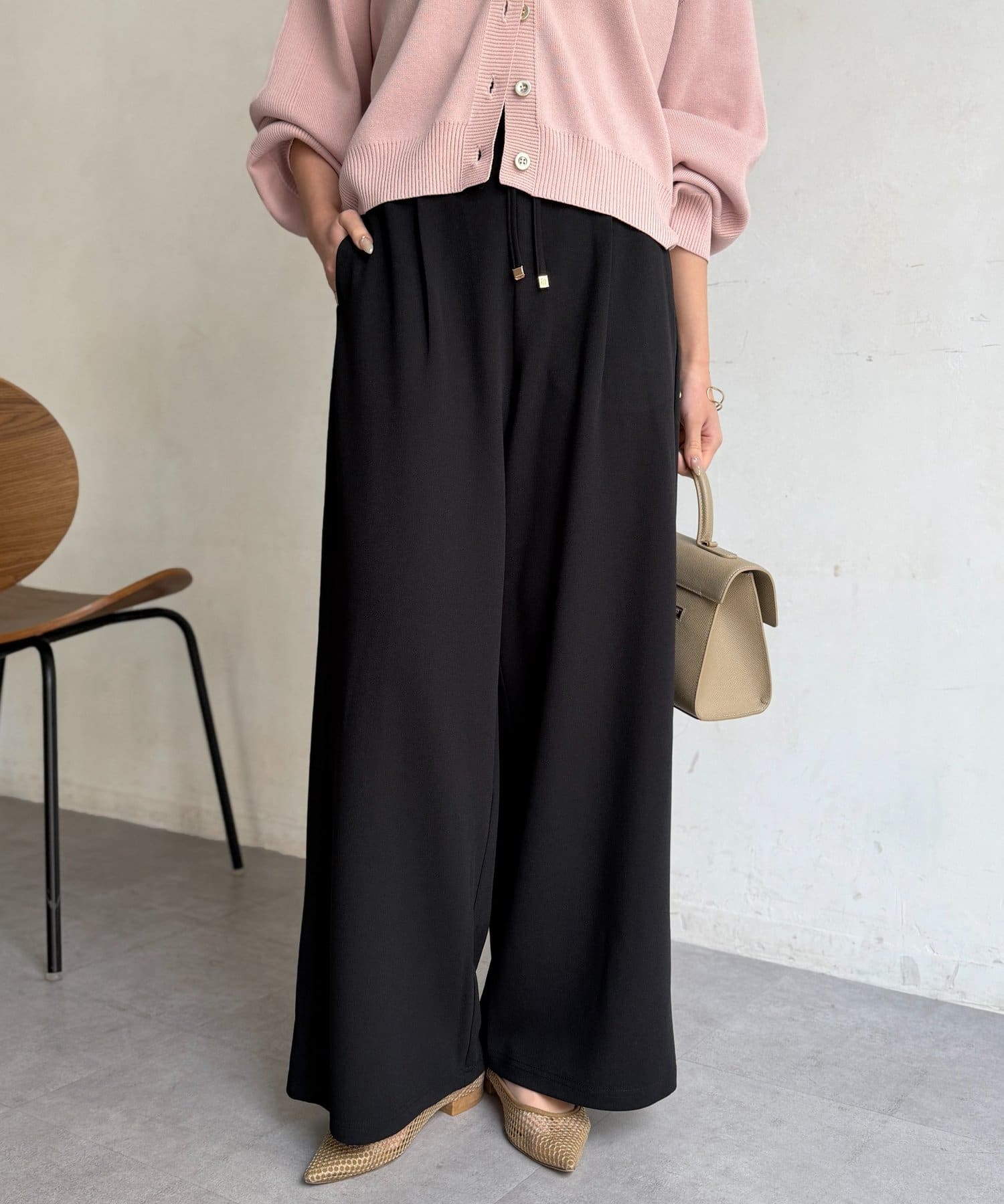• Chez toi(シェトワ) カットジョーゼットタックパンツ