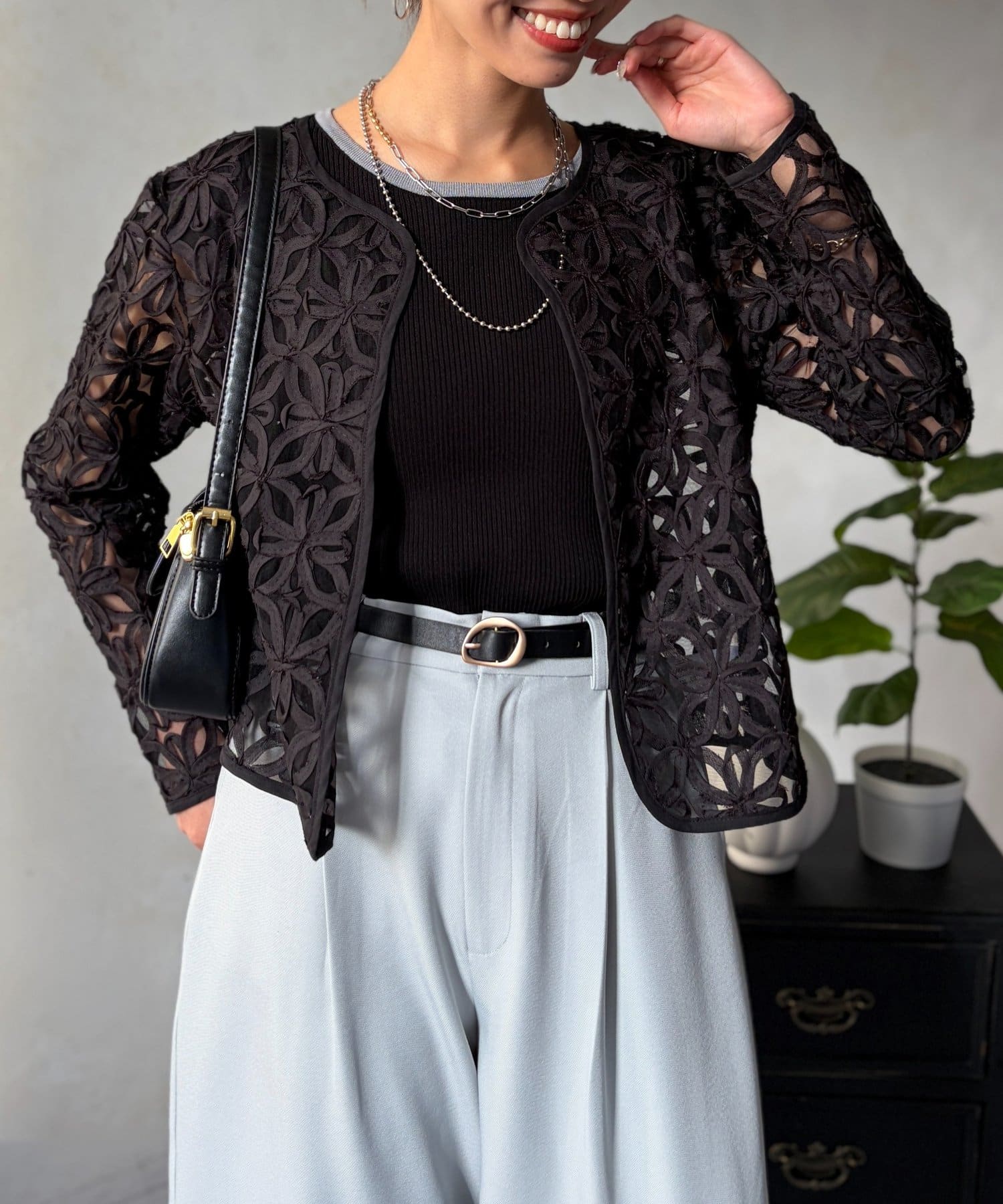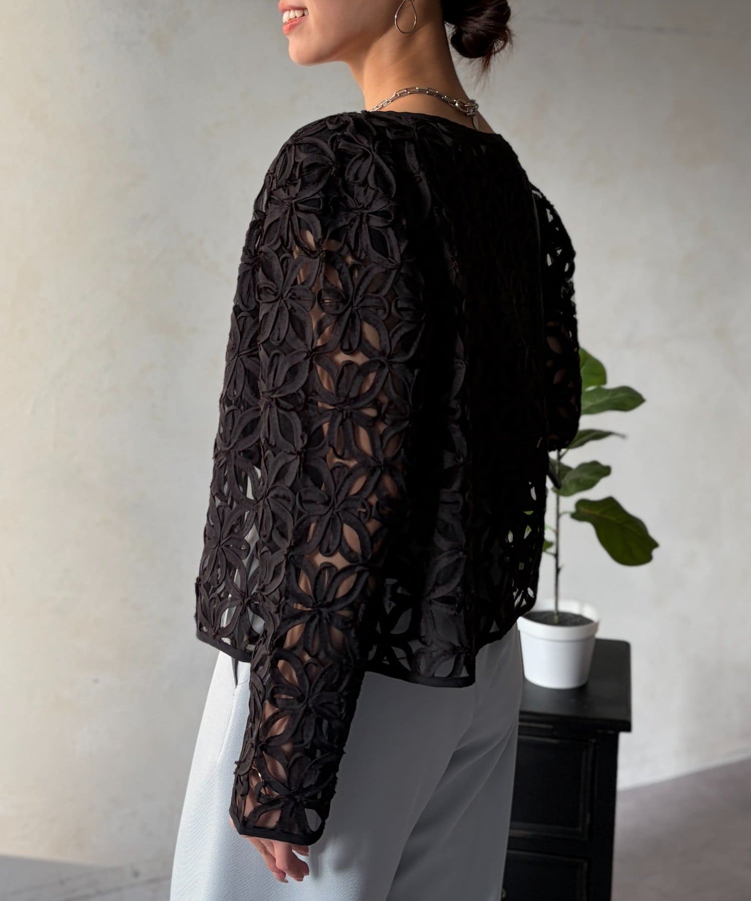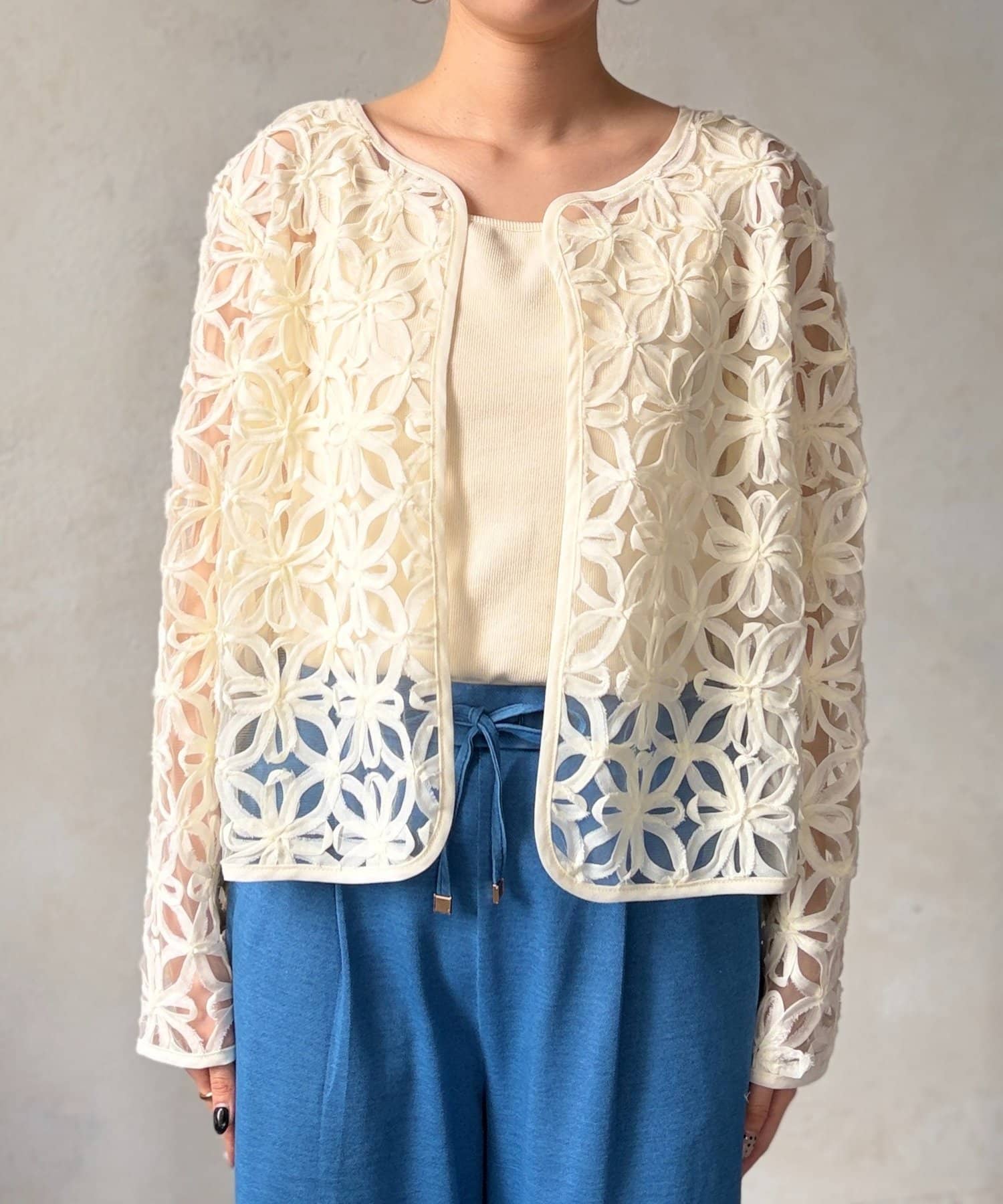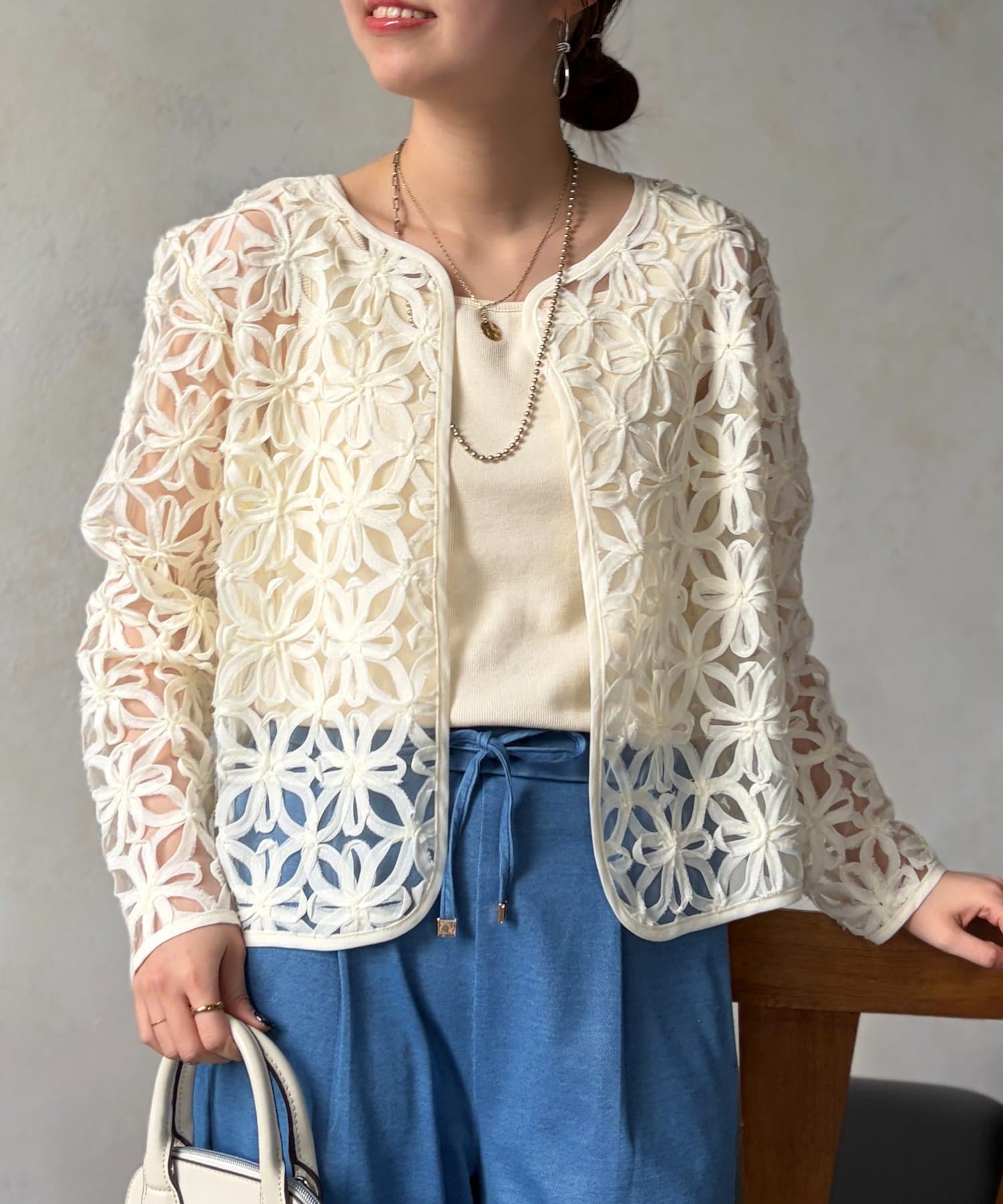 繊細な透け感で魅せる、大人のためのレースカーディガン