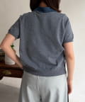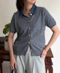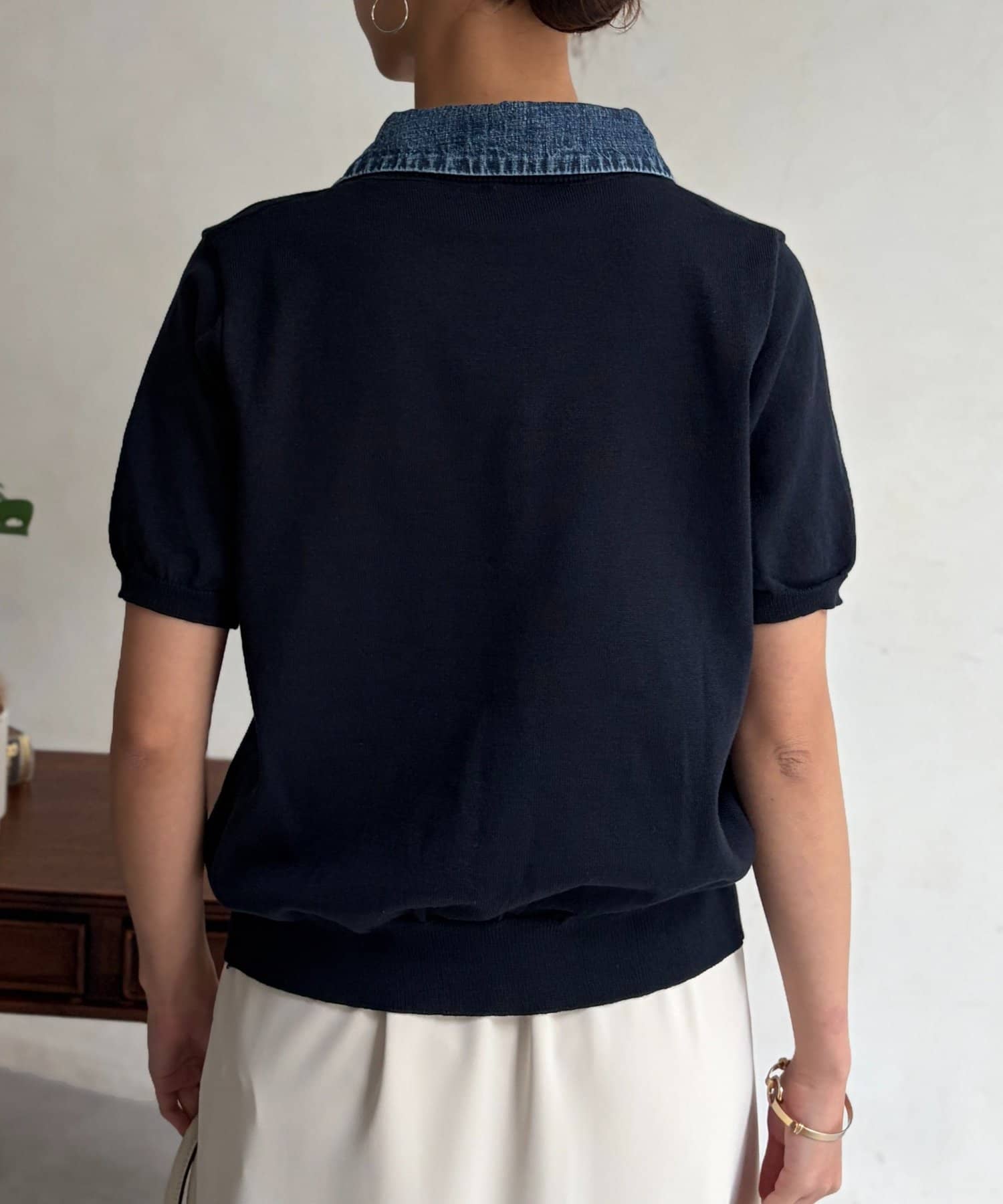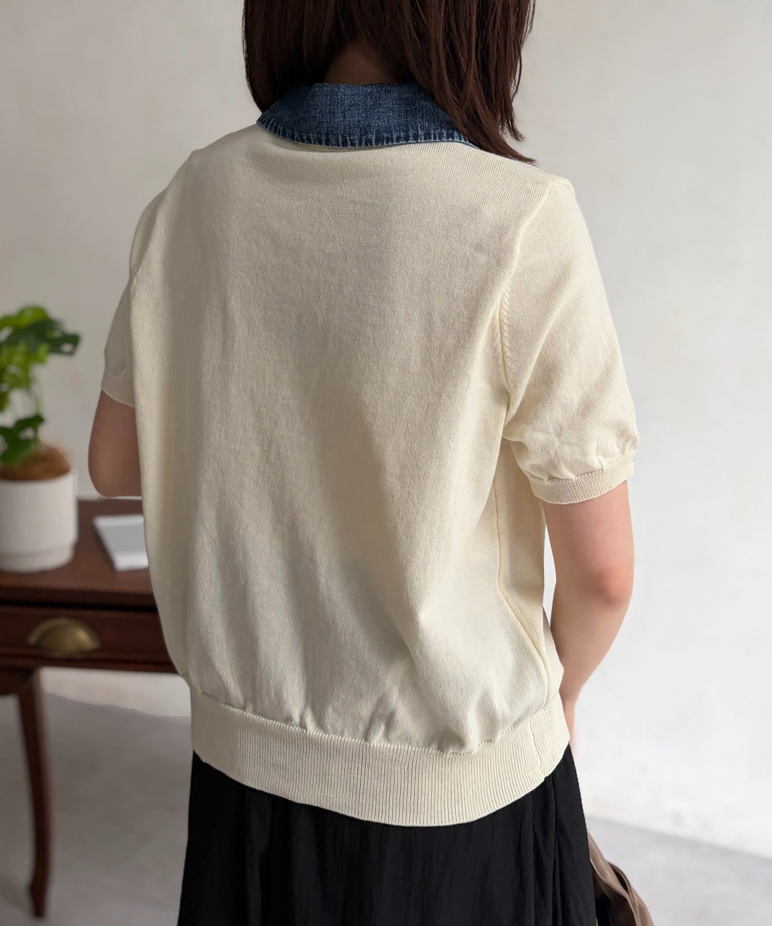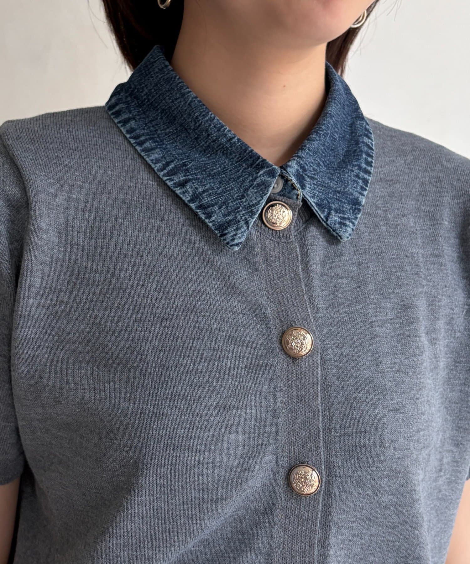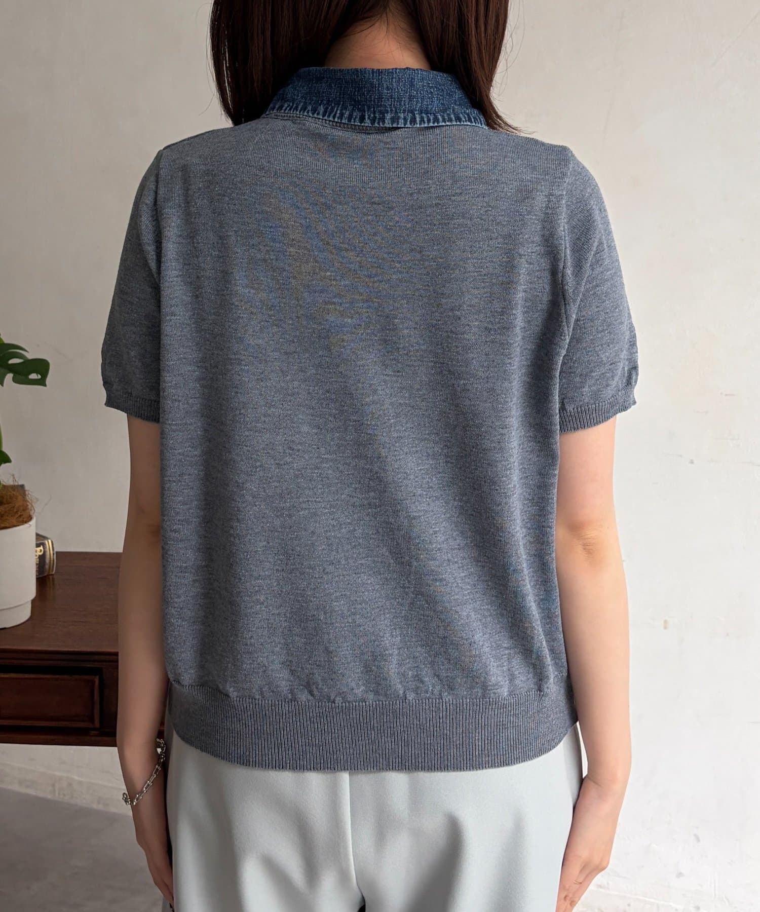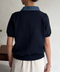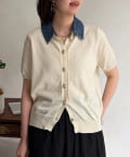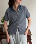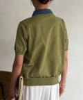 デニム切替半袖ニットシャツ