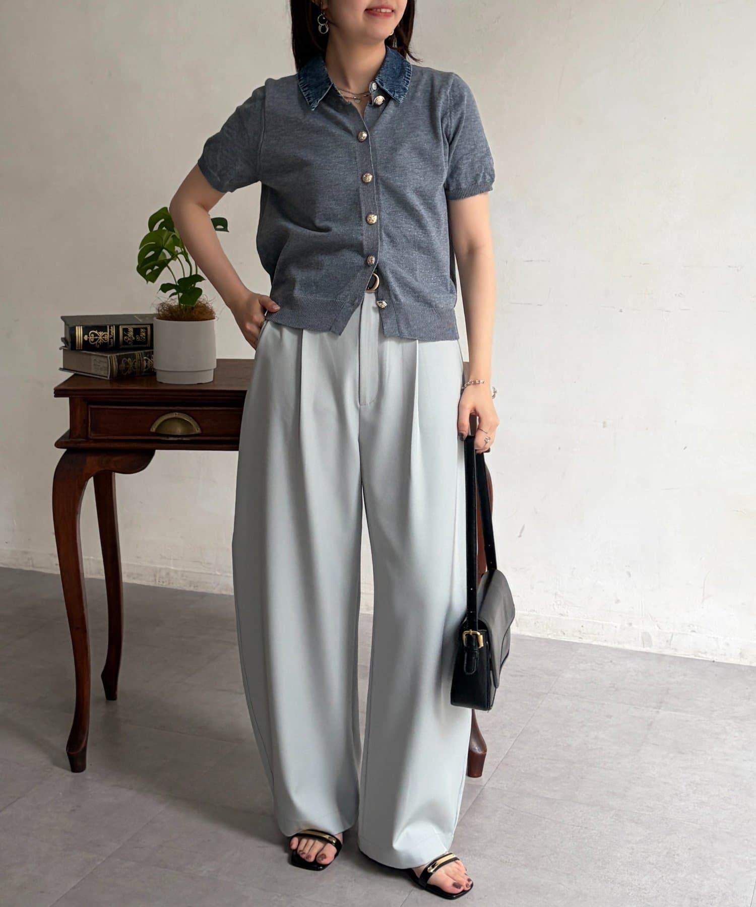 ゴールドのボタンが、さりげない華やかさをプラス♪