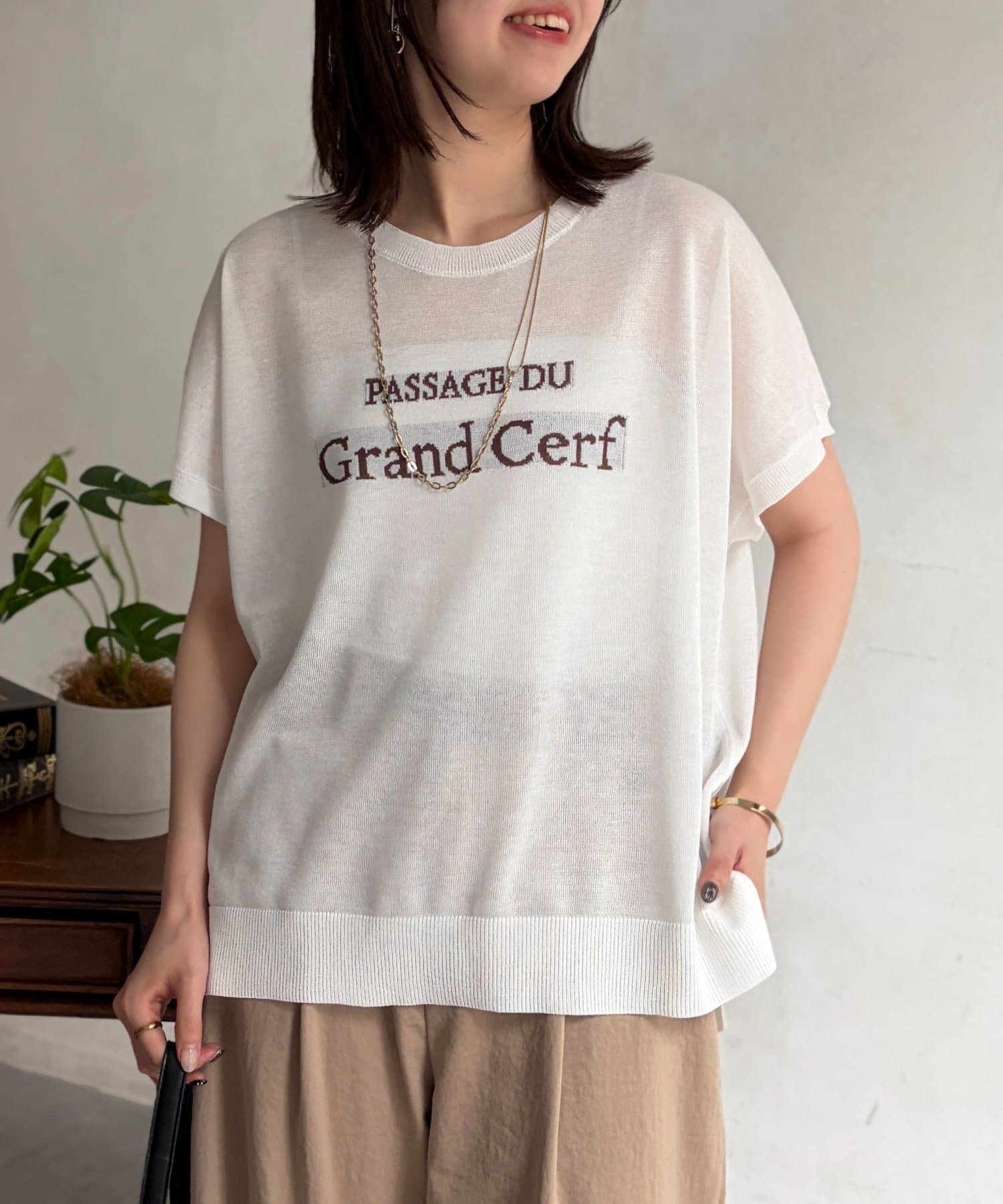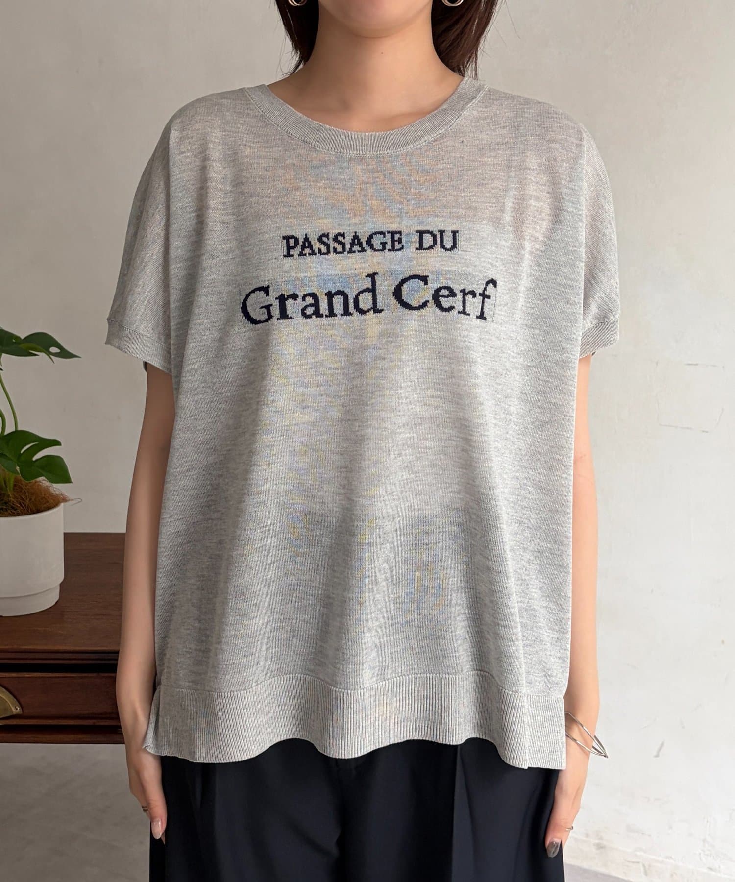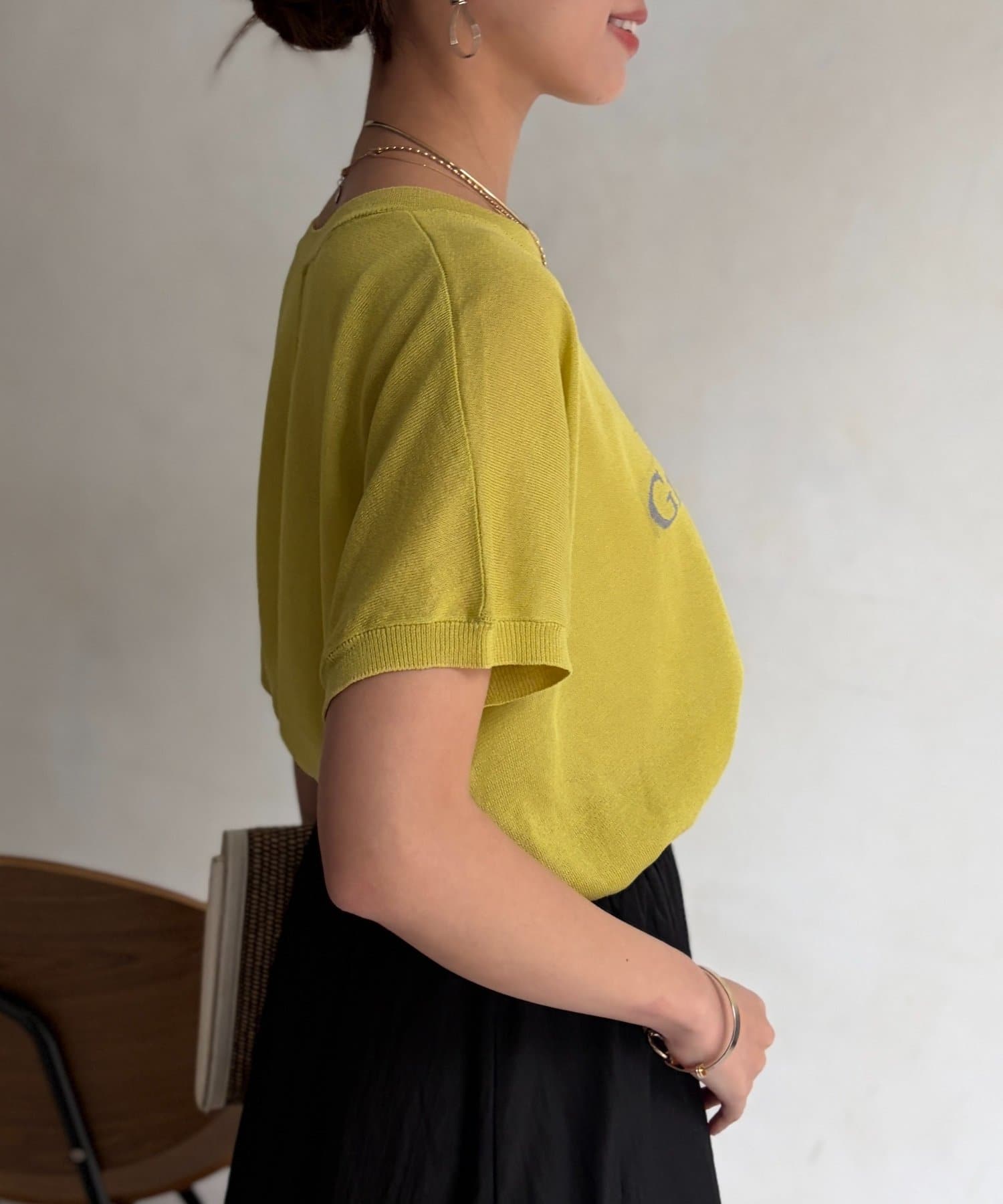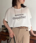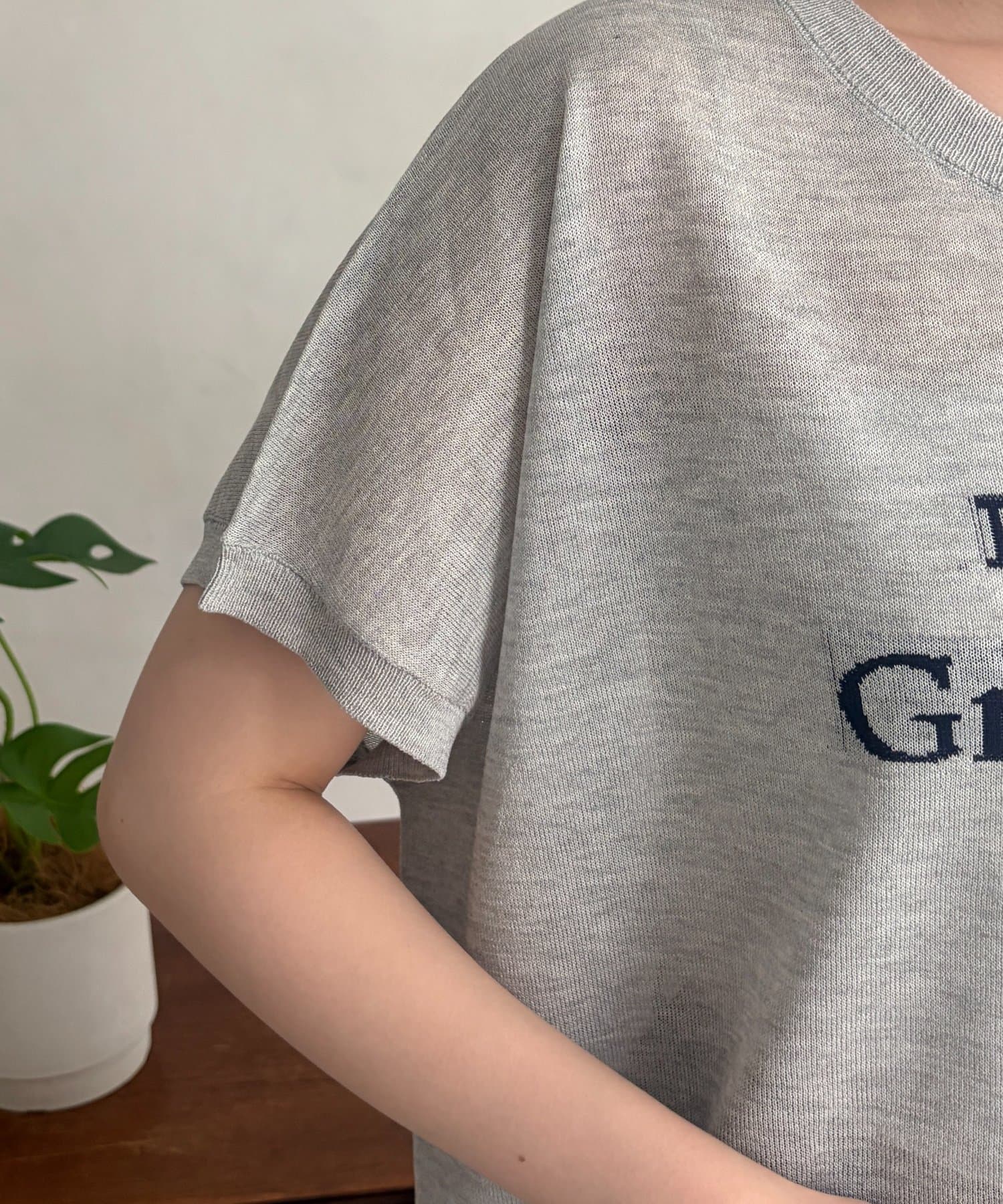 ほんのりとシアー感のある素材と、さり気ない配色で拘ったロゴがポイントの一枚。