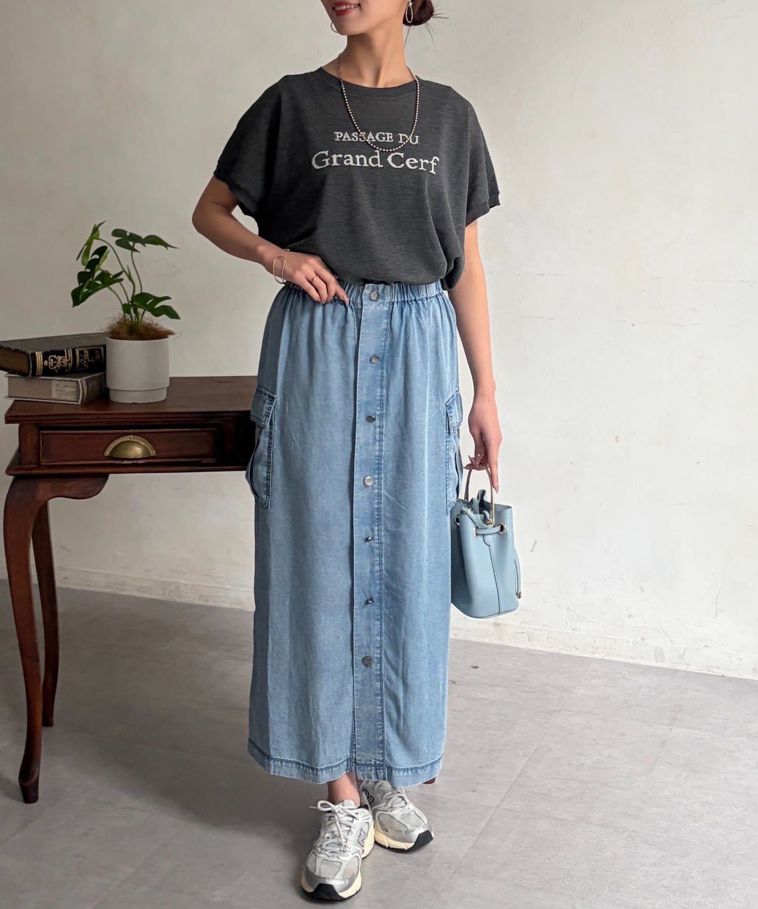 パウダー加工デニムナロースカート