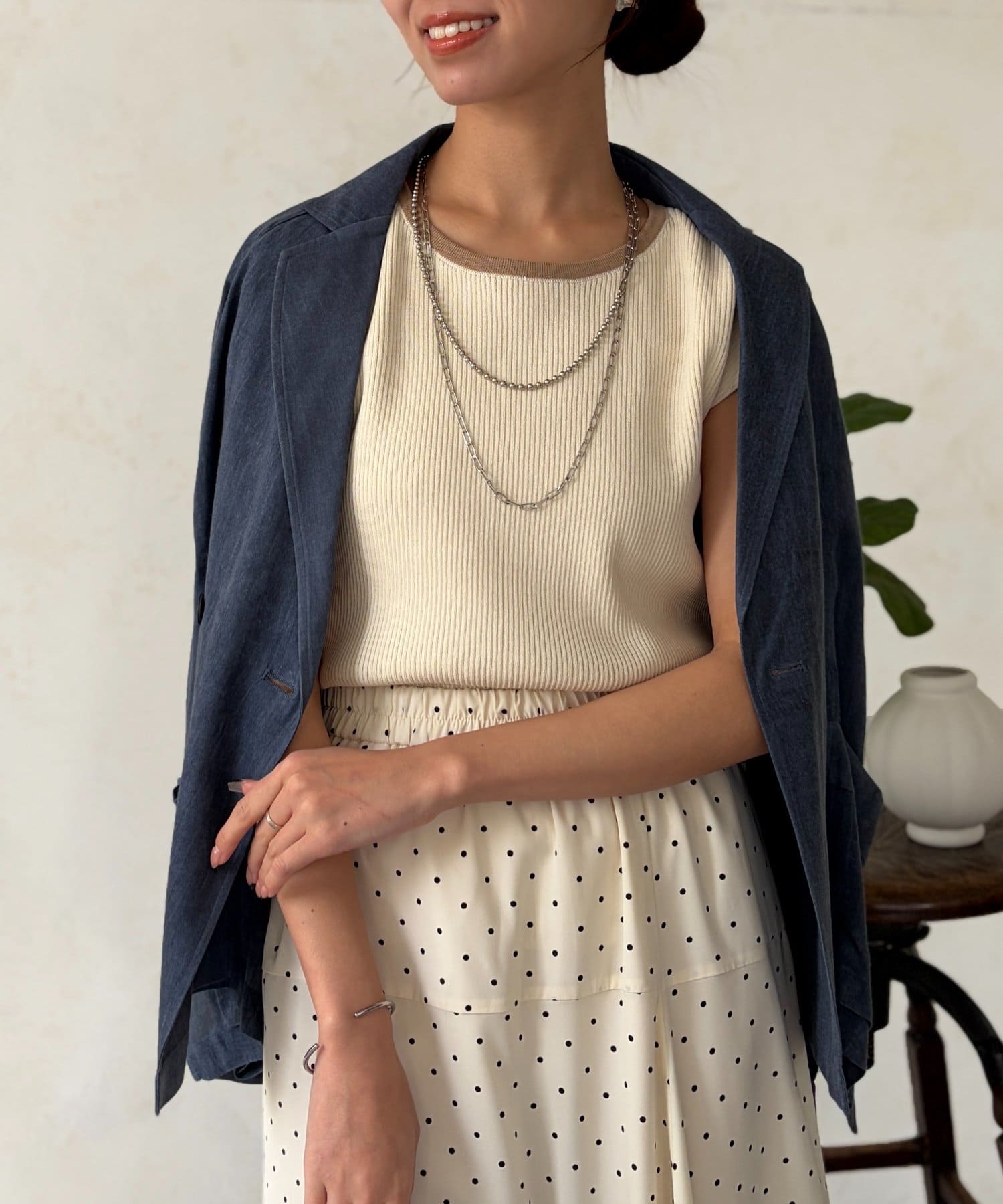 インナーにタンクトップやキャミと合わせたり、ワンピースや