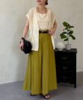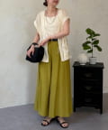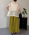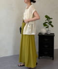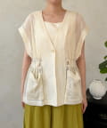 ウエストにいれたドロスト紐でキュッと絞れる、着回しパターンの多いベストです。