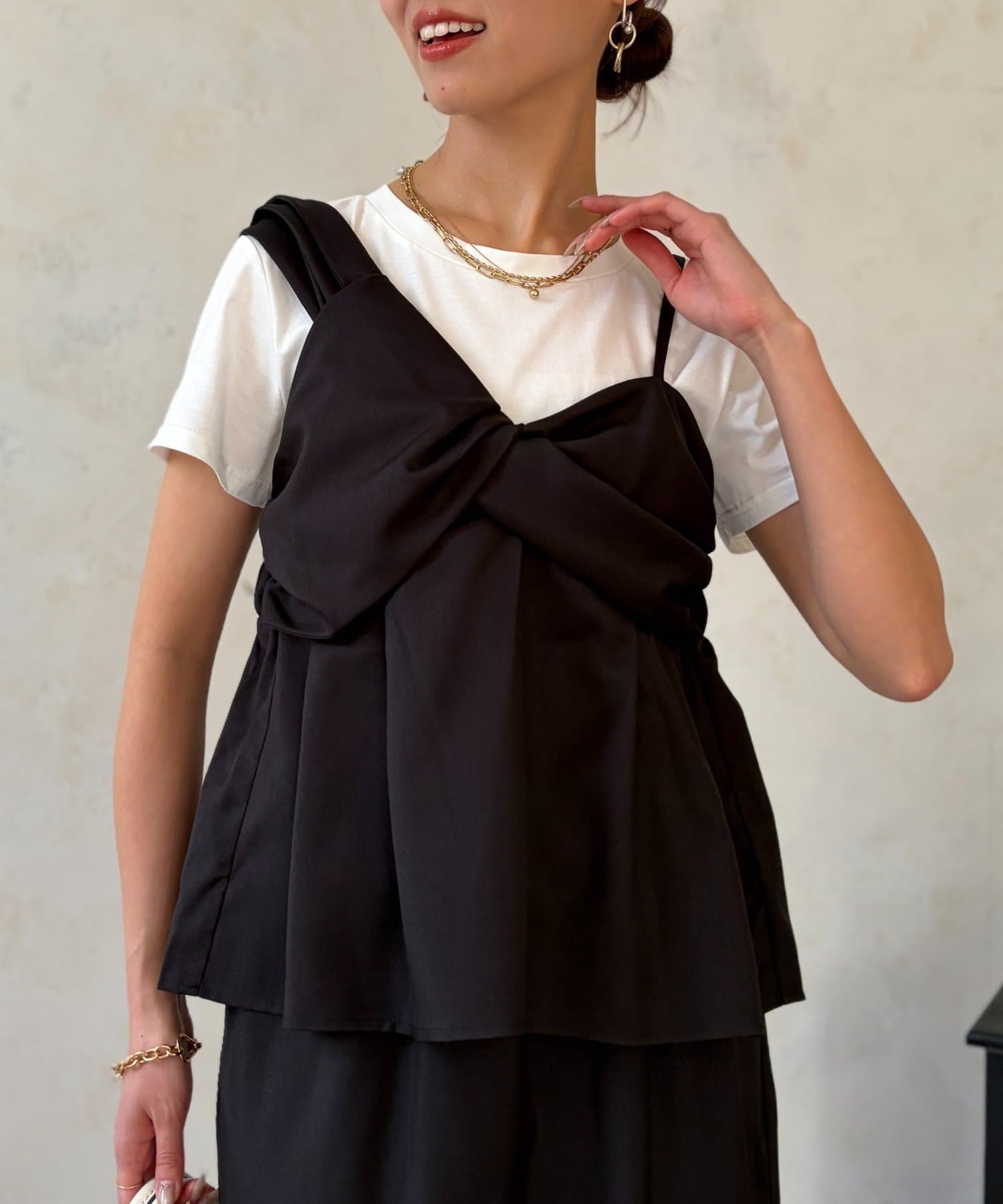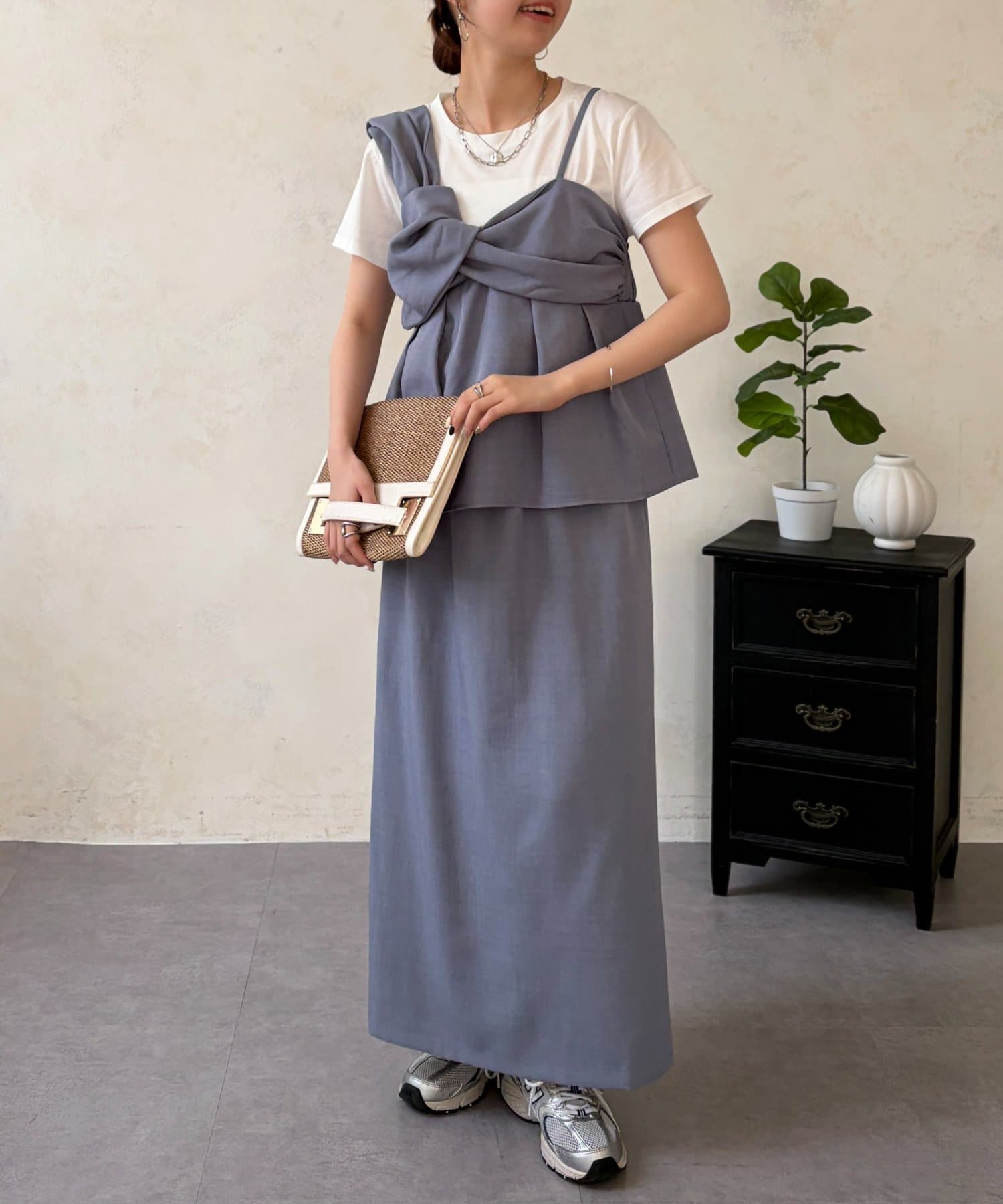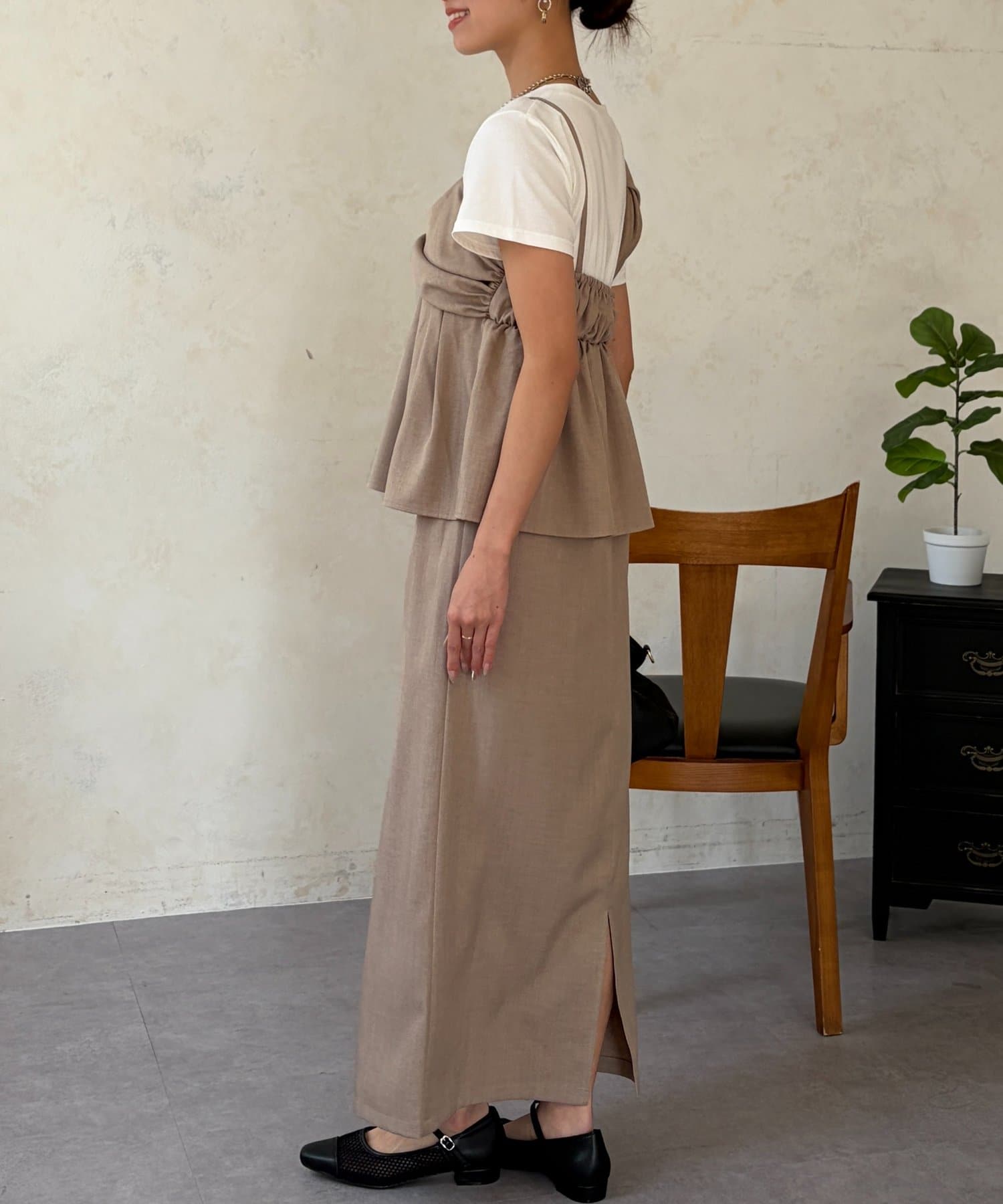 • Chez toi(シェトワ) ビスチェ見えドッキングプルオーバー×ナロースカート