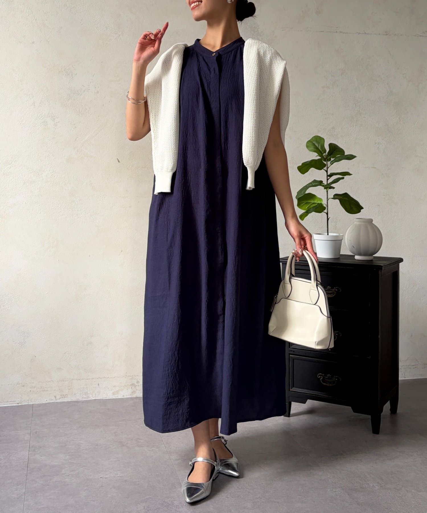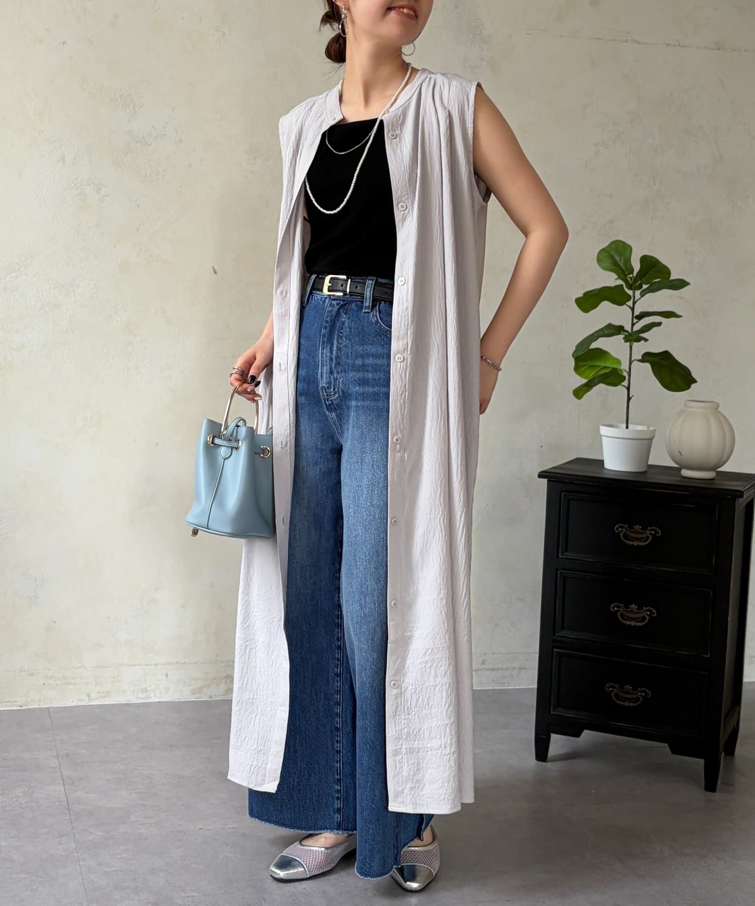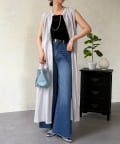 前開きでジレ風にしたり、ウエストマークでシルエットを変えたり、幅広い着こなしが楽しめます◎