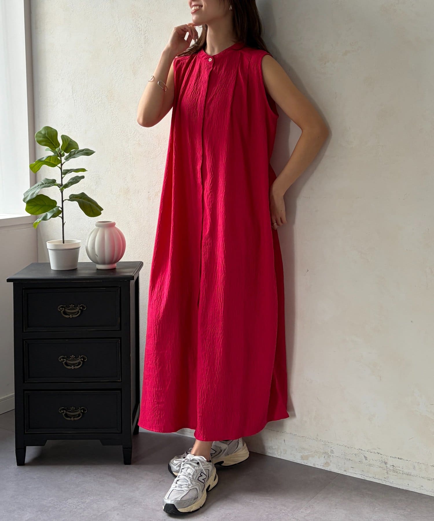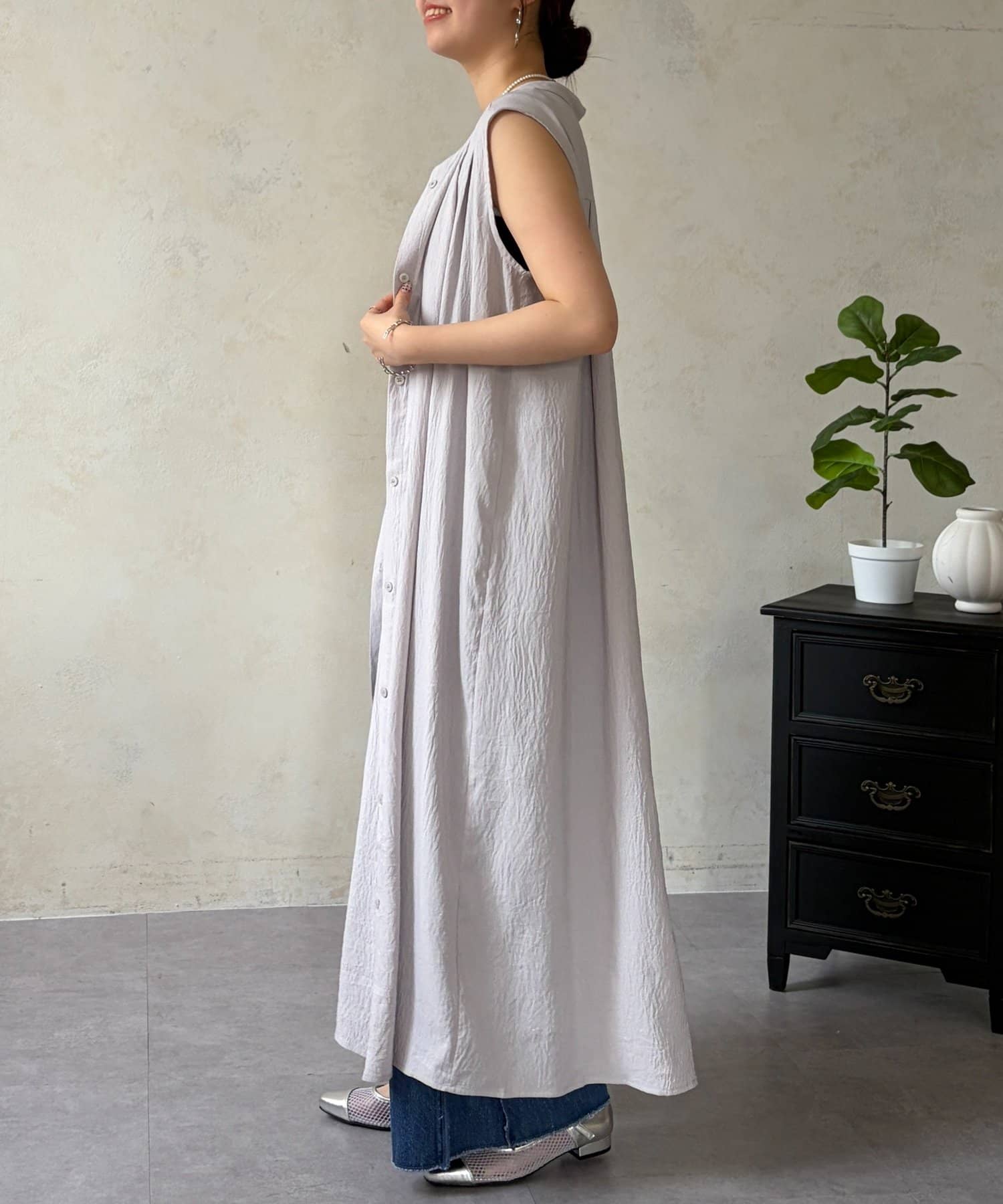 ワンピースとしてだけでなく前開きでジレ風にも◎