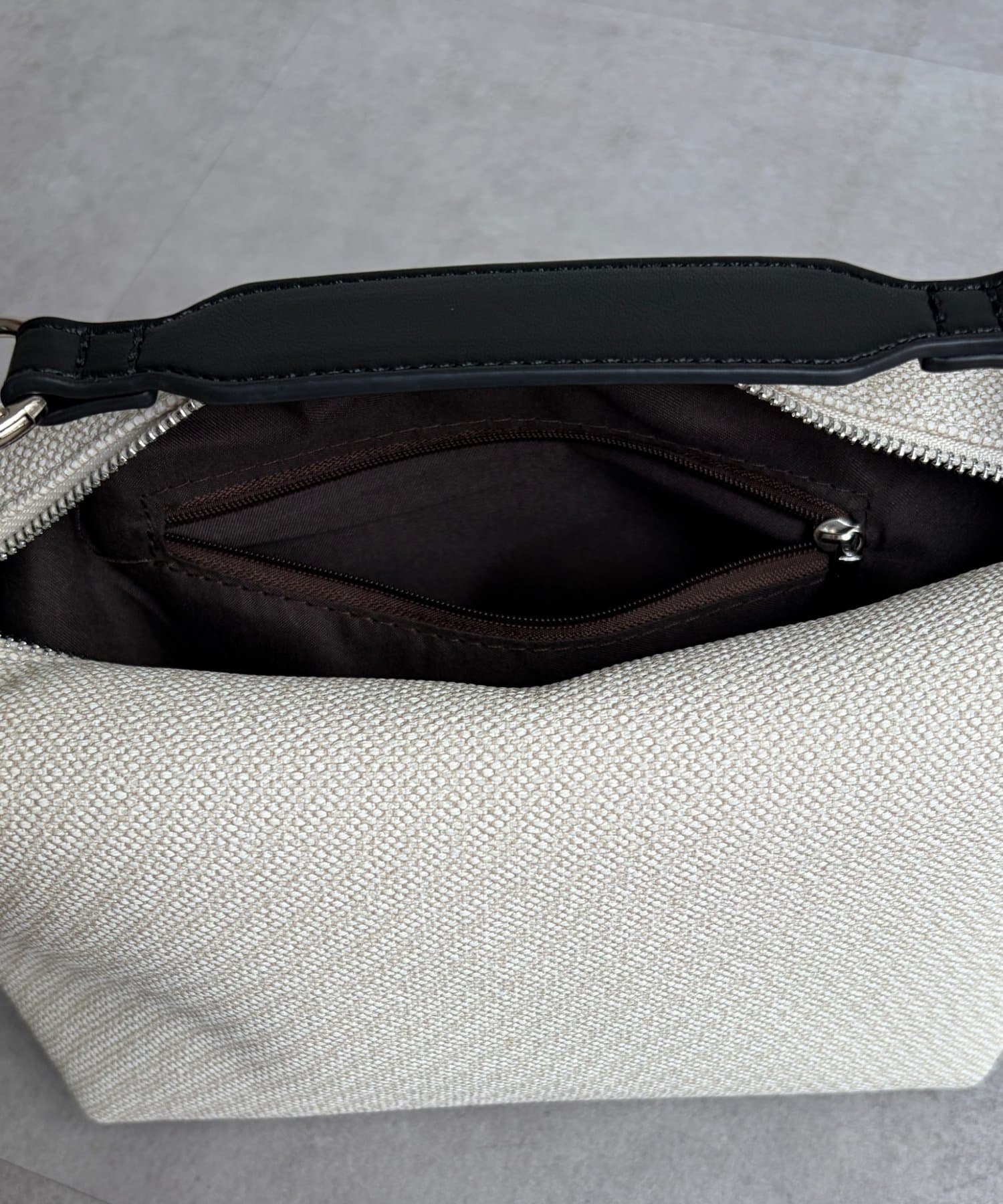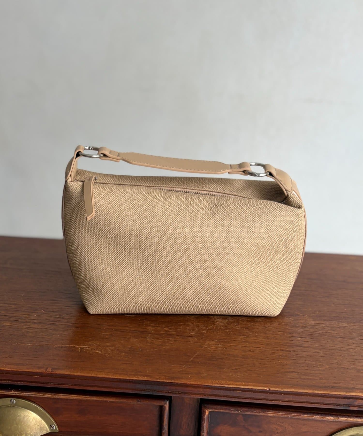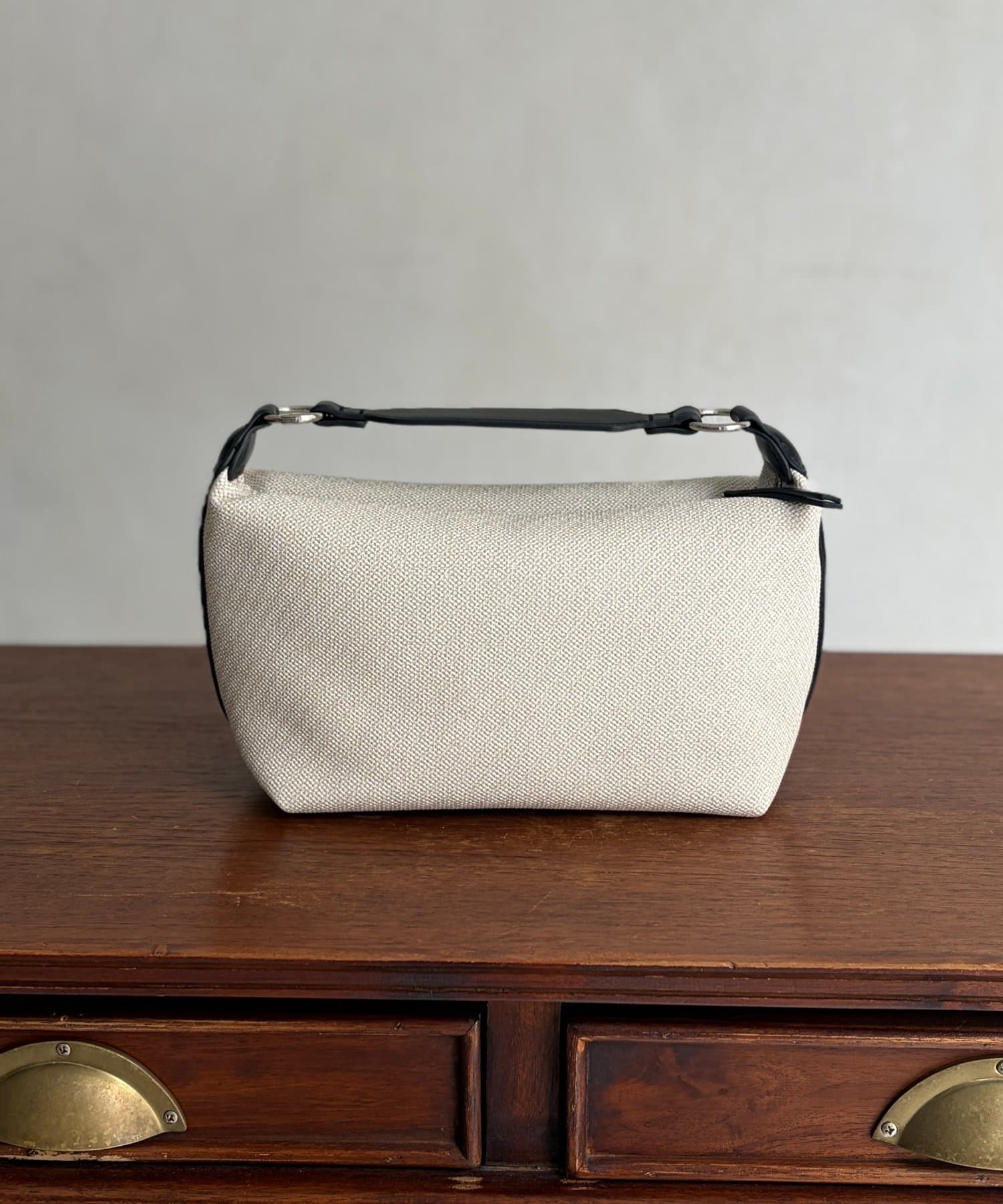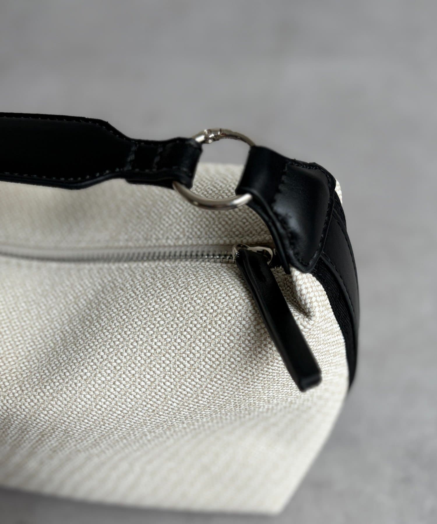 キャンバス地に合皮のデザインが映える、大人っぽく上品な印象のバッグです。
