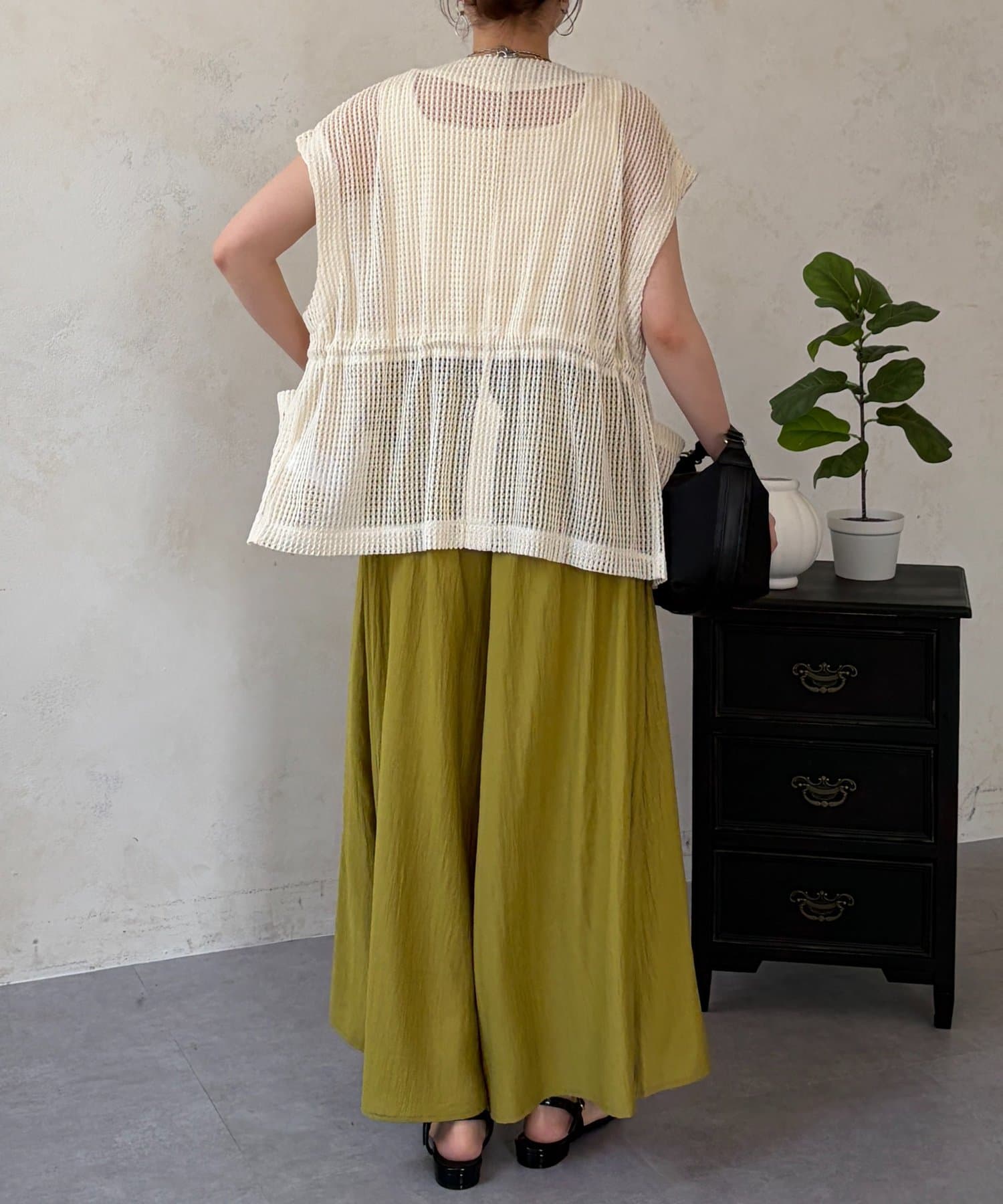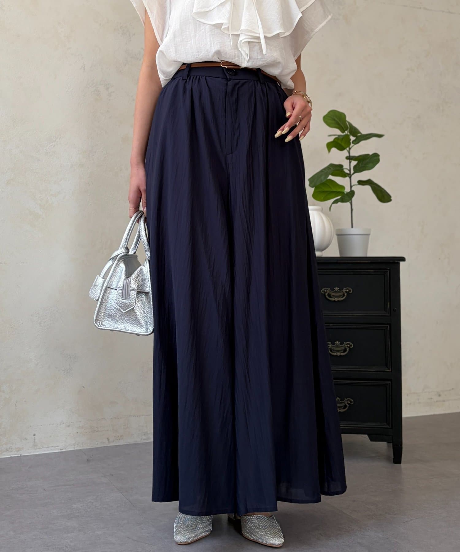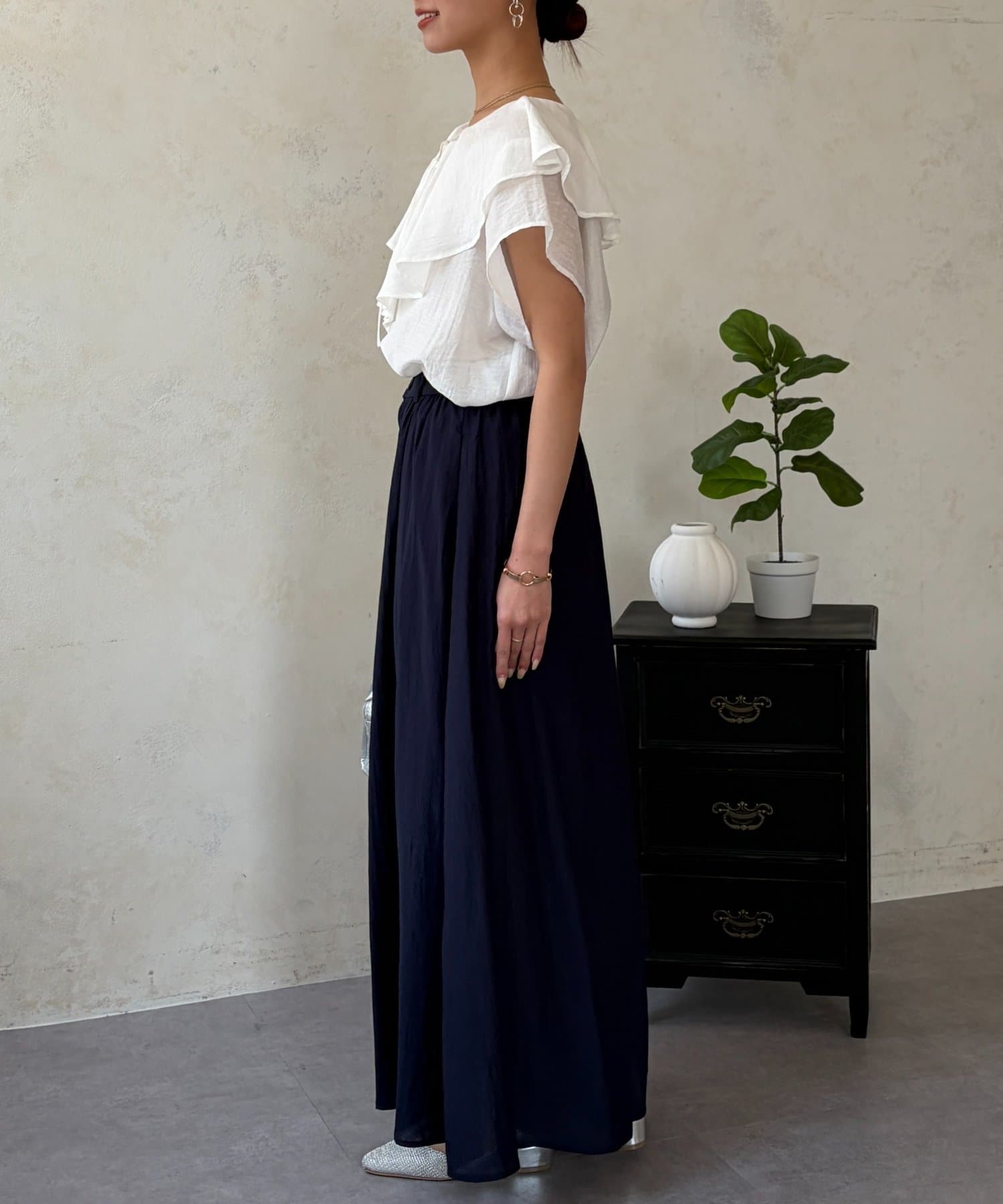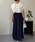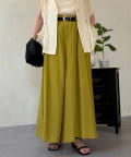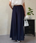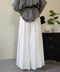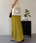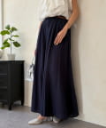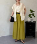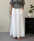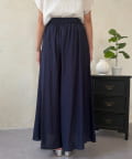 フレアシルエットでボディラインを拾いにくく、トップスとのバランスも取りやすい1着。