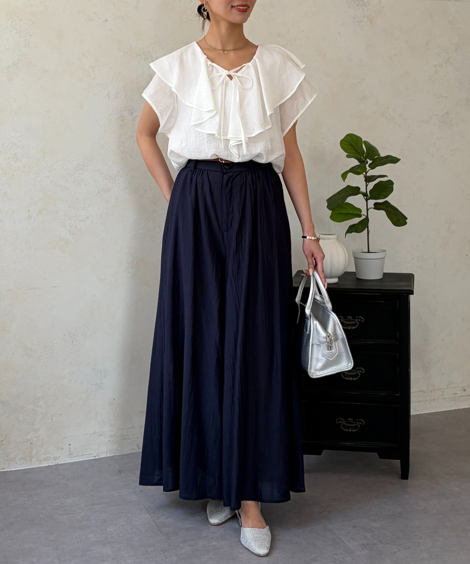シャツやブラウス、夏らしいライトジャケットと合わせればオフィスシーンでも活躍します。