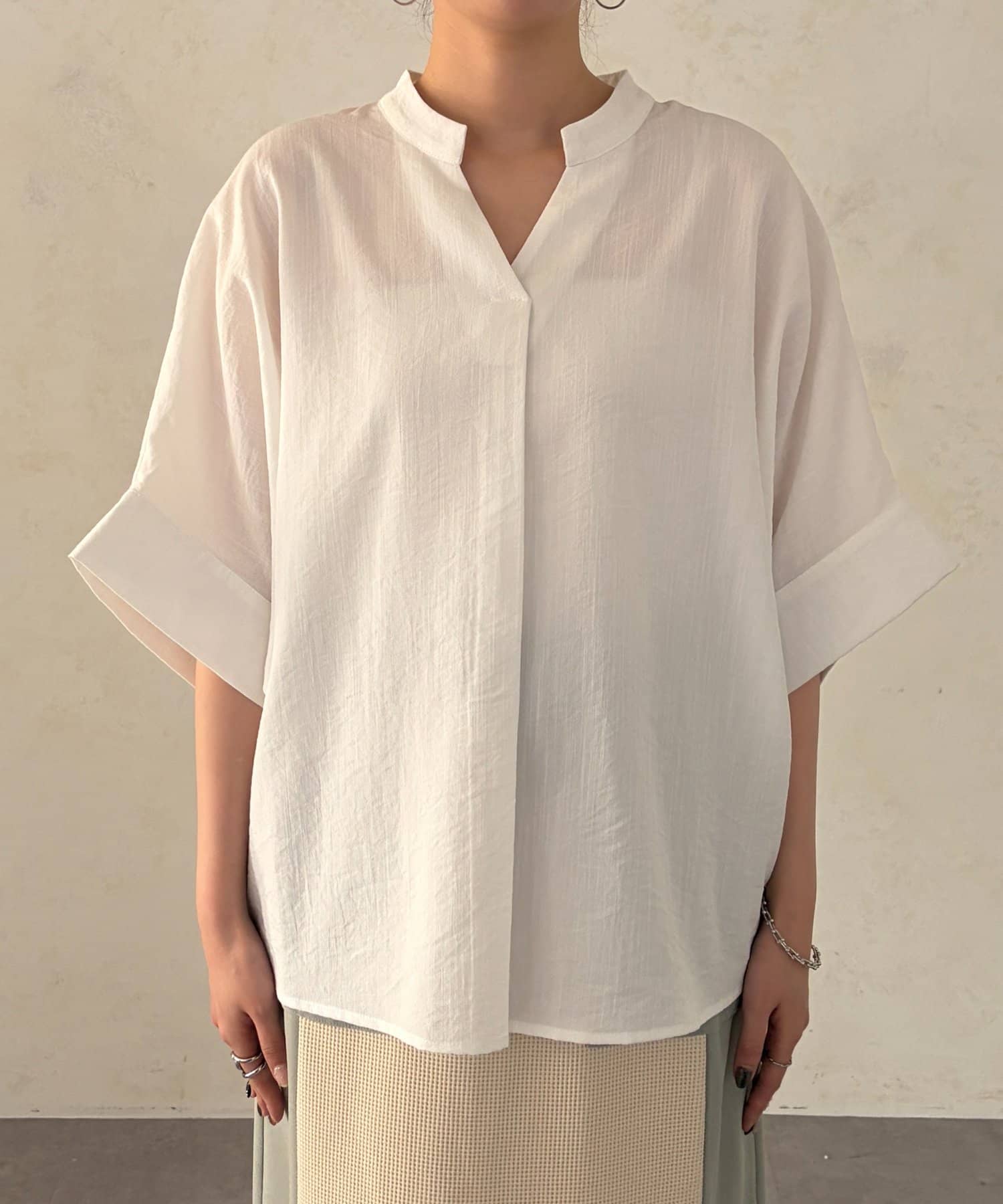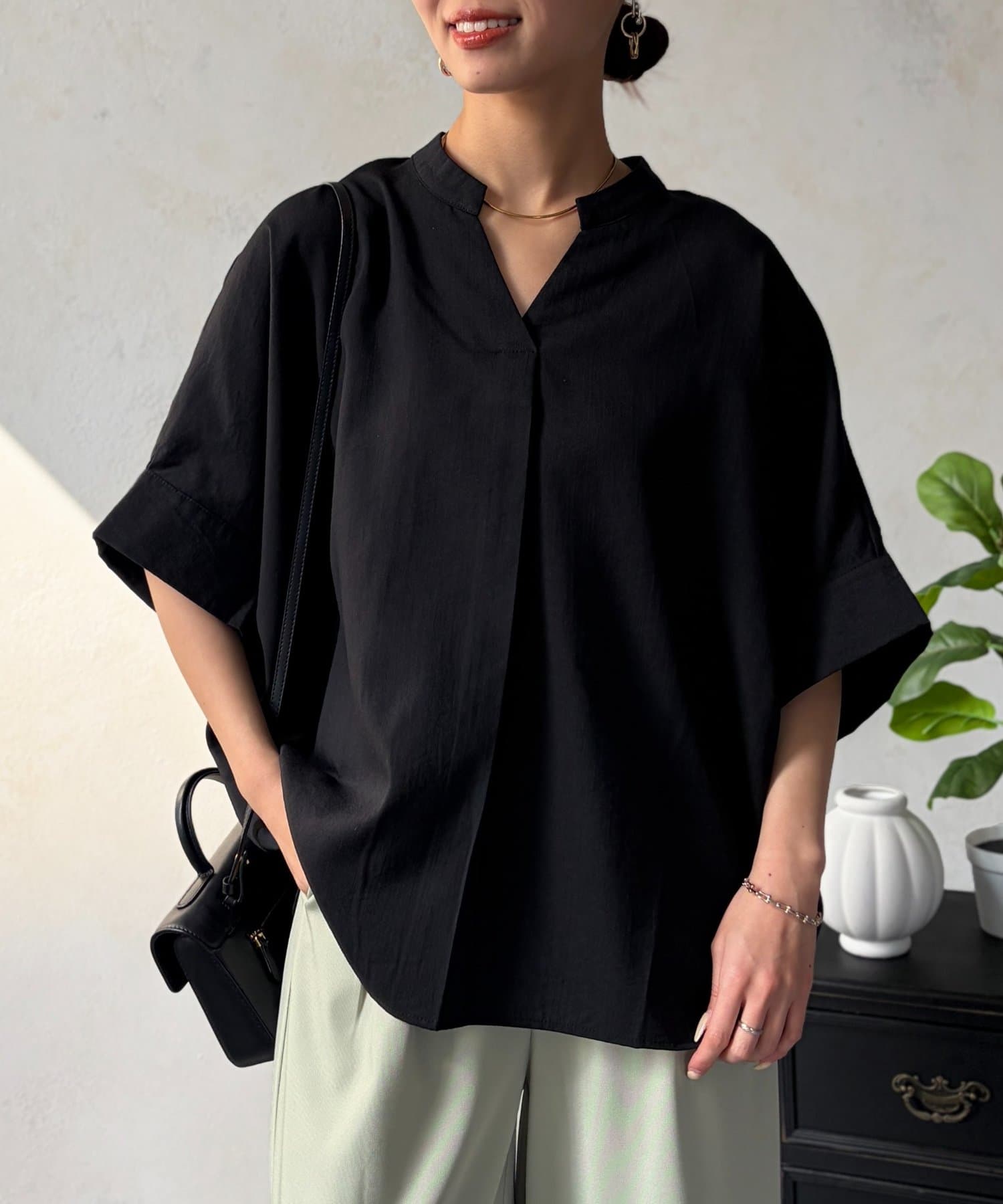 袖ターンバックブラウス