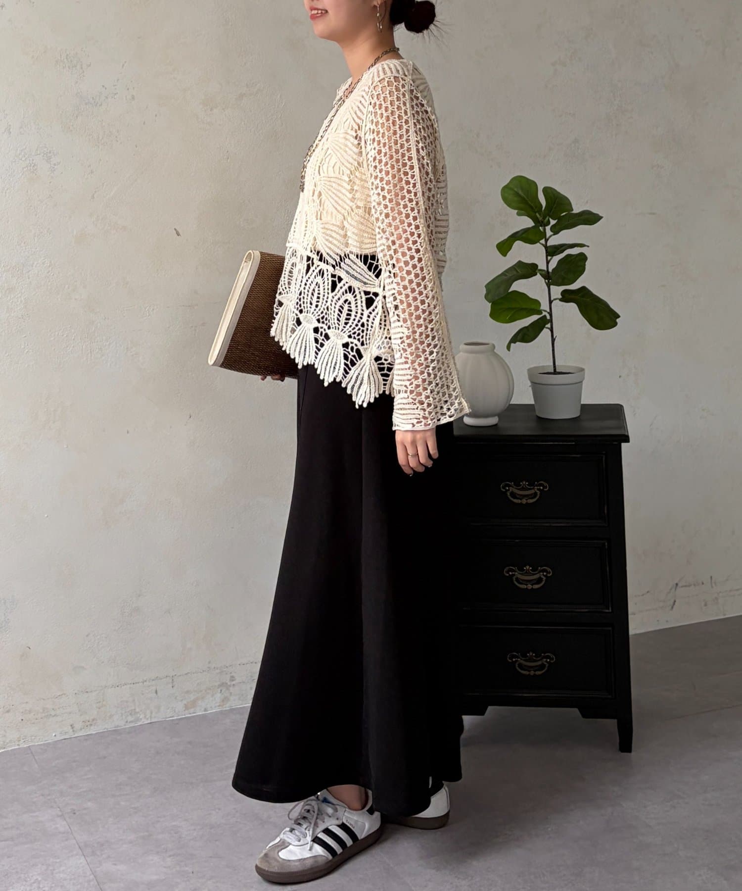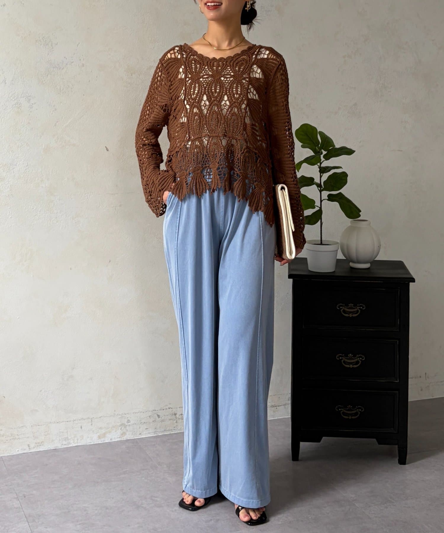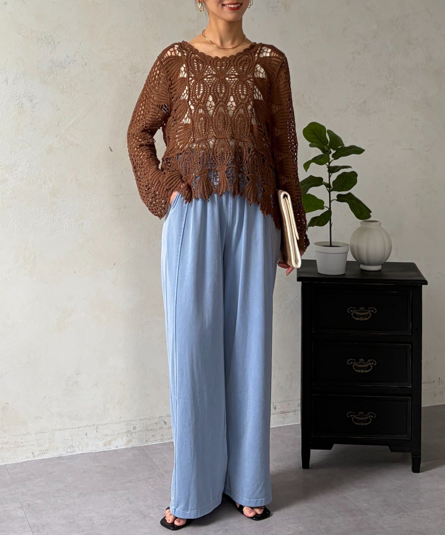 繊細な編み目が魅せる、夏の抜け感スタイル