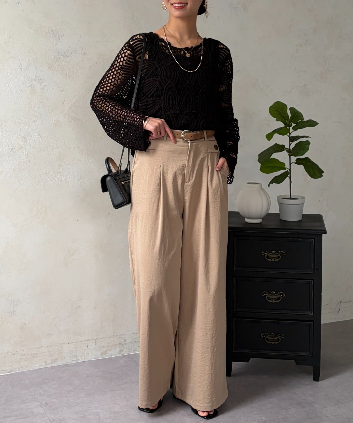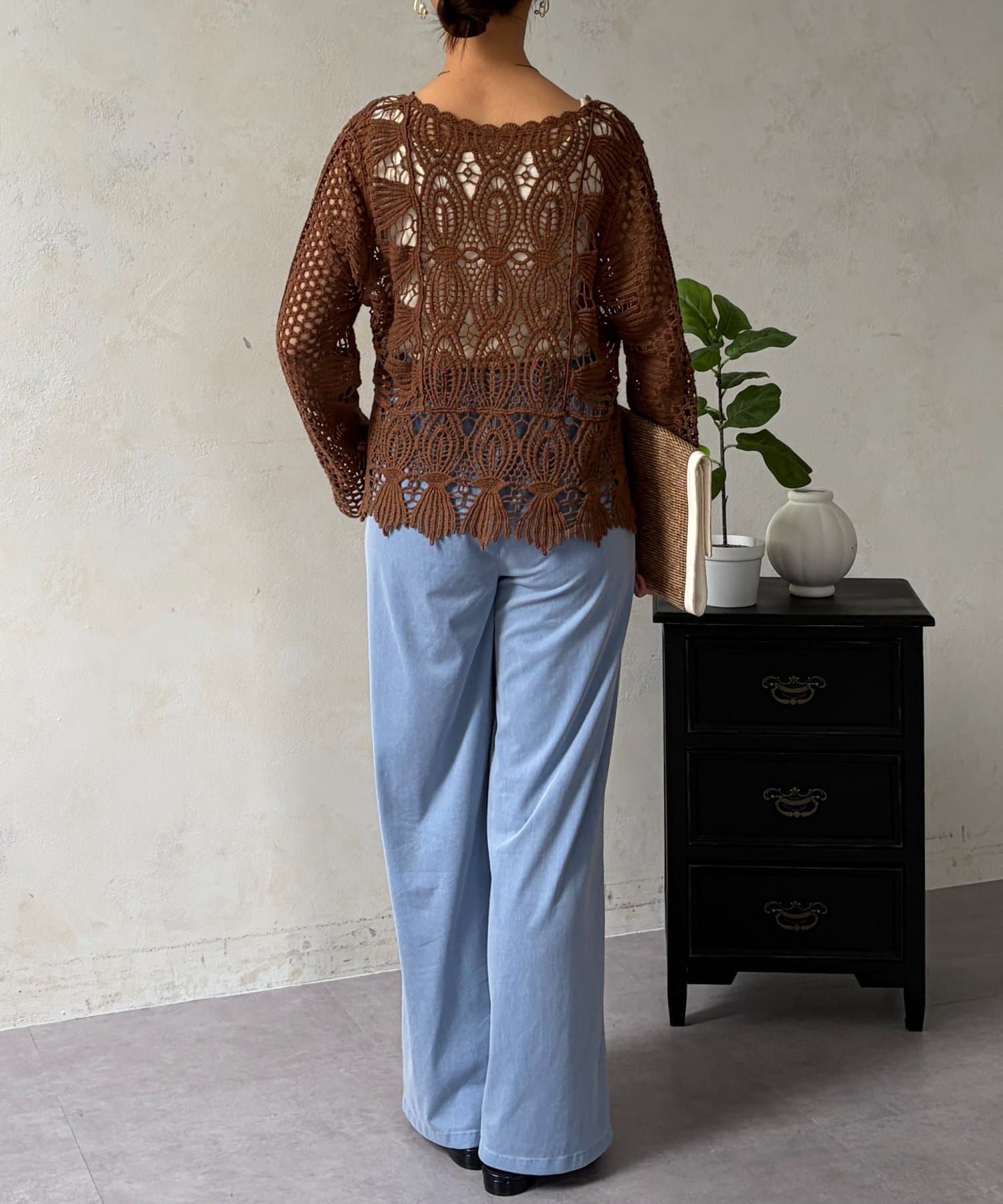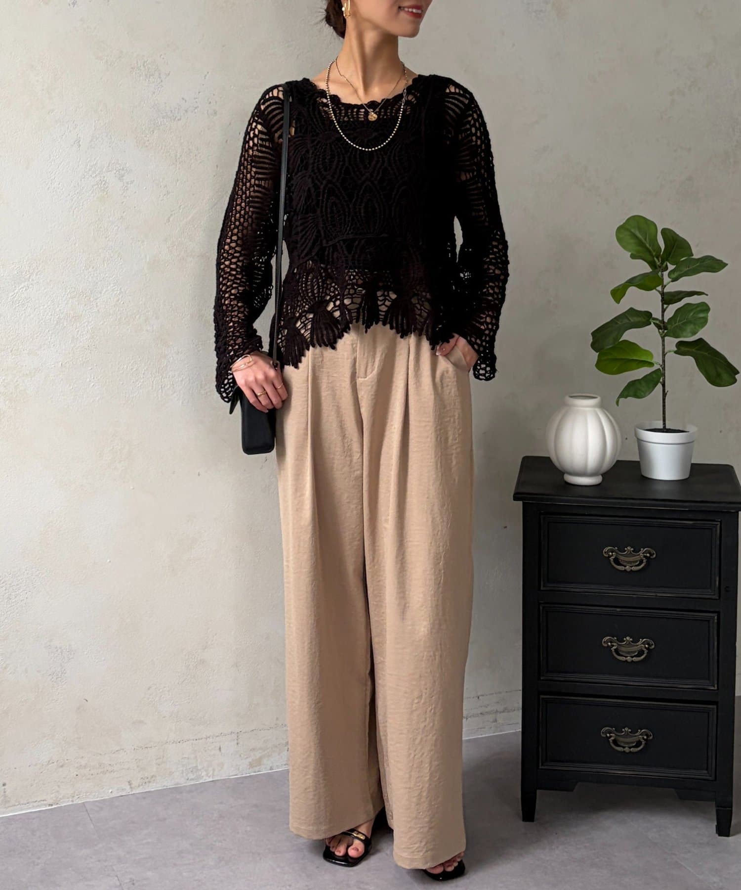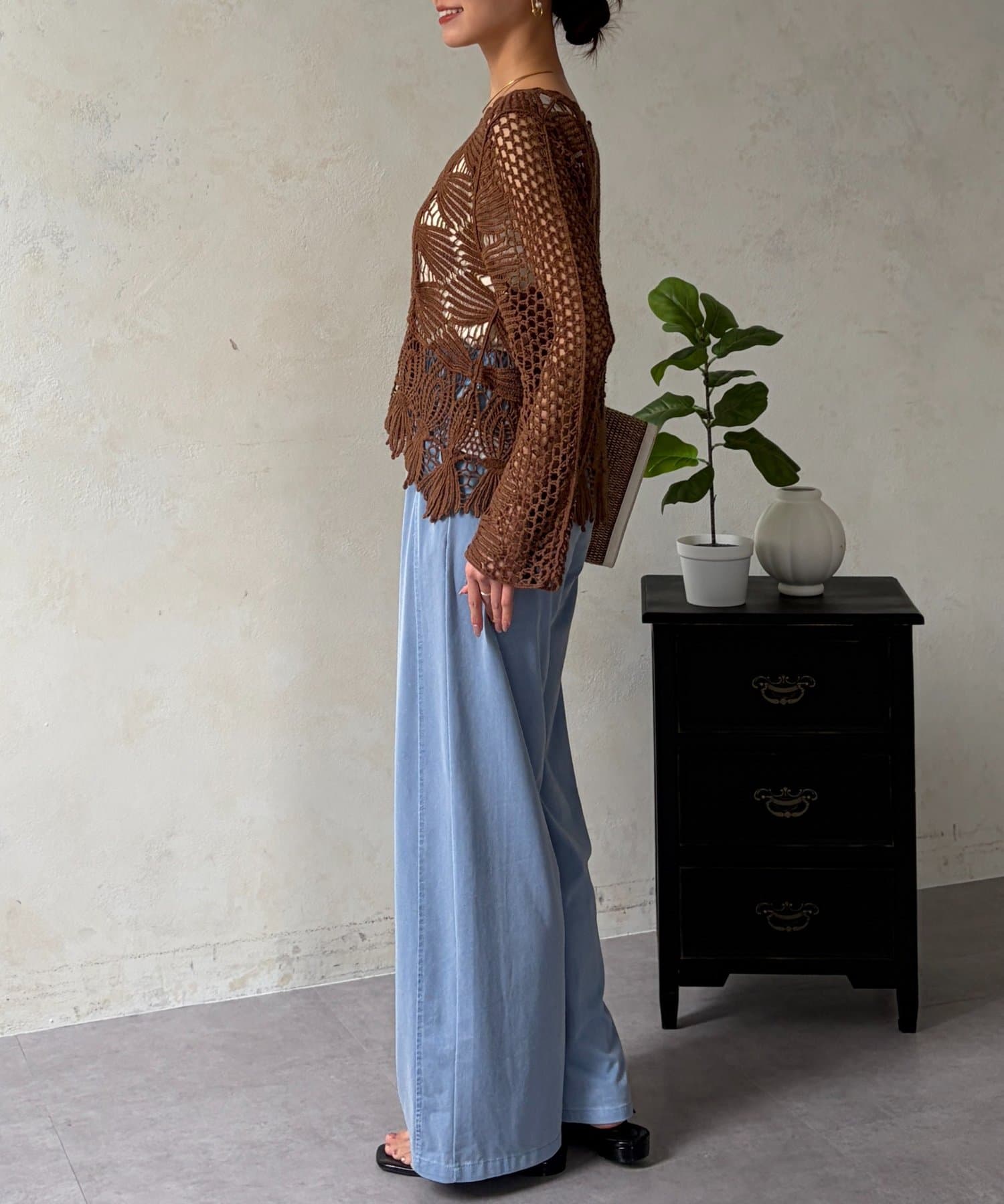 繊細な編み目が魅せる、夏の抜け感スタイル