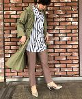 ・フレアパンツ合わせで全体をスッキリみせることができます。