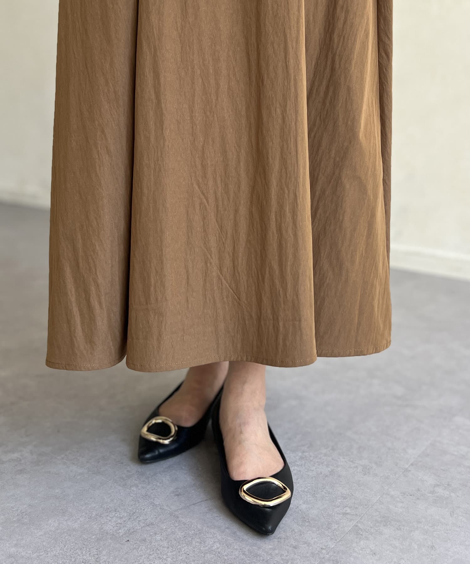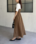スカート部分の裏地はなく、シャカシャカした布地感で、今の時期にも過ごしやすいです。女性らしいデザインですが、甘くなりすぎないため、30代でも着用しやすいです。