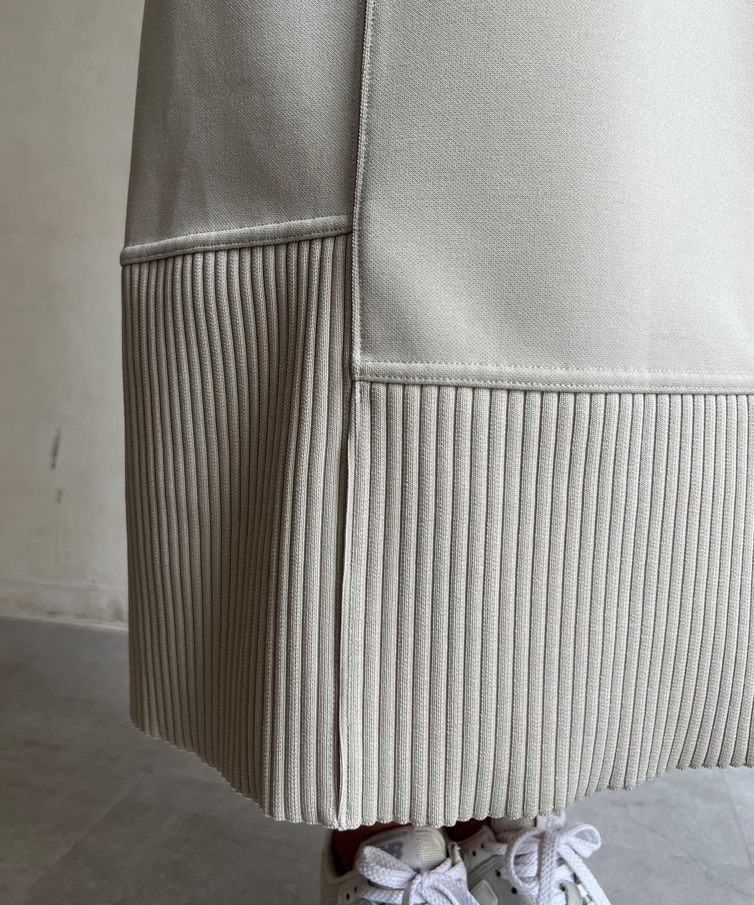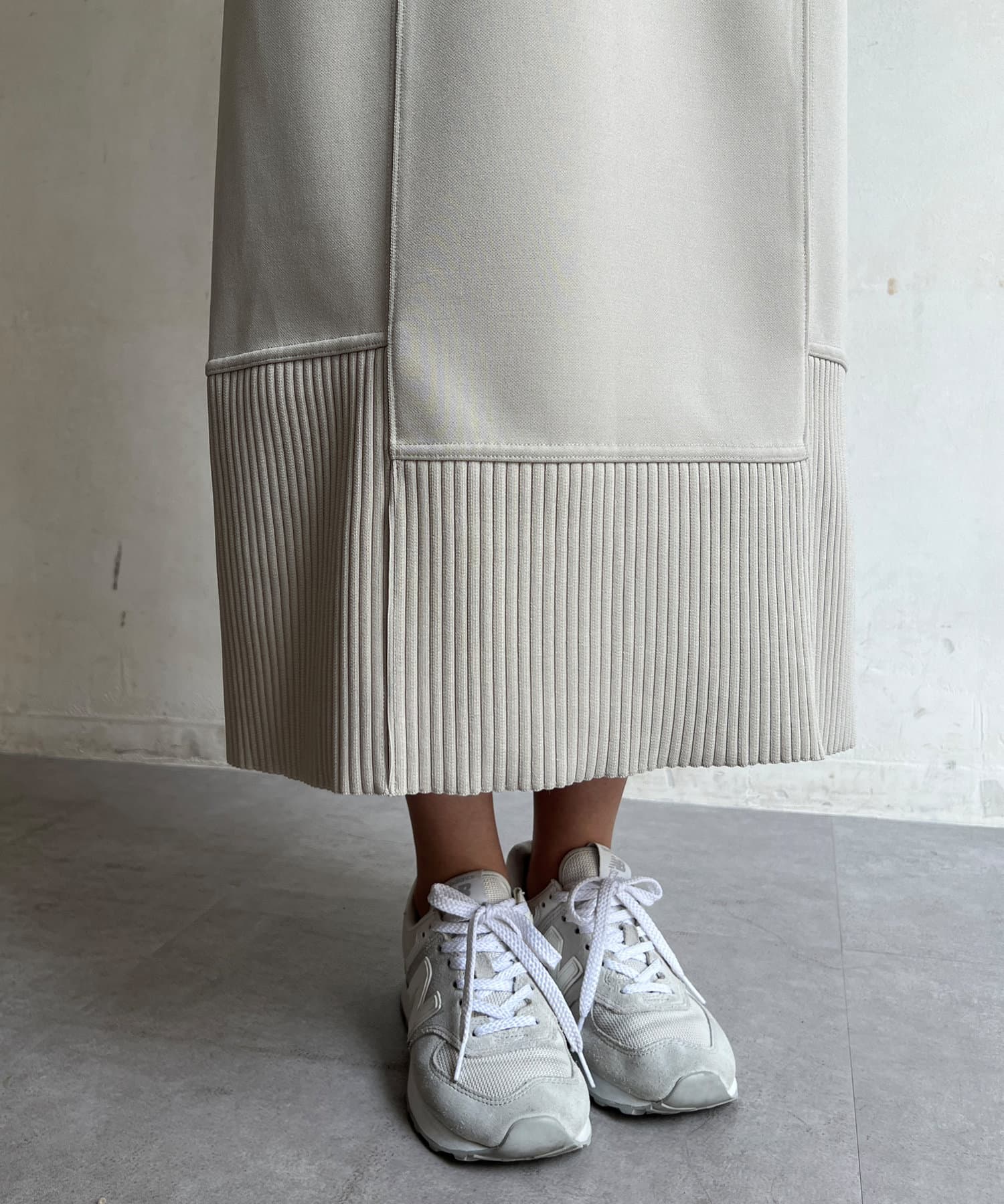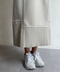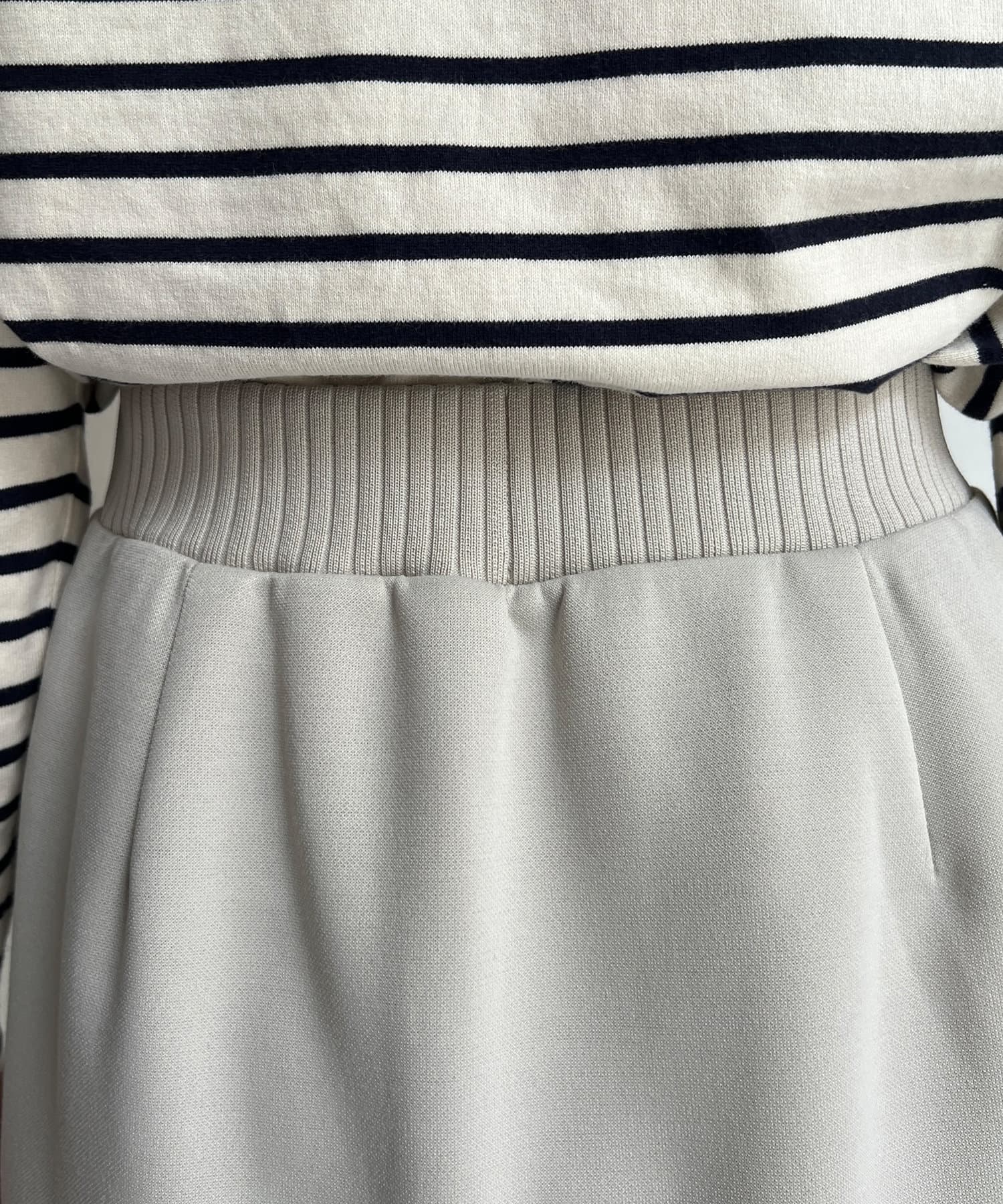 ウエストの後ろ部分、裾部分はニットリブを使用し単調にならず