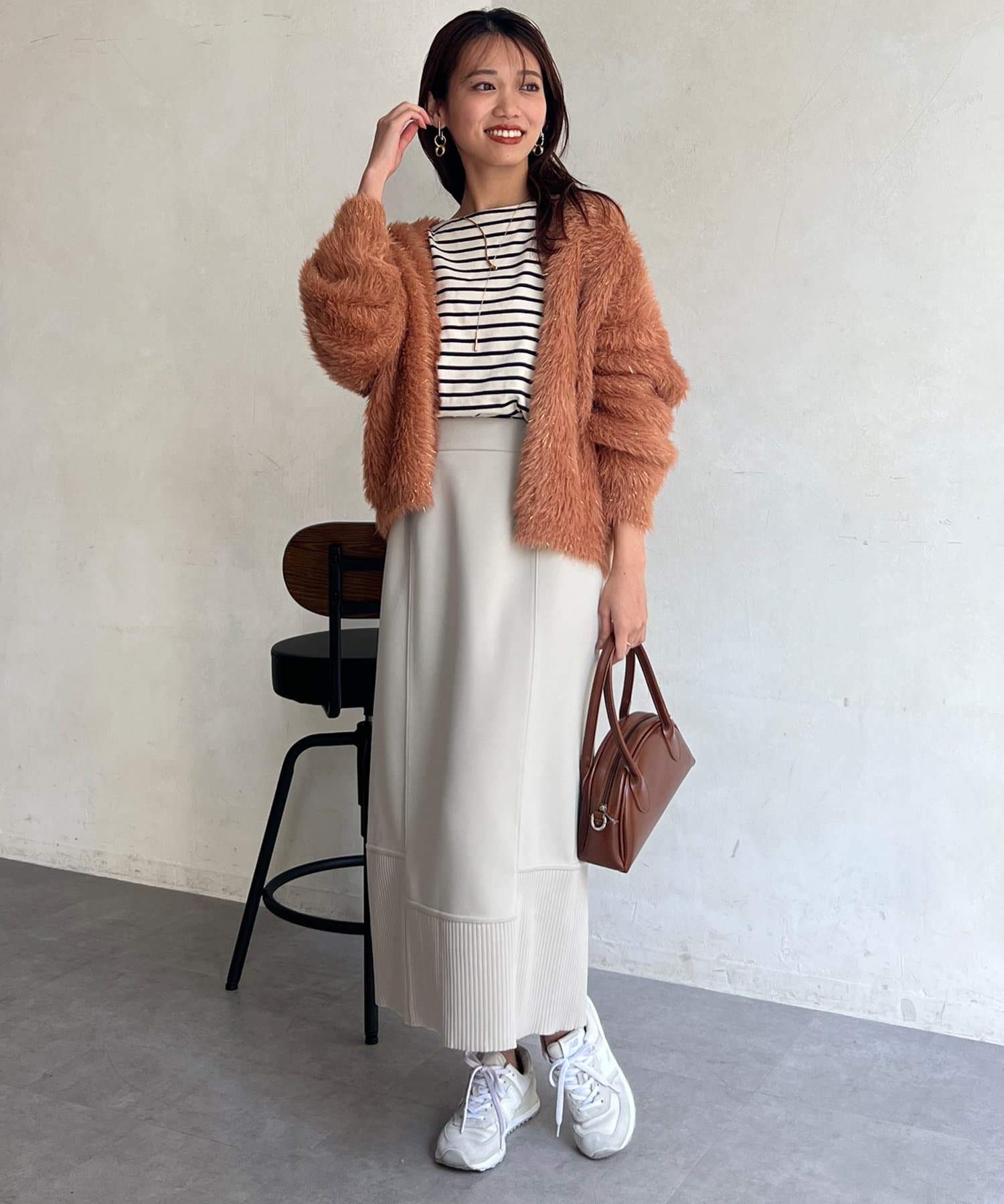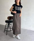 こなれた印象に。後ろにはスリットが入り足さばきも良く