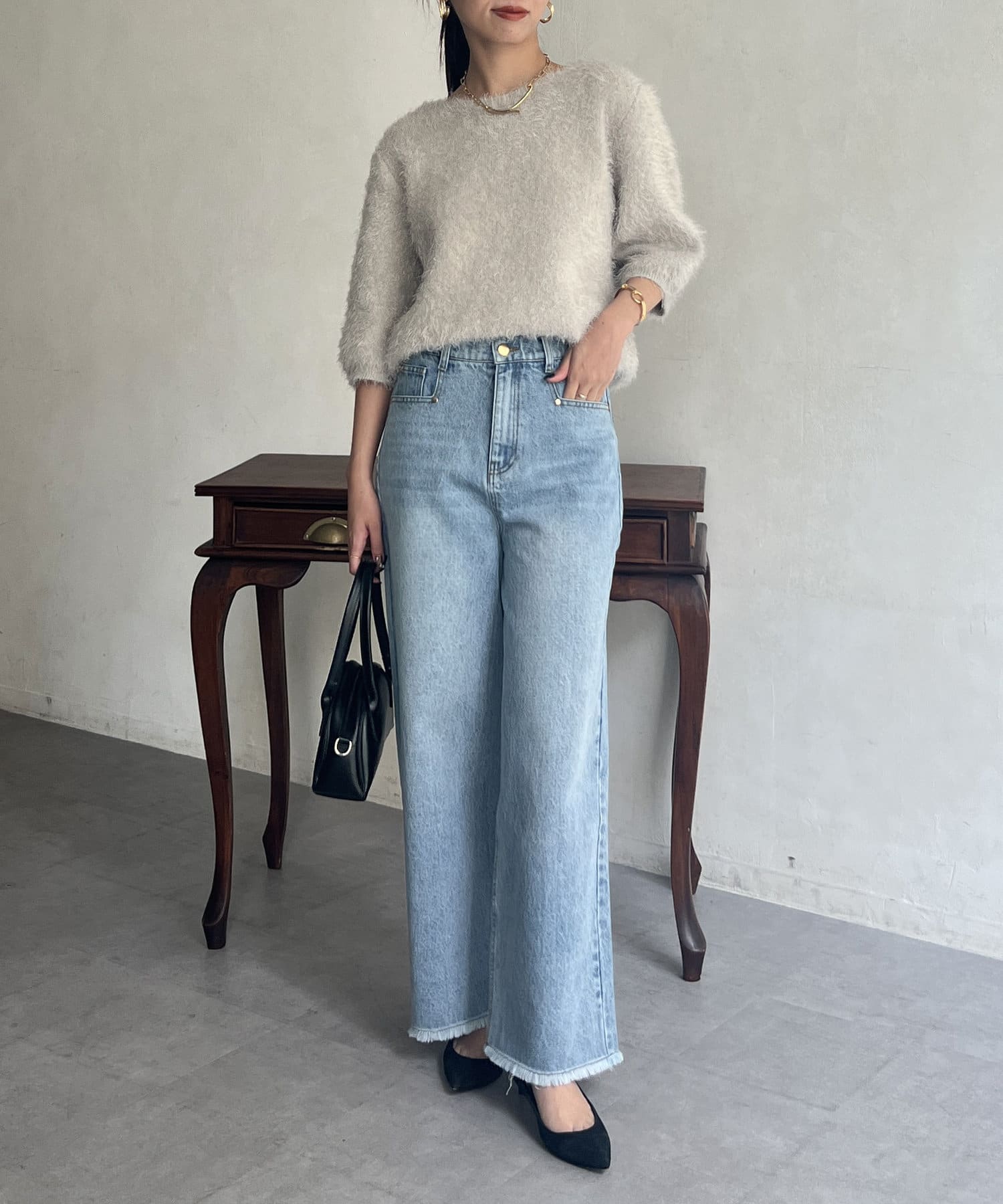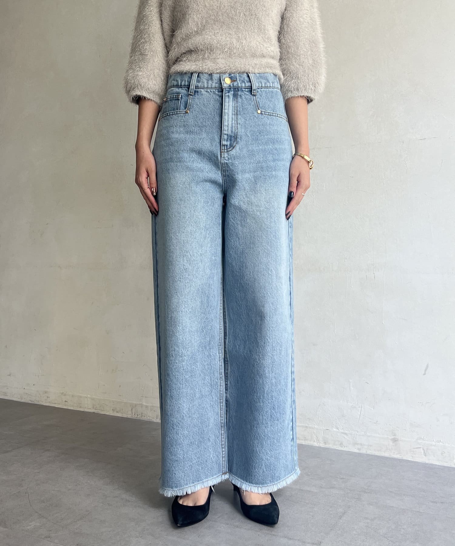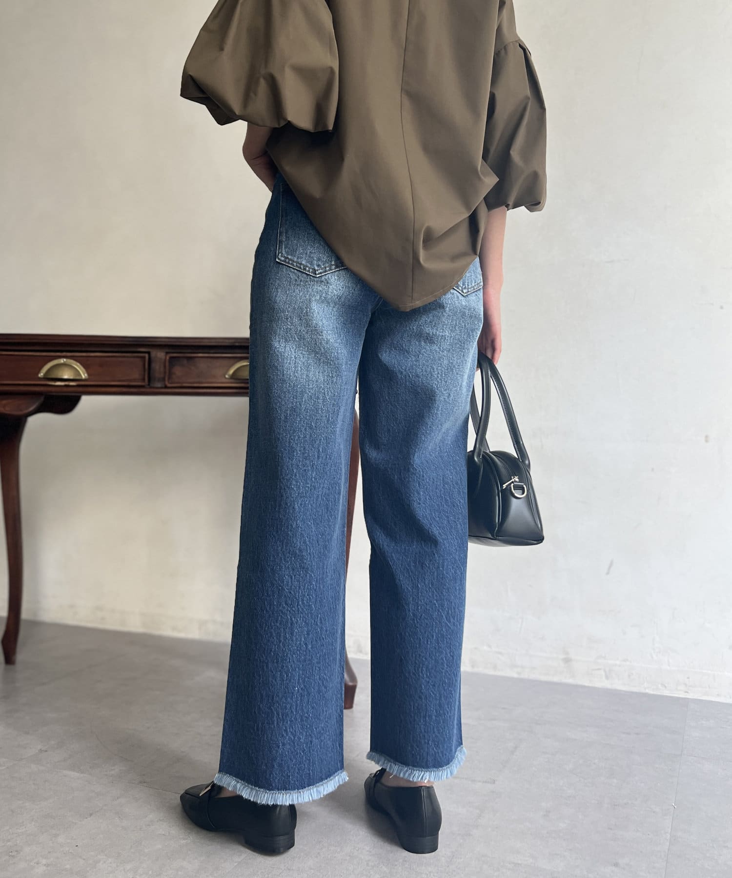 裾のフリンジデザインがこなれ感をプラスしてくれるデニム。