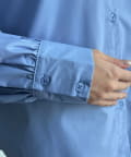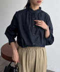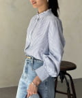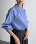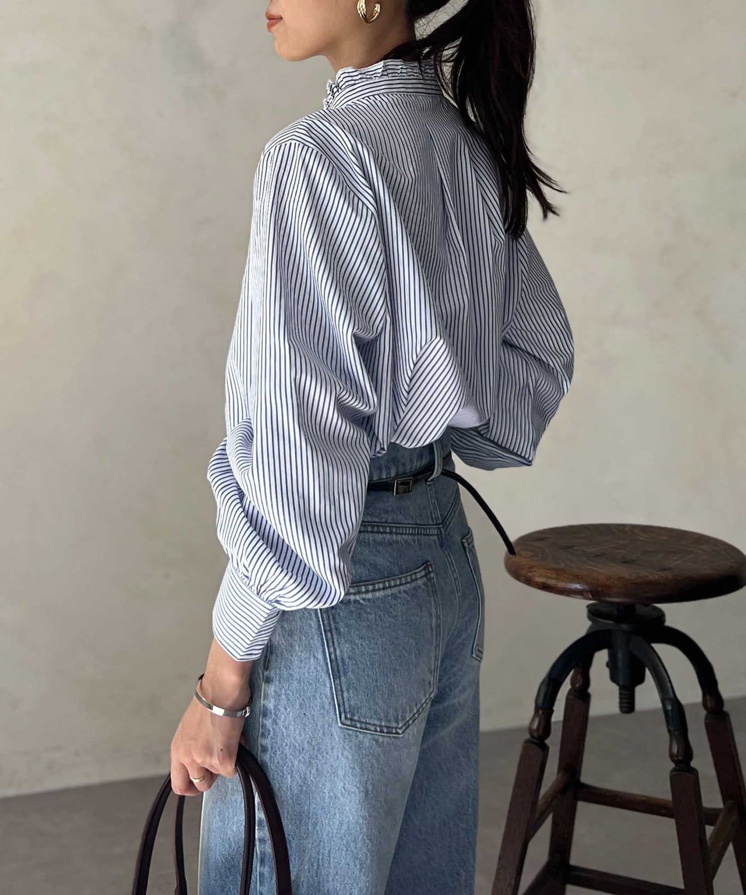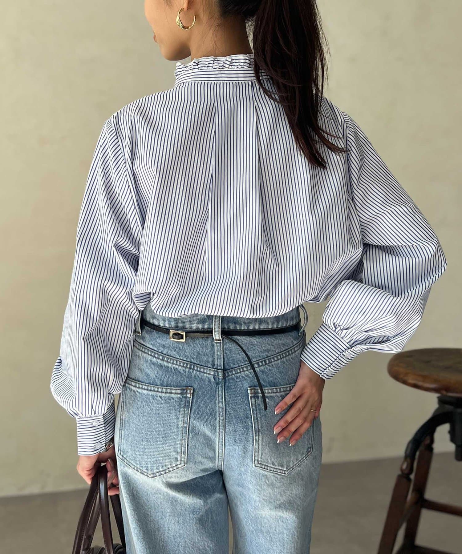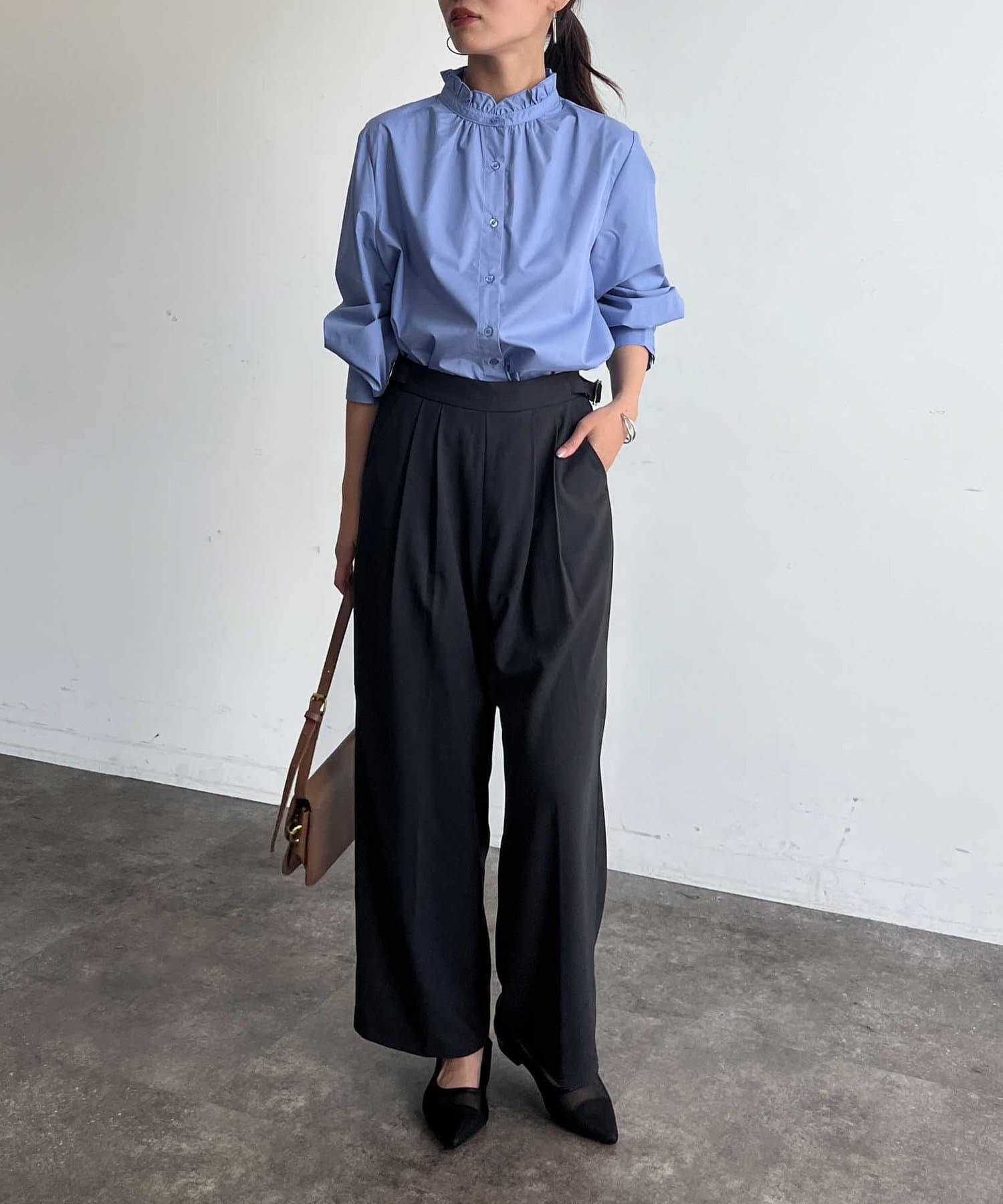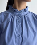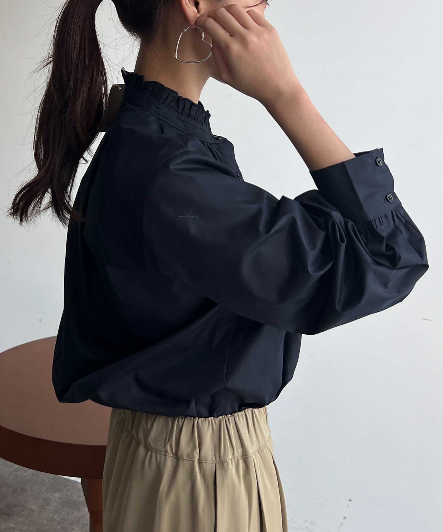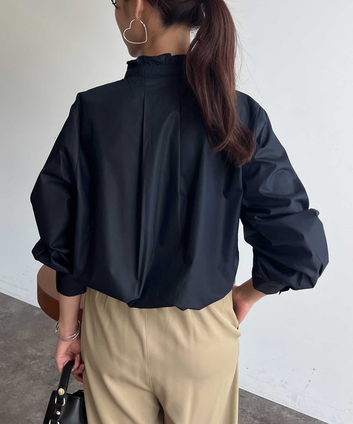 さりげないネックフリルがコーディネートのアクセントになるシャツ。