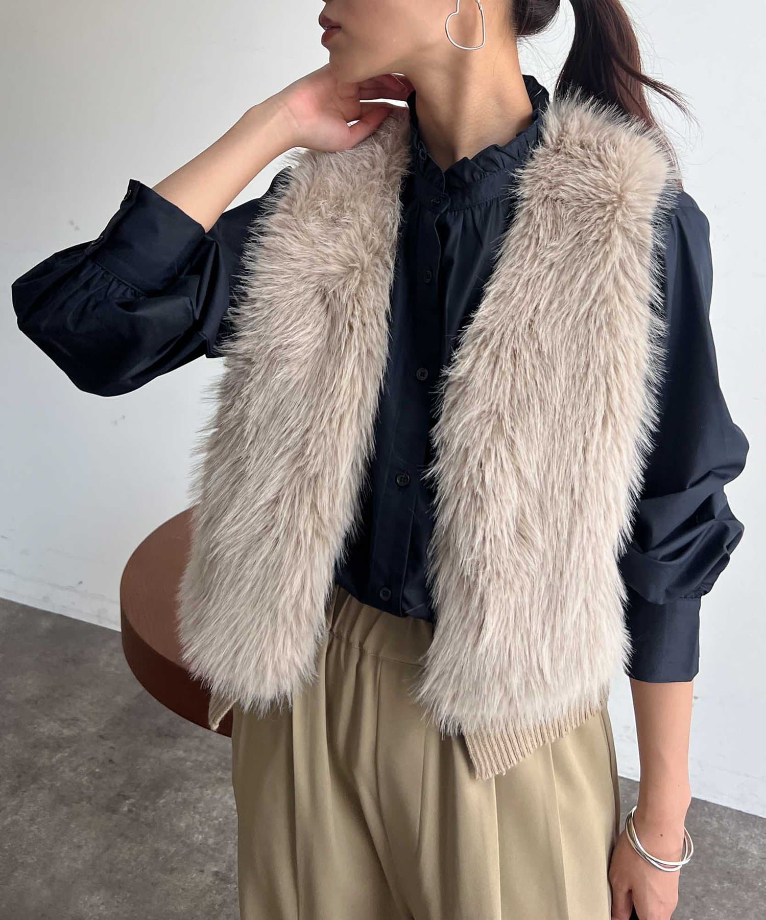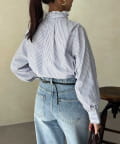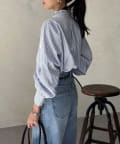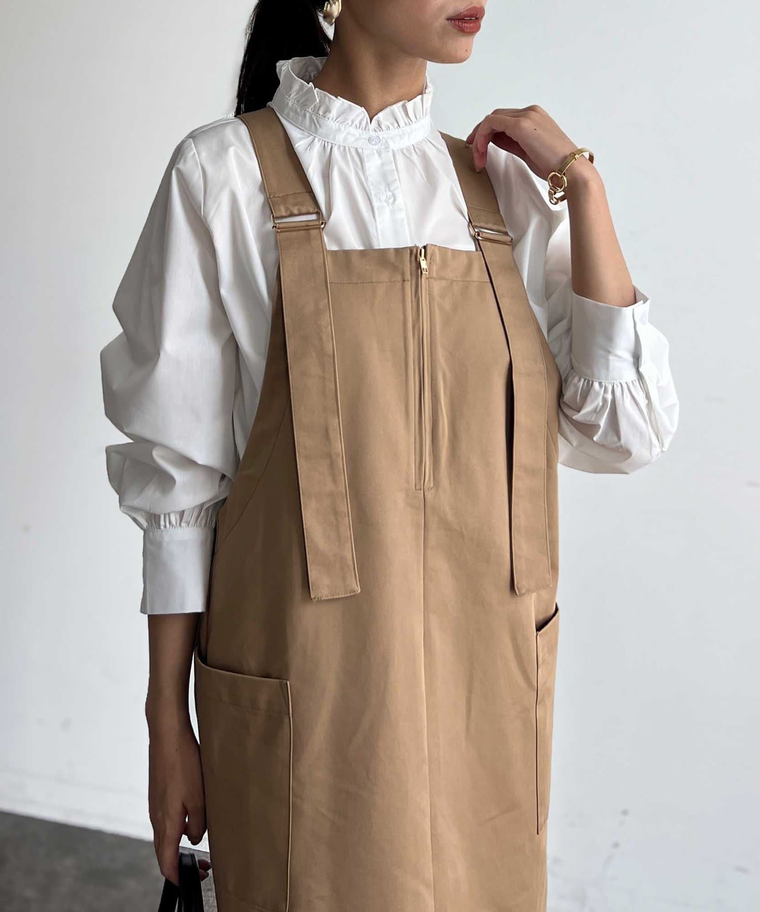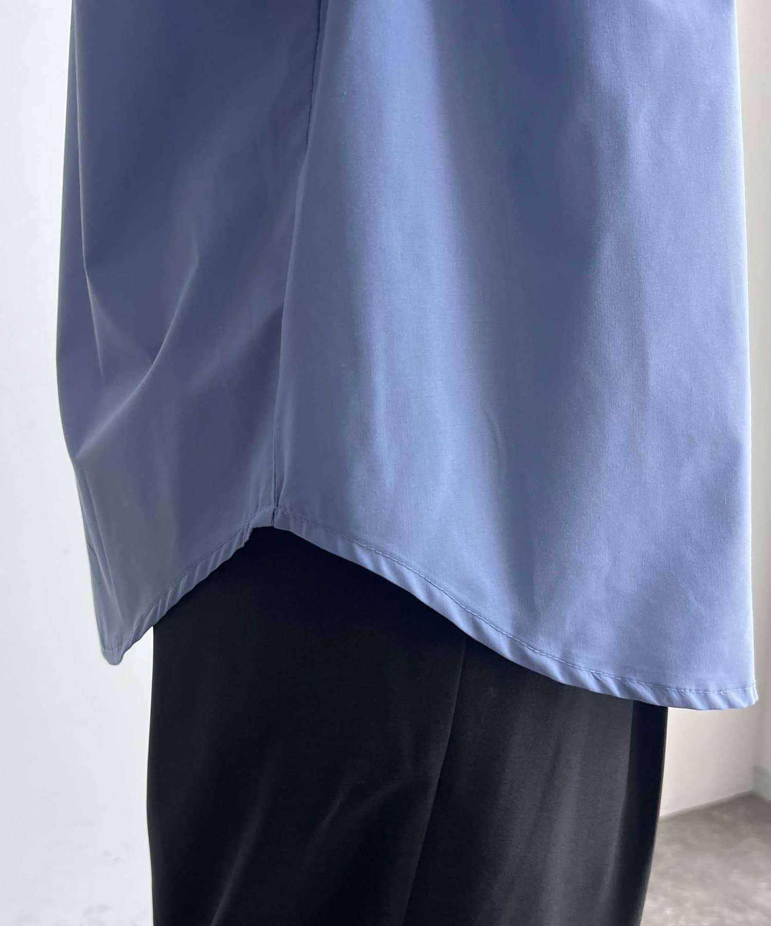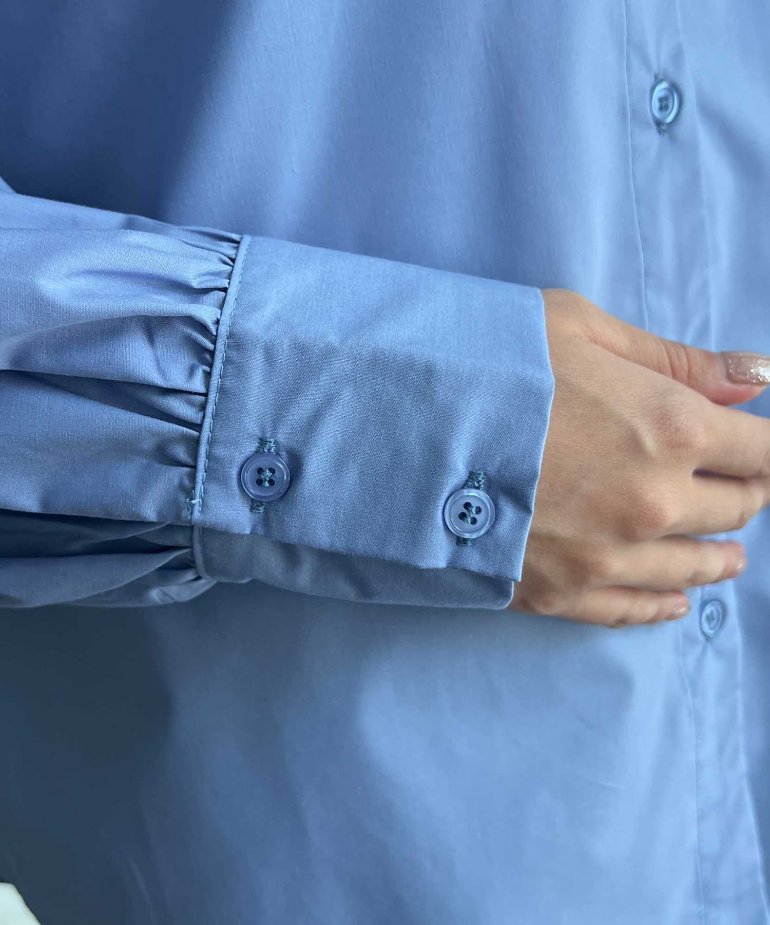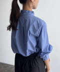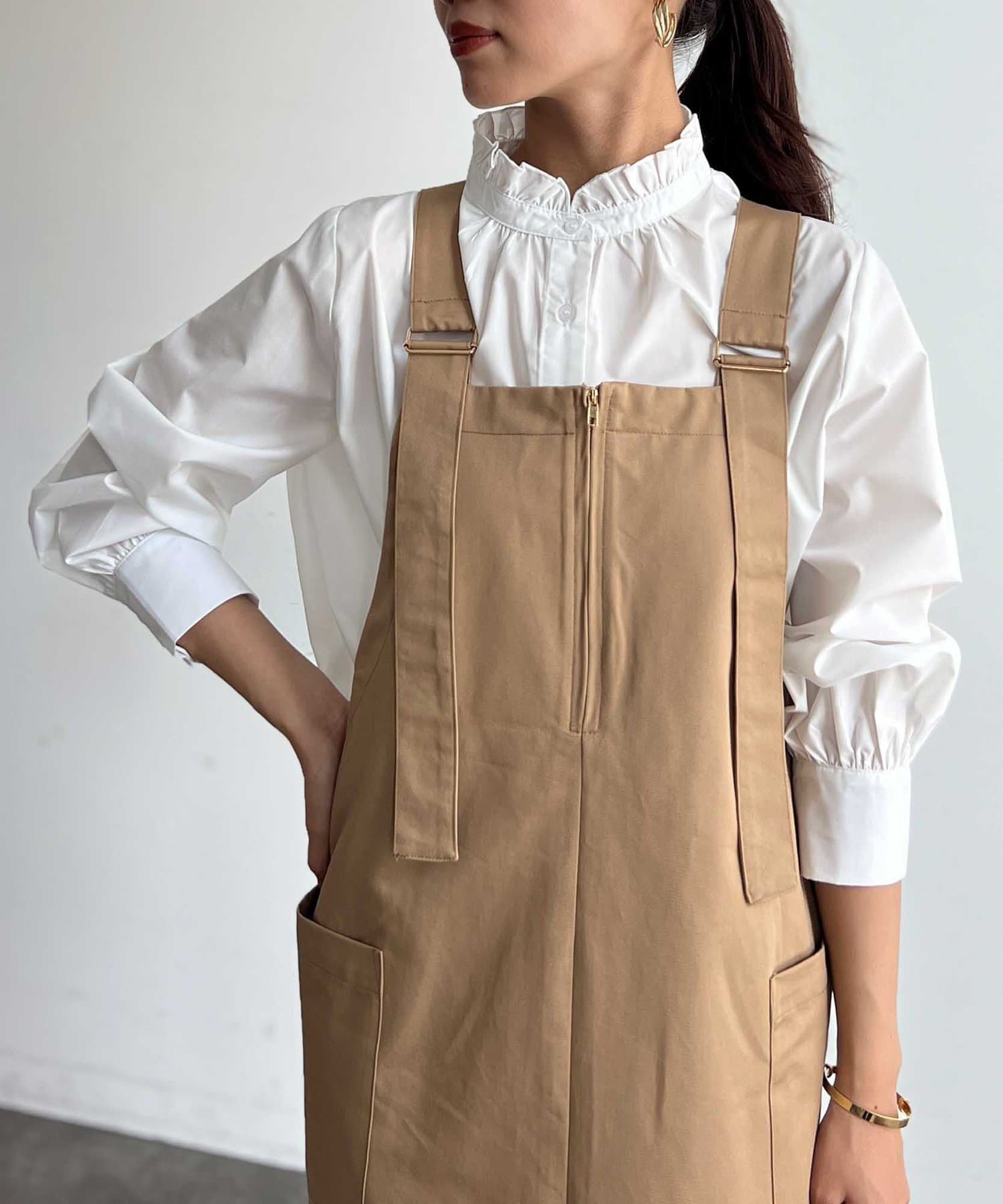 さりげないネックフリルがコーディネートのアクセントになるシャツ。