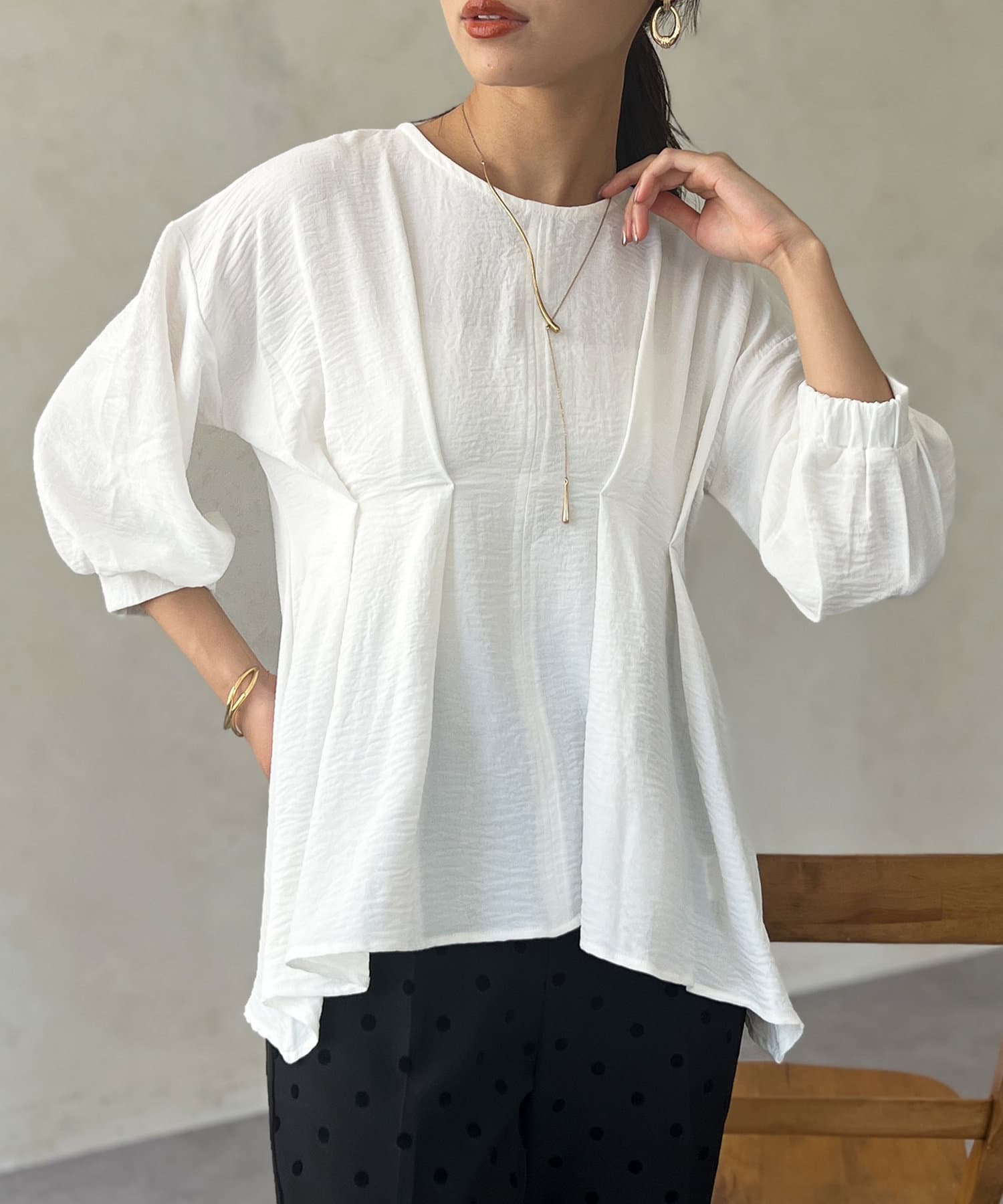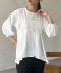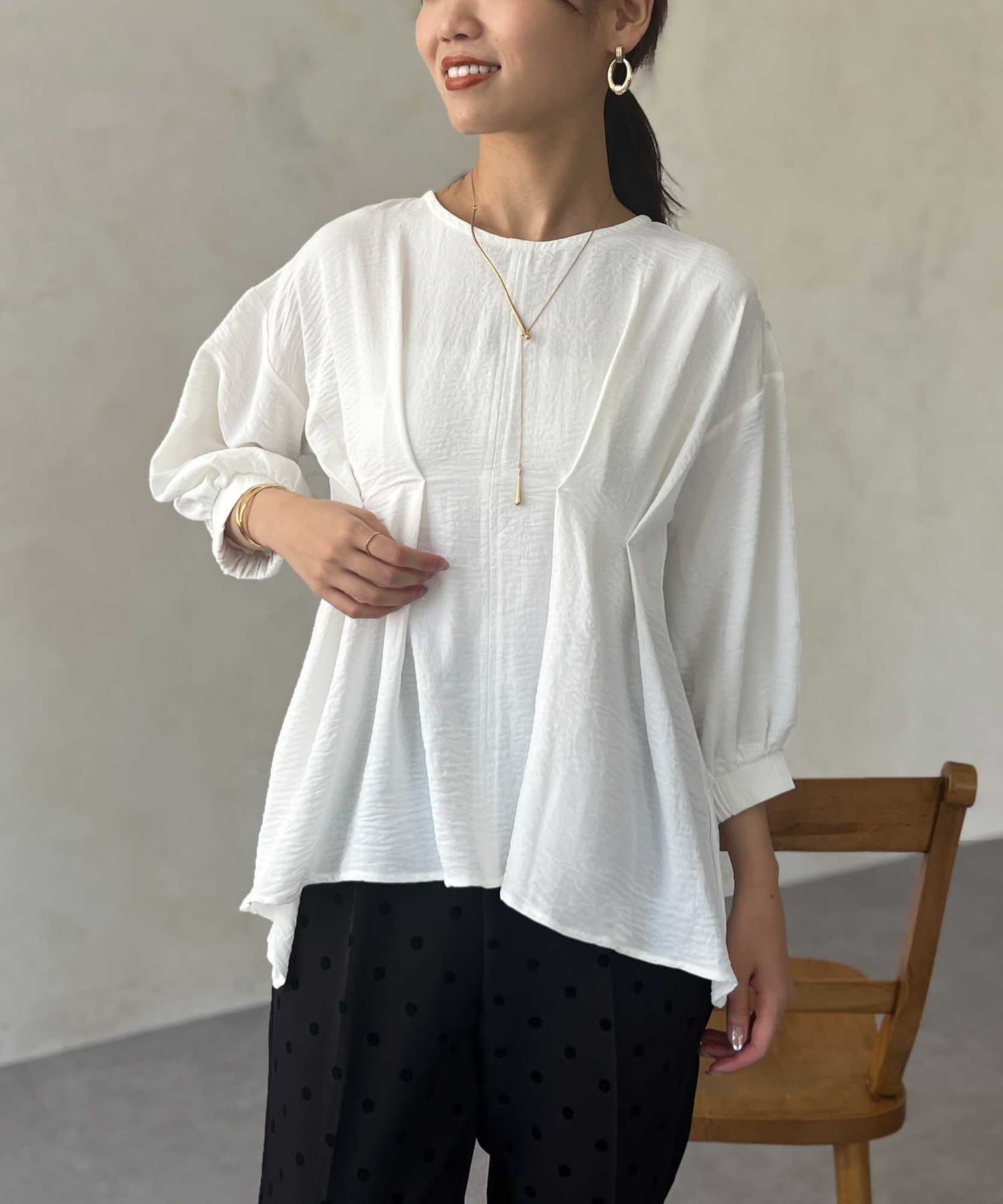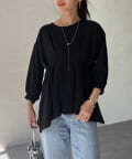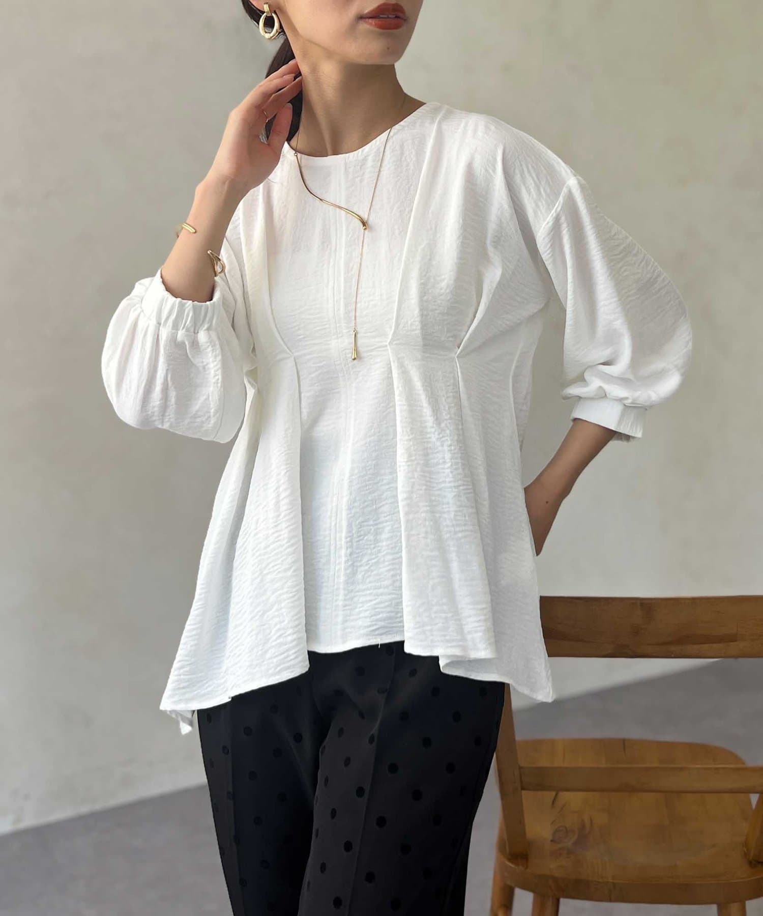 ウエストにタックが施された大人可愛い印象のペプラムブラウス。