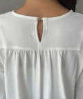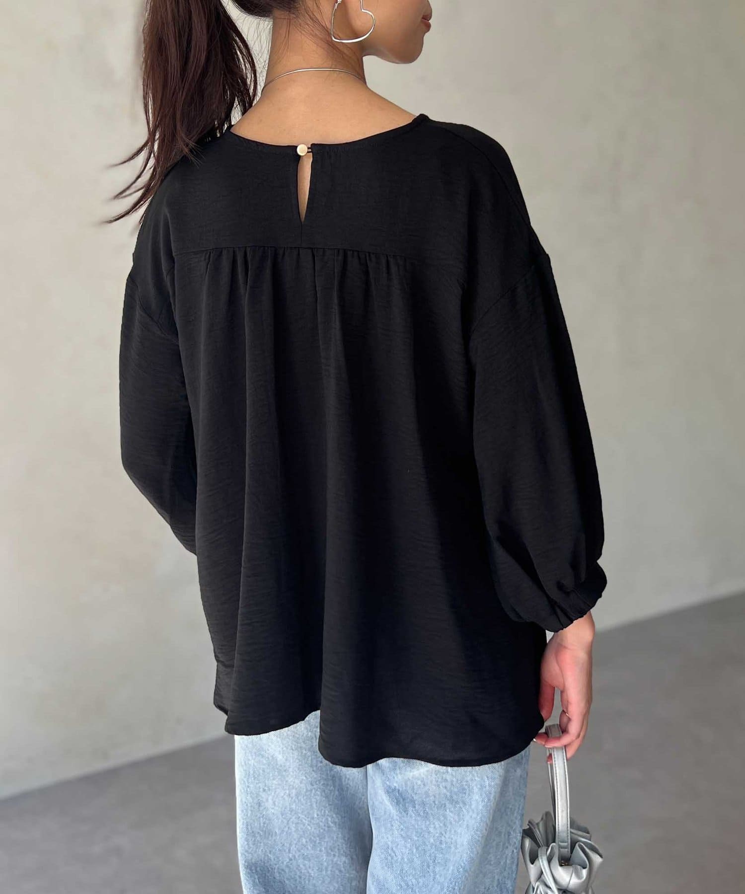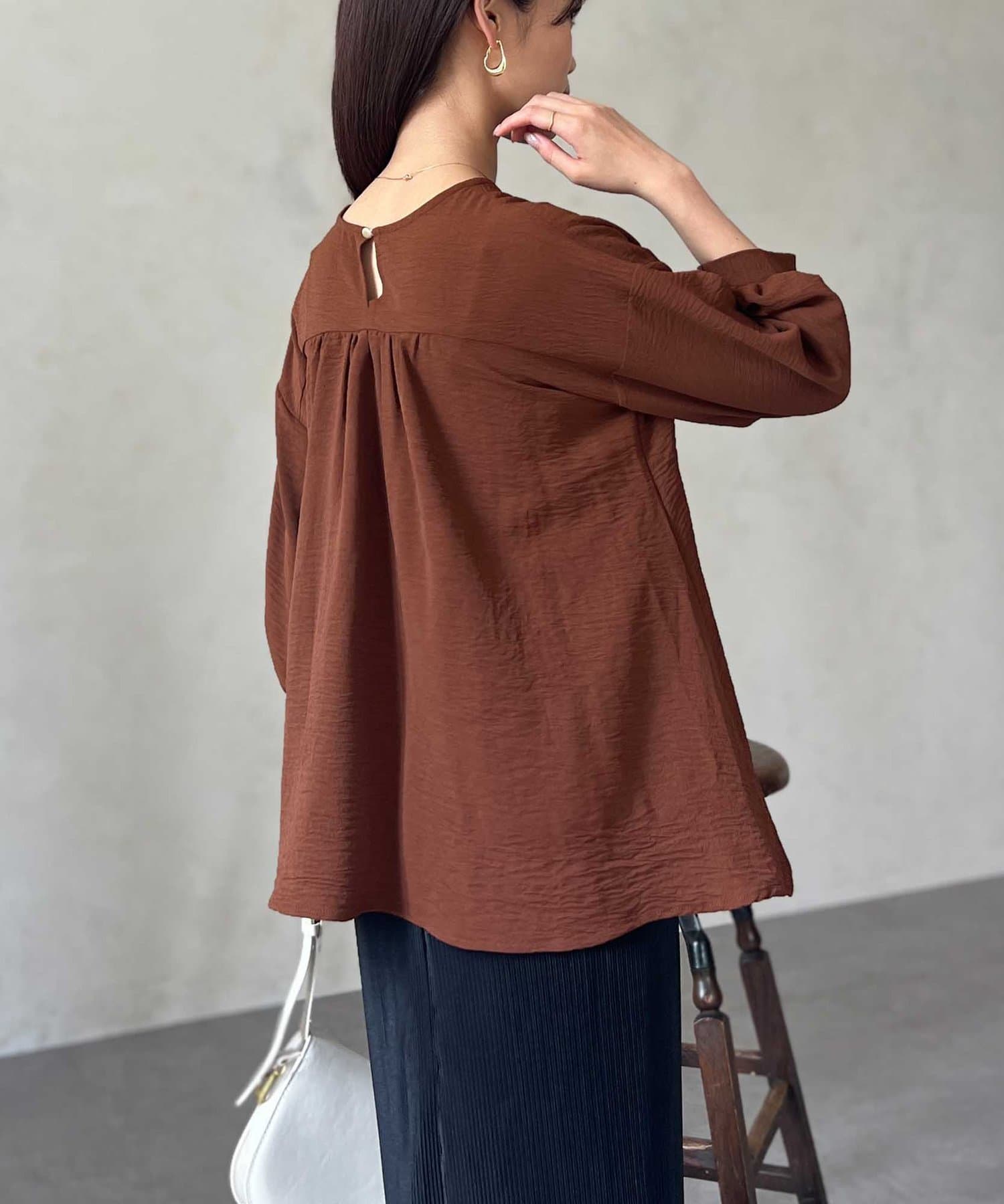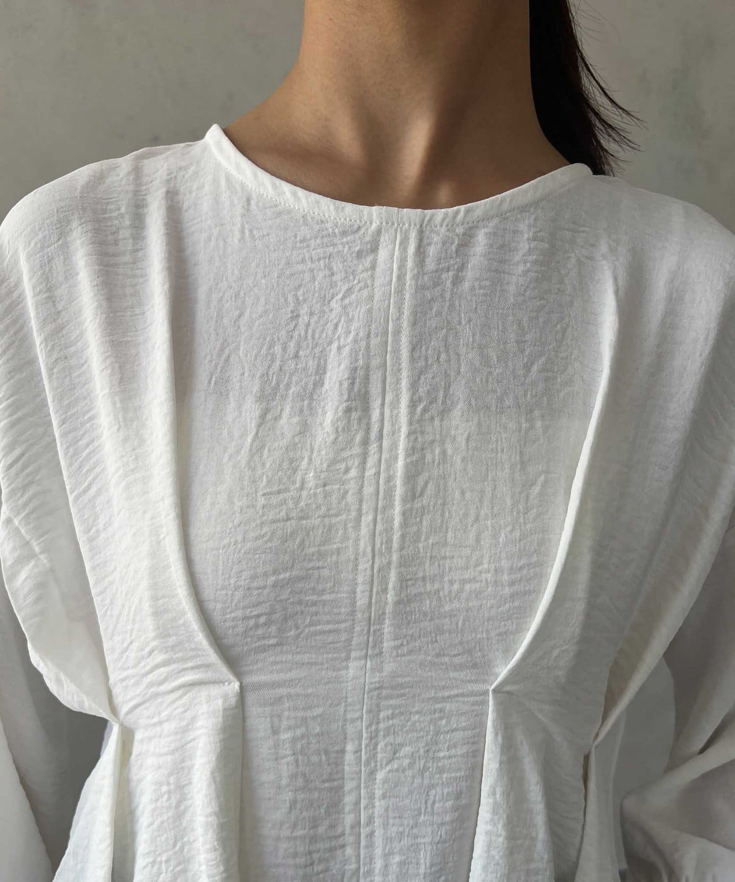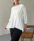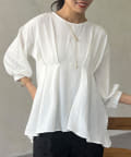 ウエストにタックが施された大人可愛い印象のペプラムブラウス。