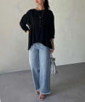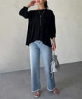 デニムやテーパードパンツなどスッキリとしたシルエットのボトムスと