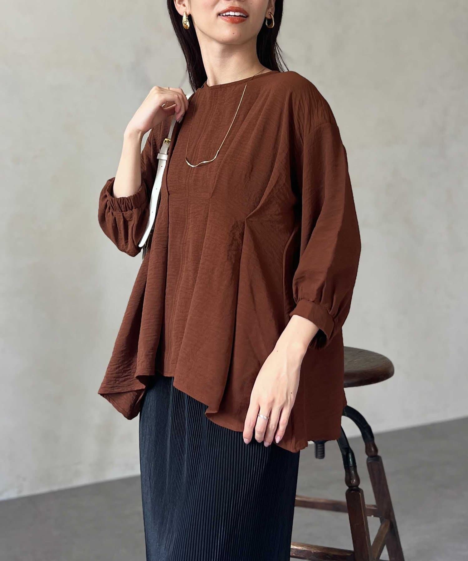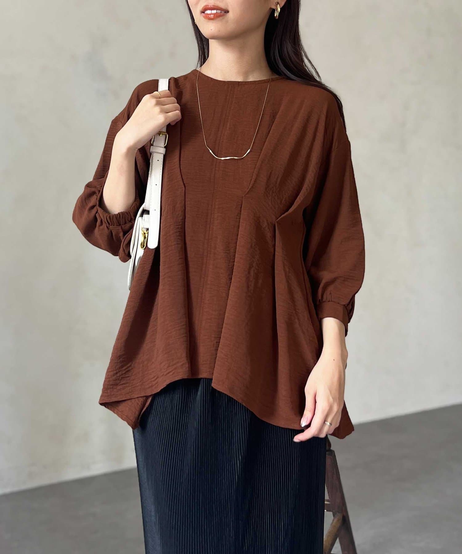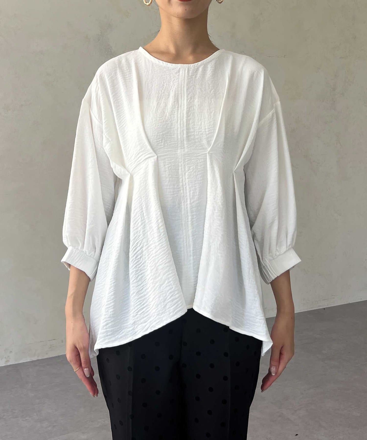 TOP > Chez toi > レディース > トップス > シャツ/ブラウス(プルオーバー) > 【マイナス3キロ見え】7分袖ウエストタックペプラムブラウス