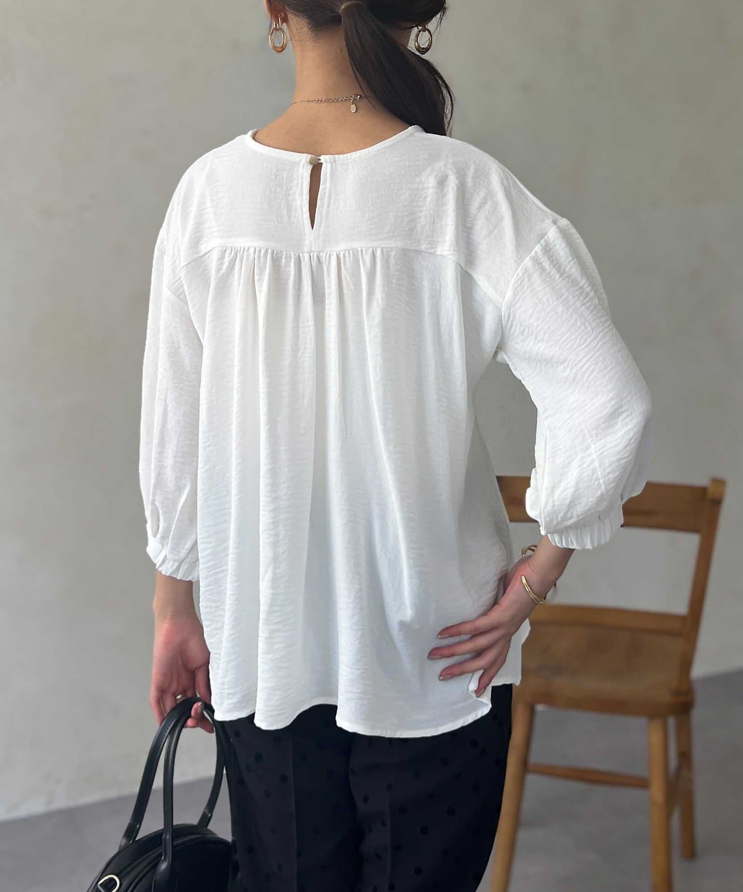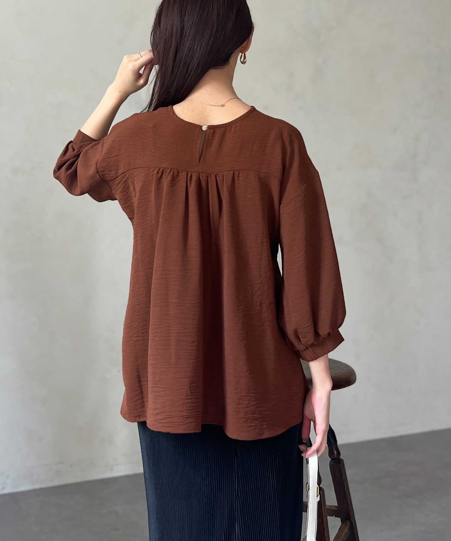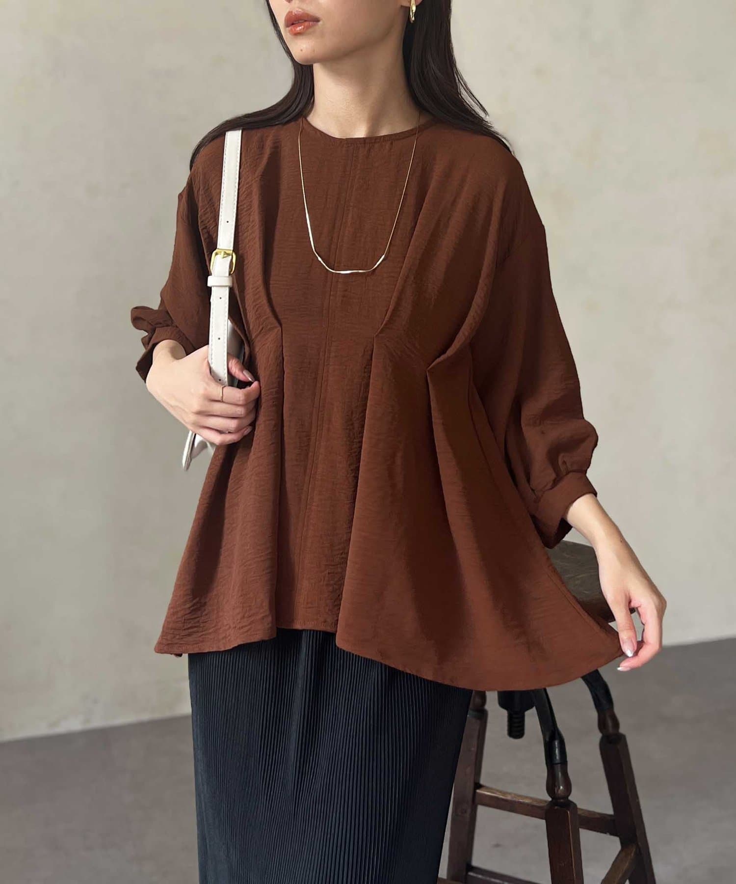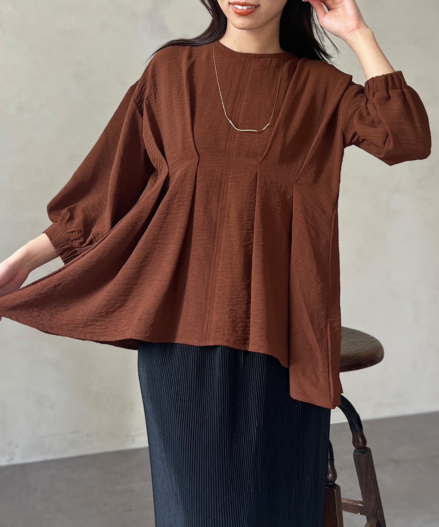 TOP > Chez toi > レディース > トップス > シャツ/ブラウス(プルオーバー) > 【マイナス3キロ見え】7分袖ウエストタックペプラムブラウス