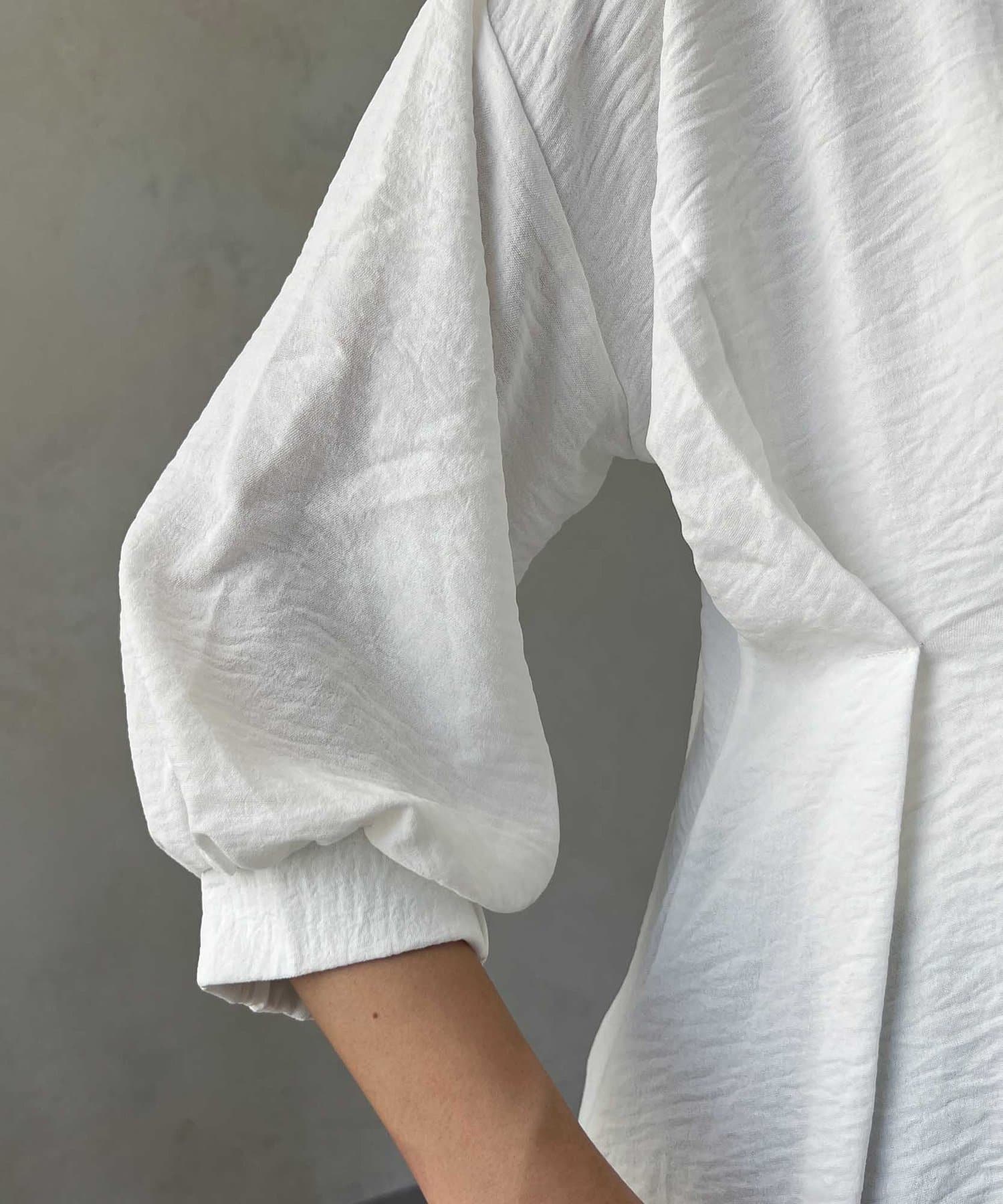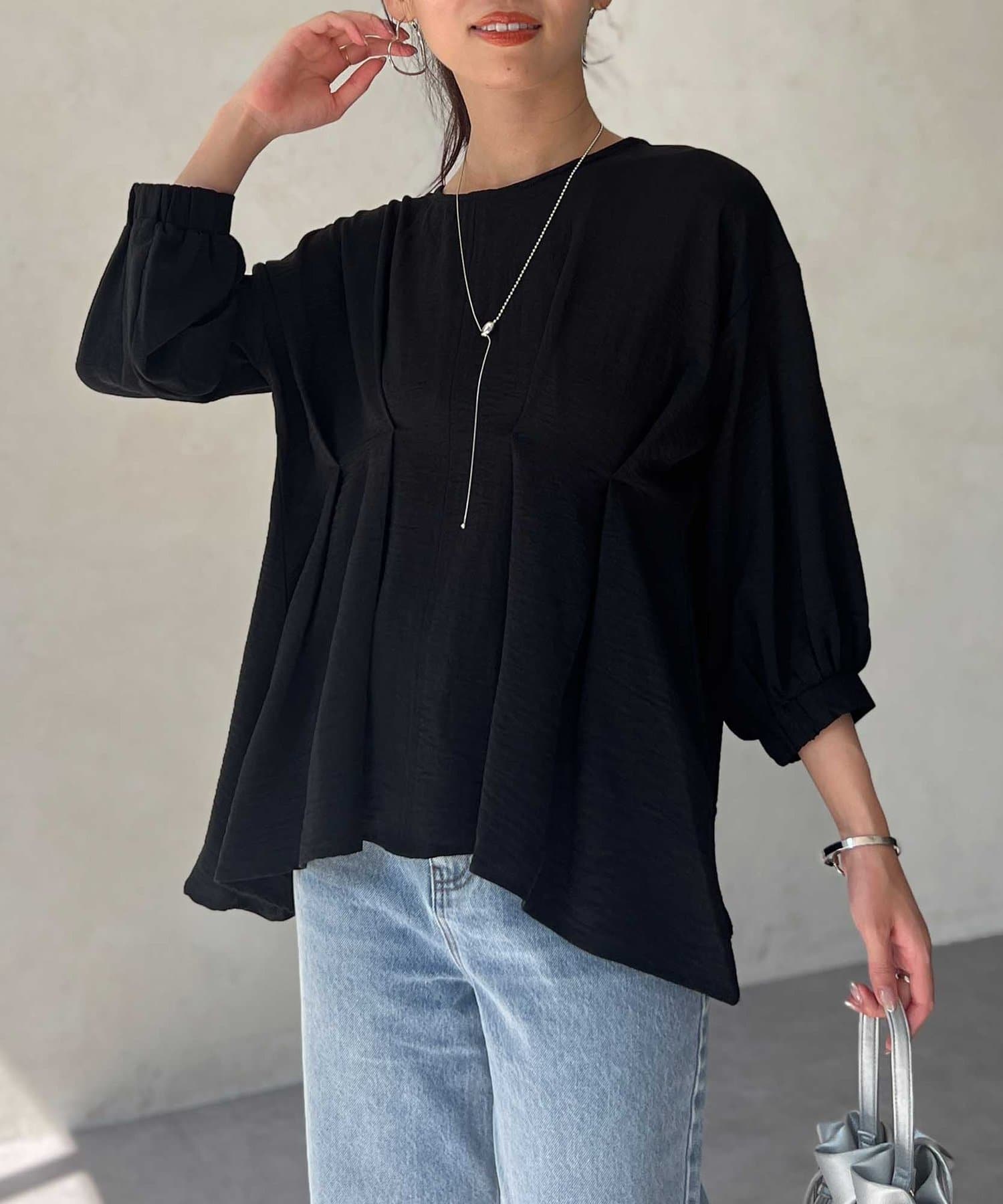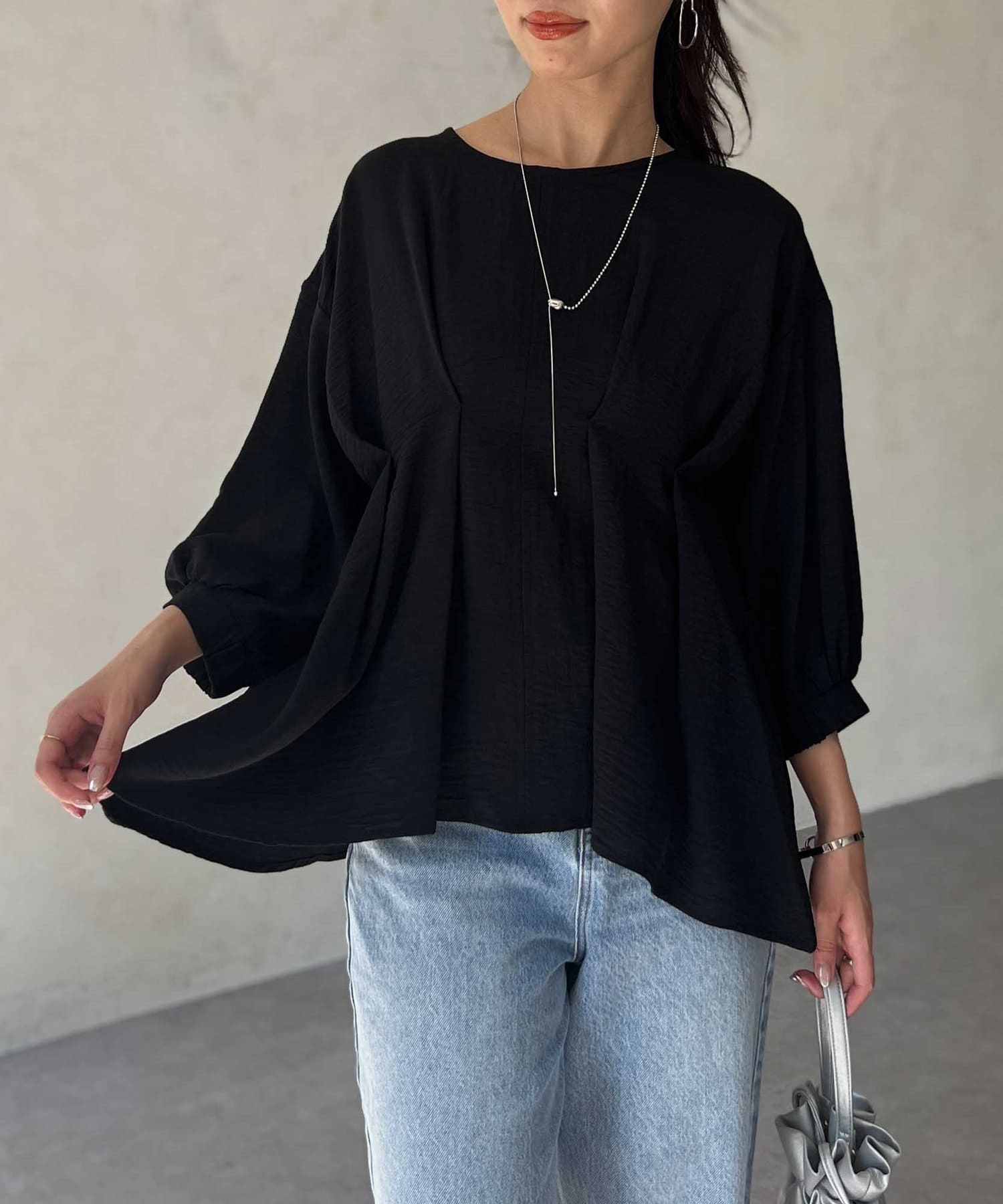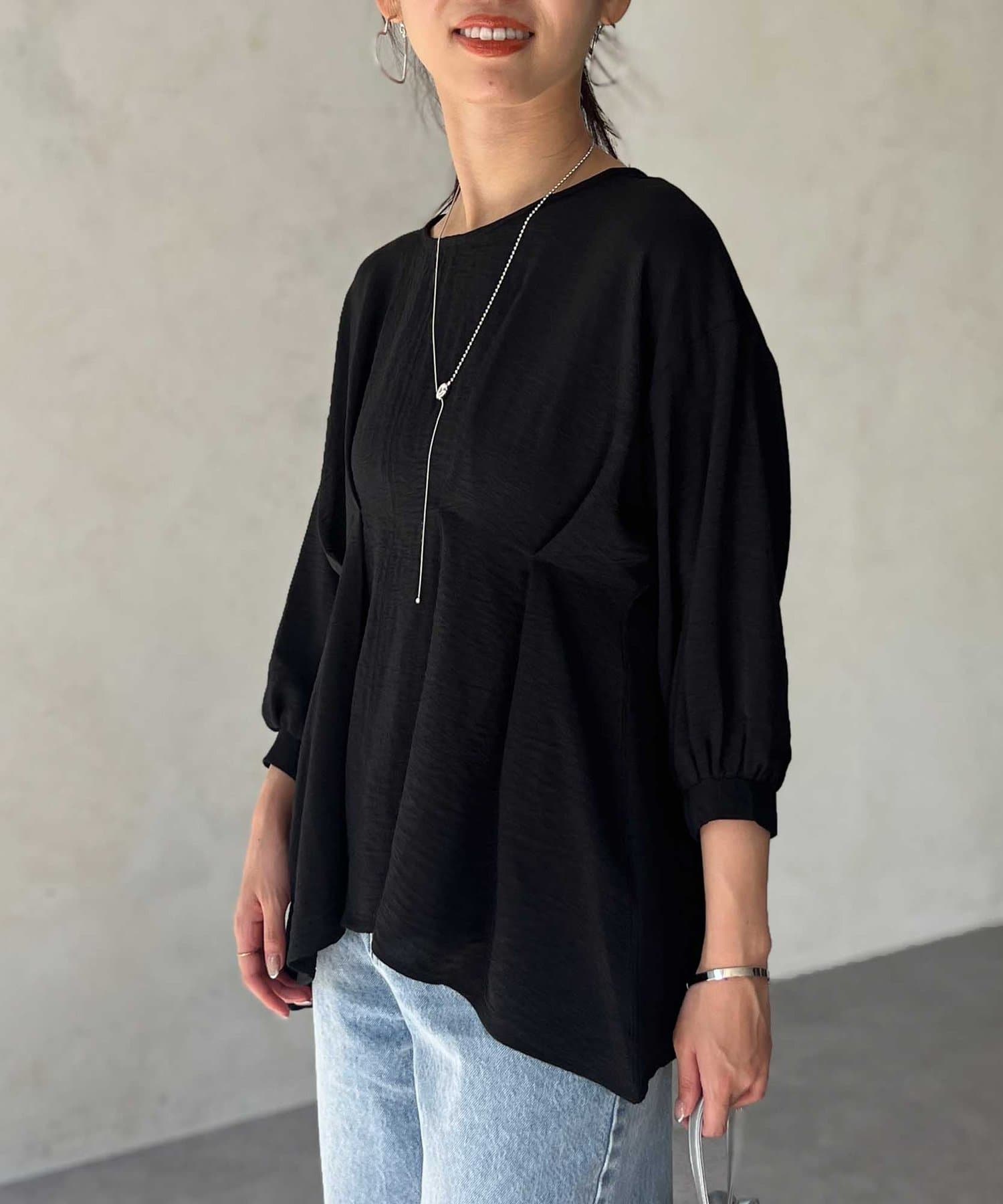 【マイナス3キロ見え】7分袖ウエストタックペプラムブラウス