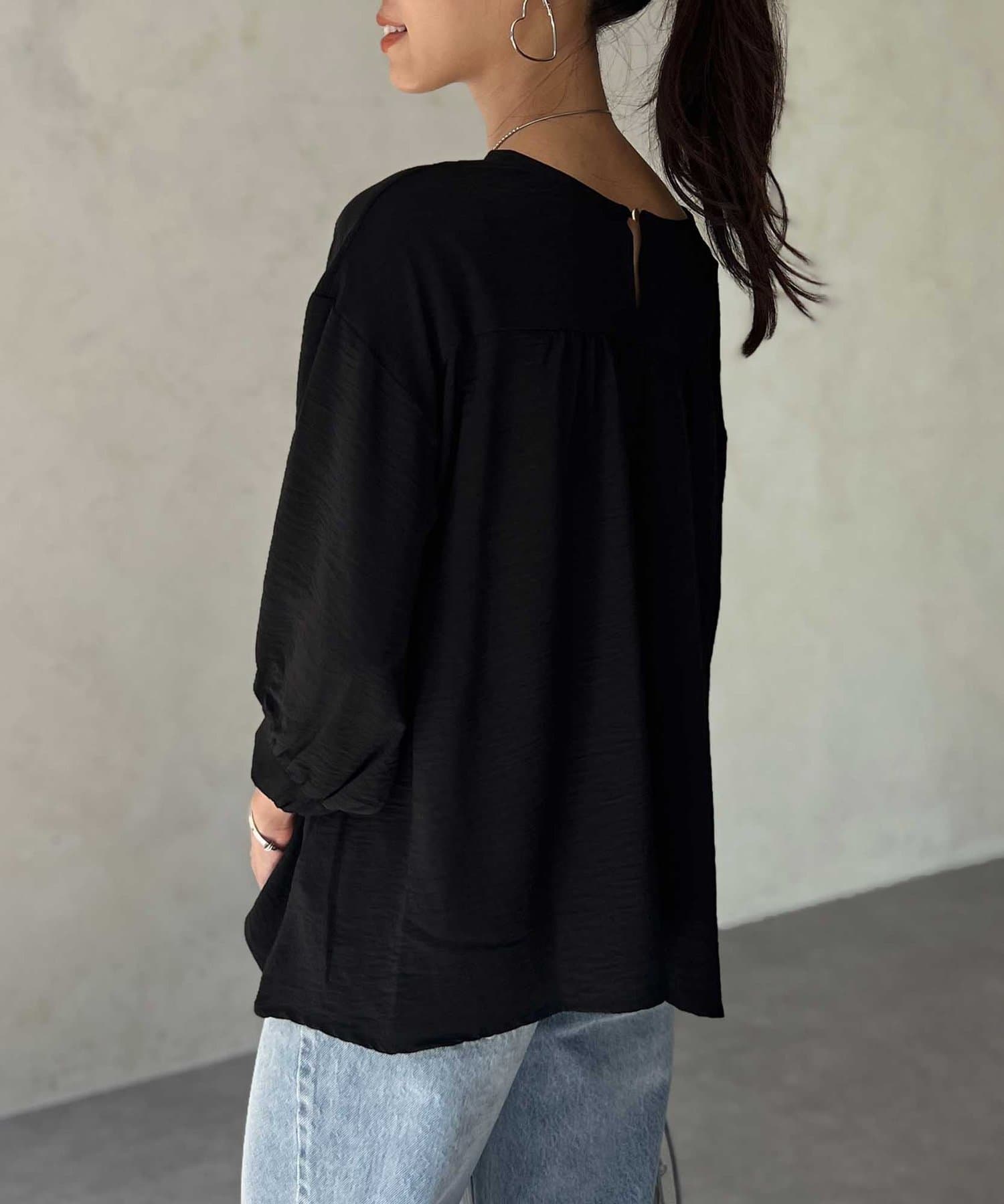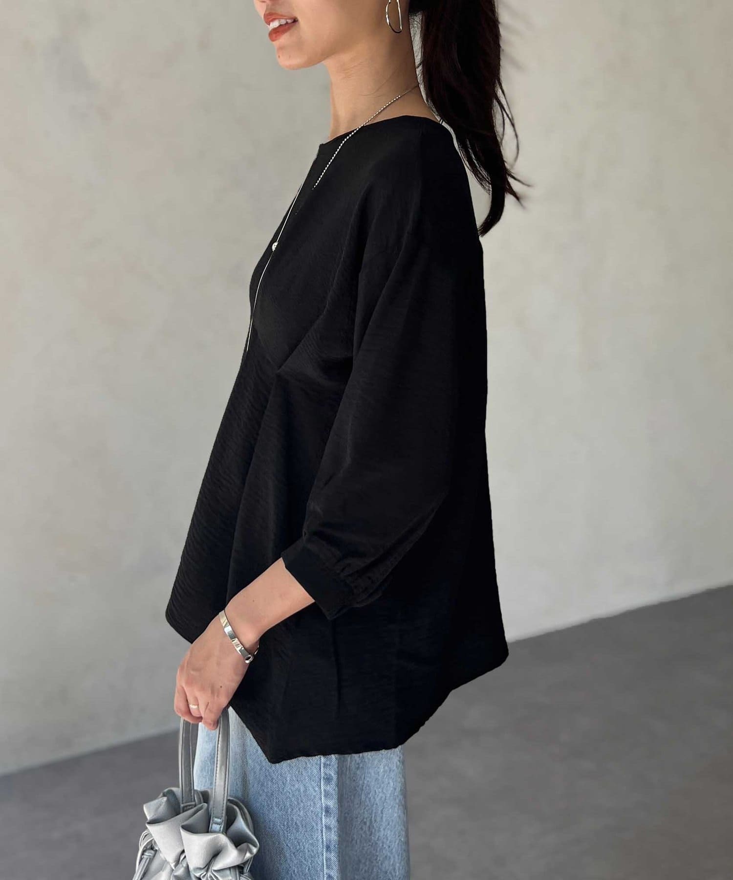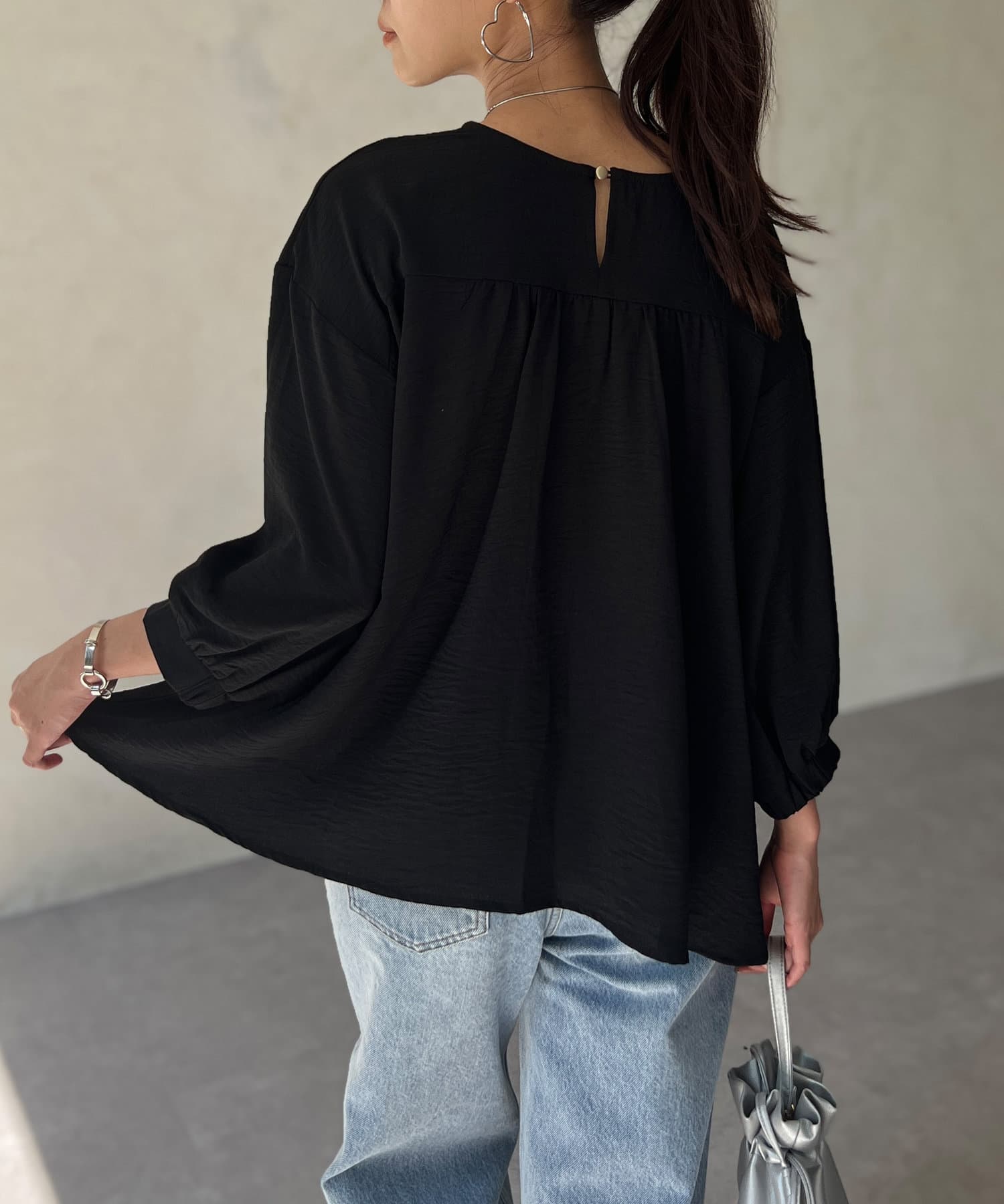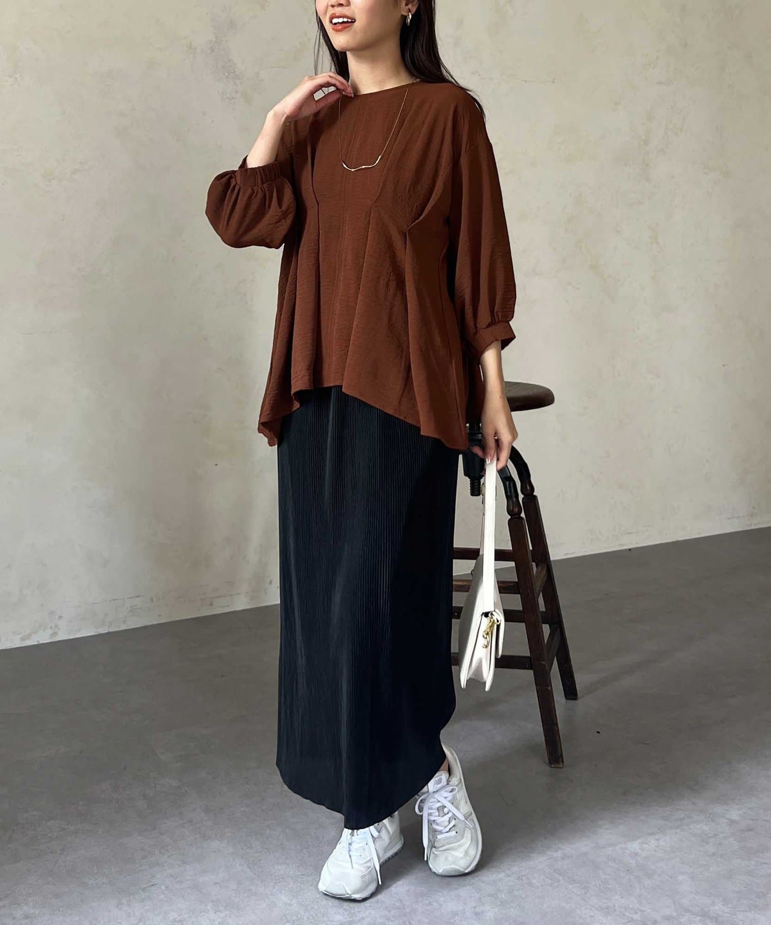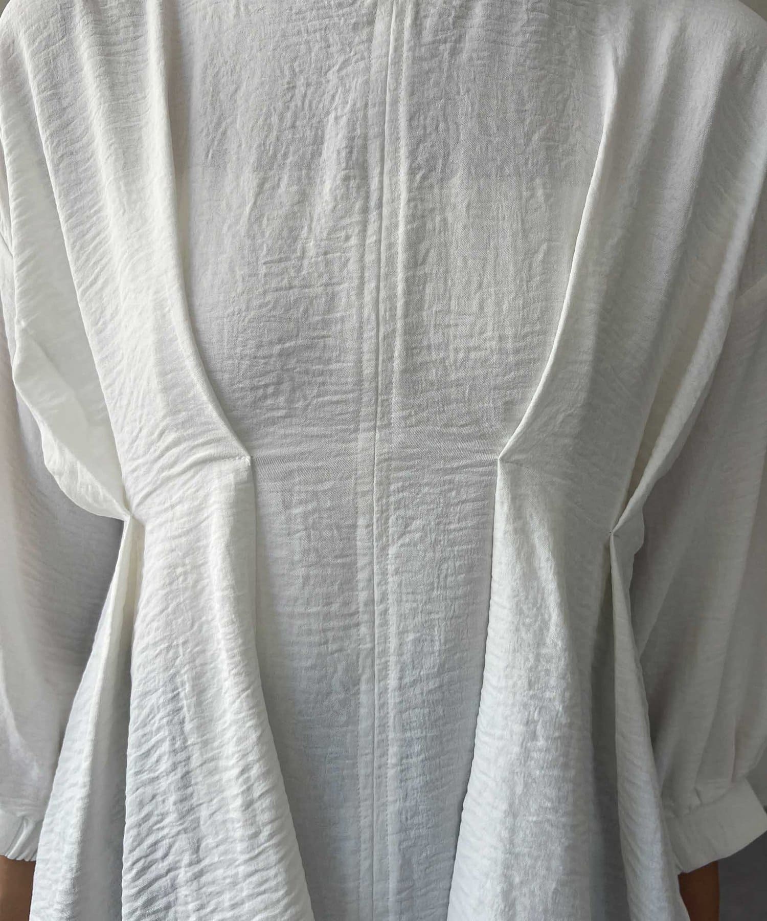 【マイナス3キロ見え】7分袖ウエストタックペプラムブラウス