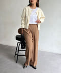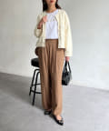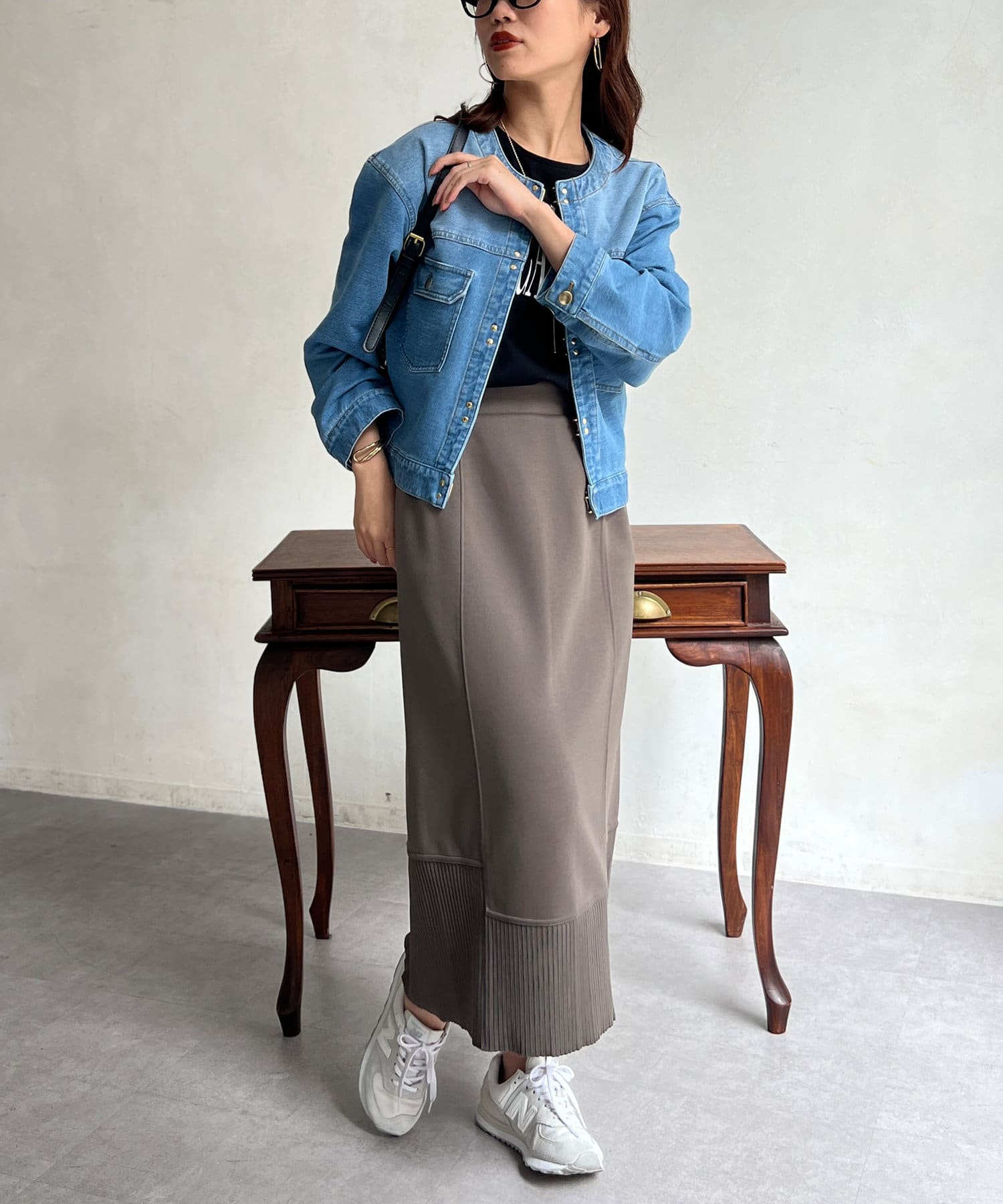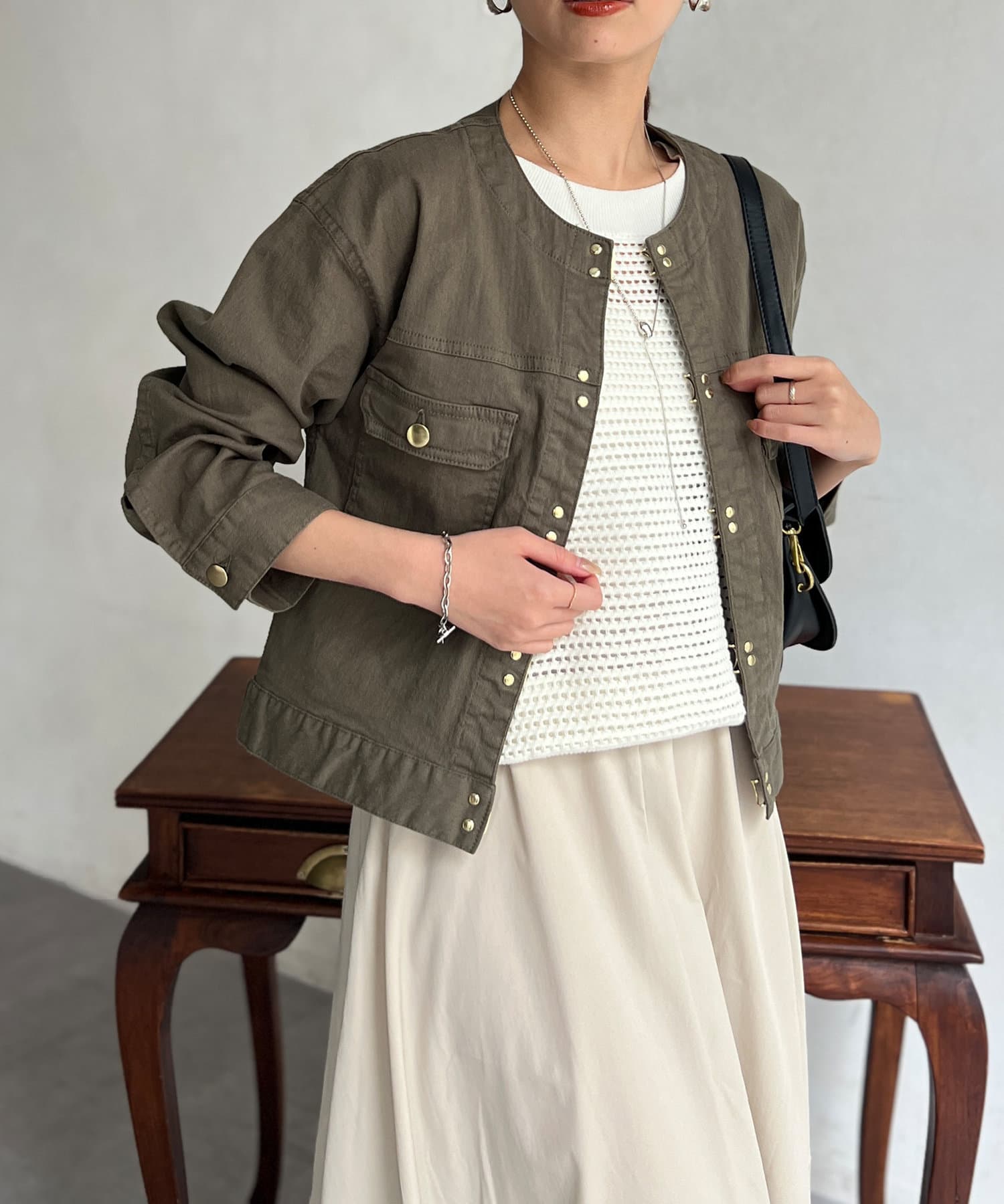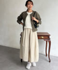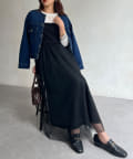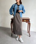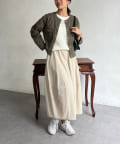 スカートやワンピースなどフェミニンなアイテムとも好相性。