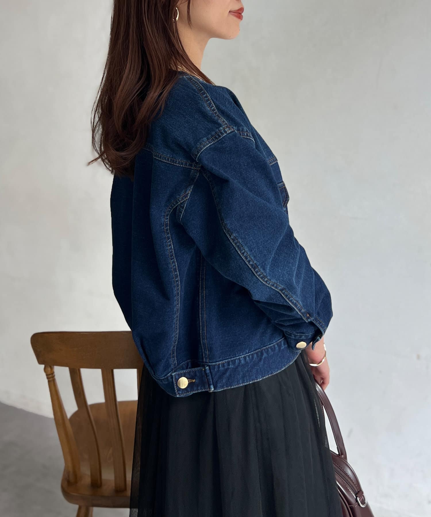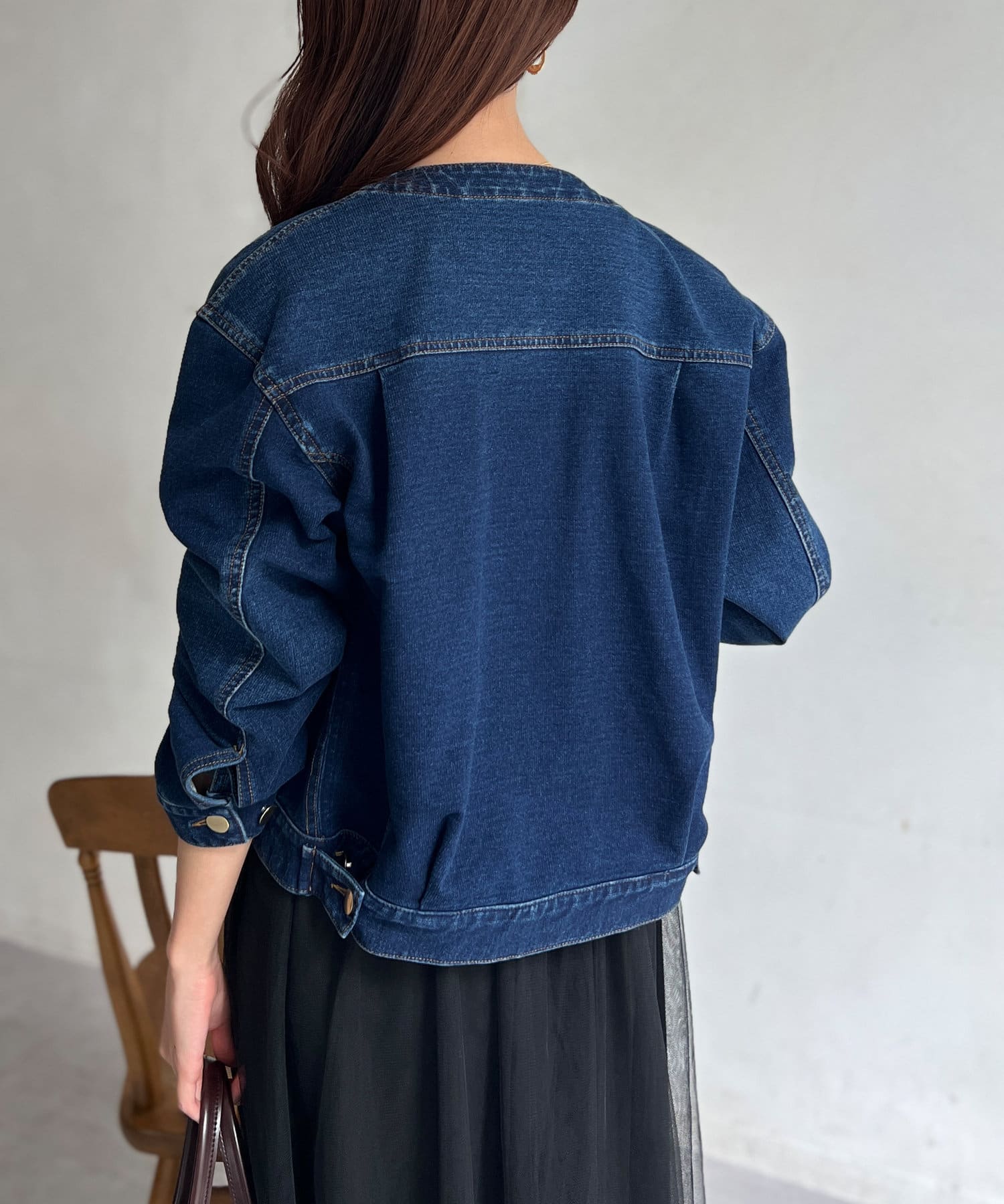 伸縮性のあるデニム生地でストレスフリー羽織り心地。