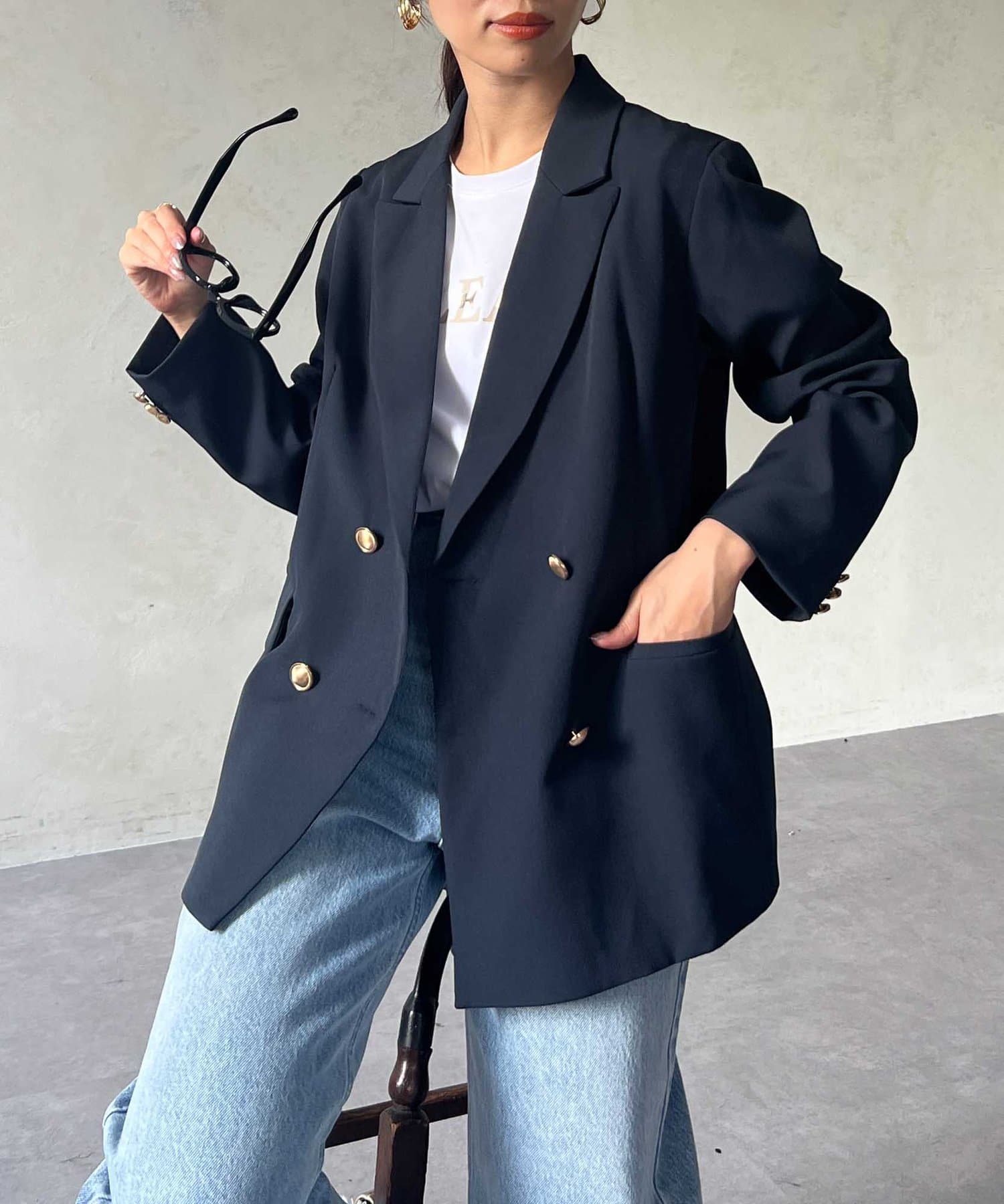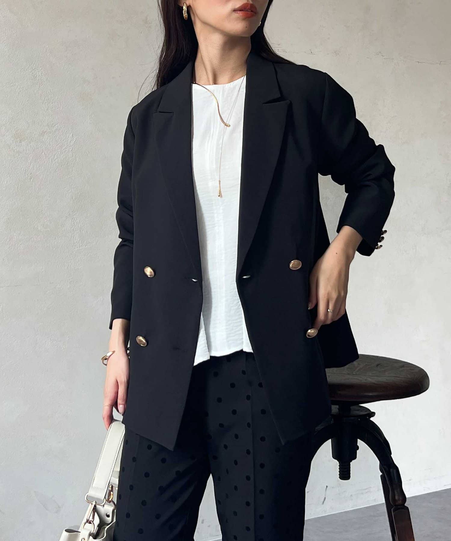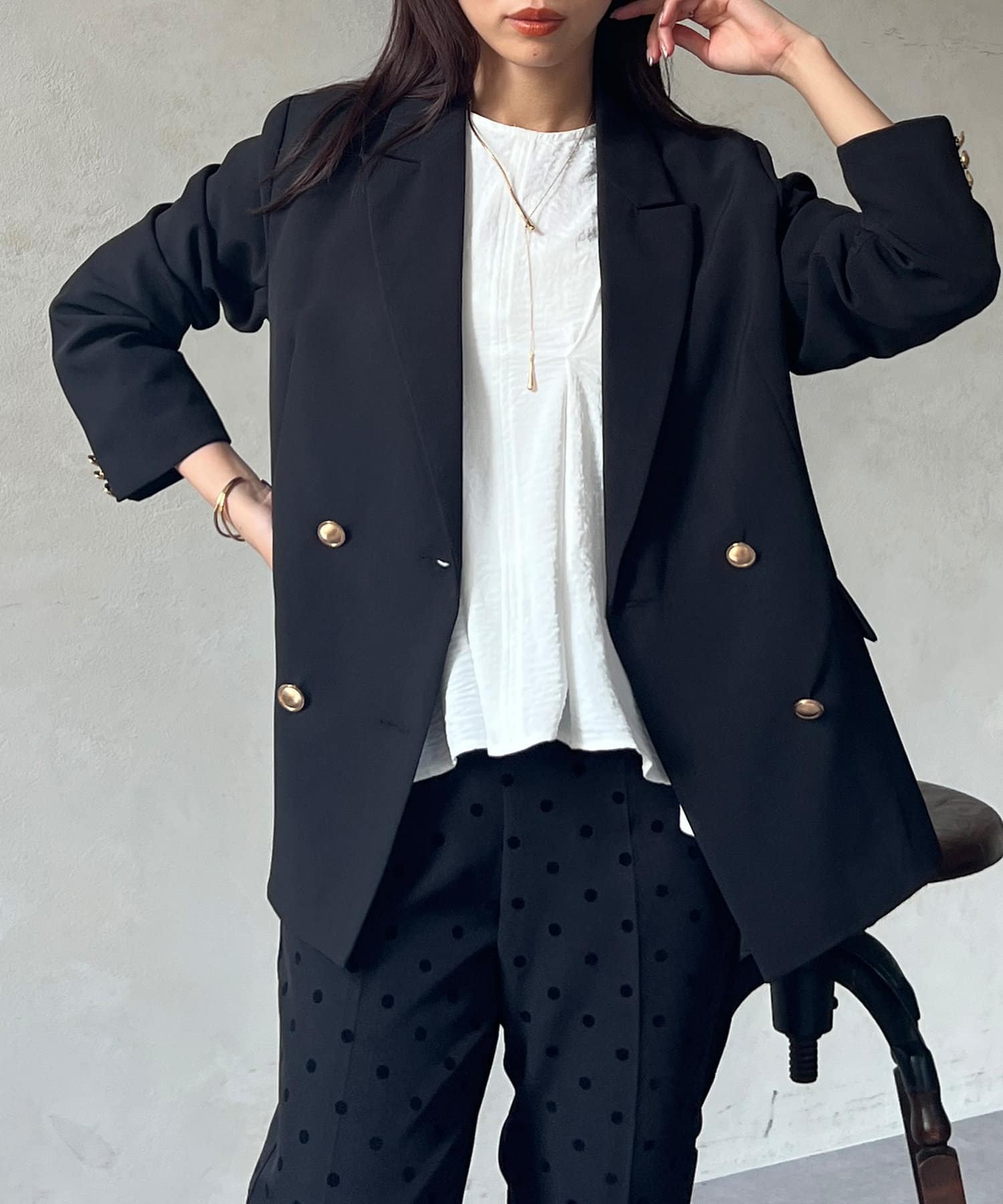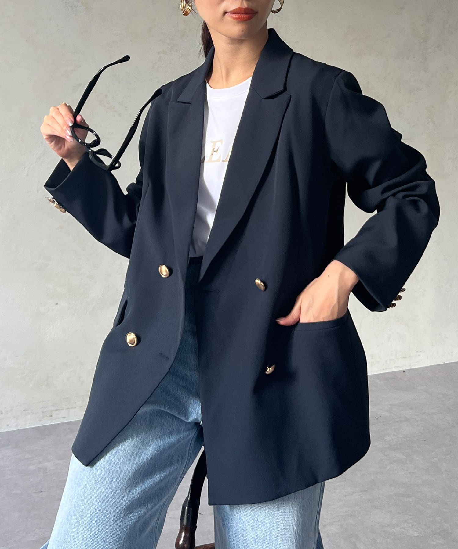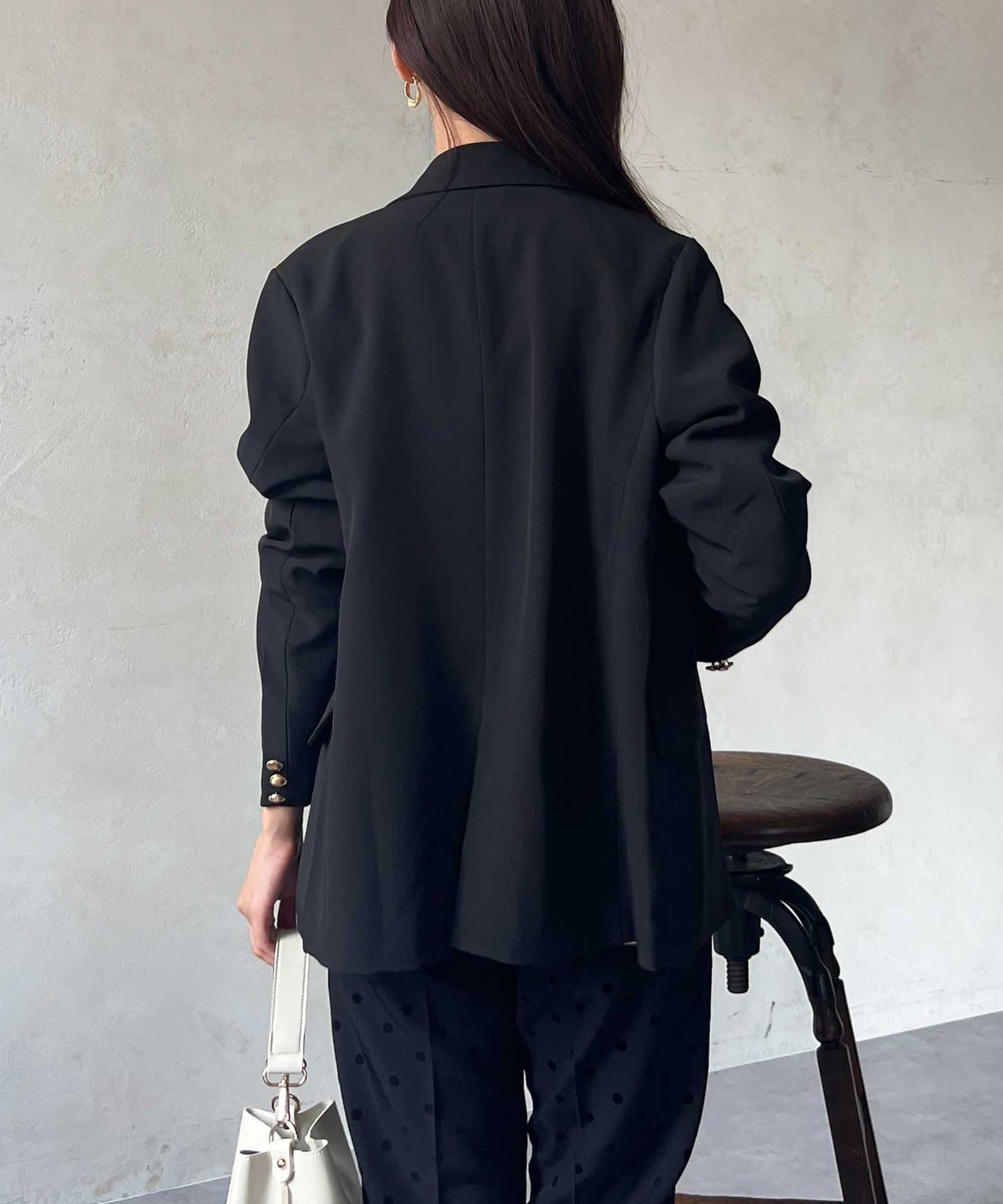 ゴールドボタンが女性らしさをプラスしたテーラードジャケット。