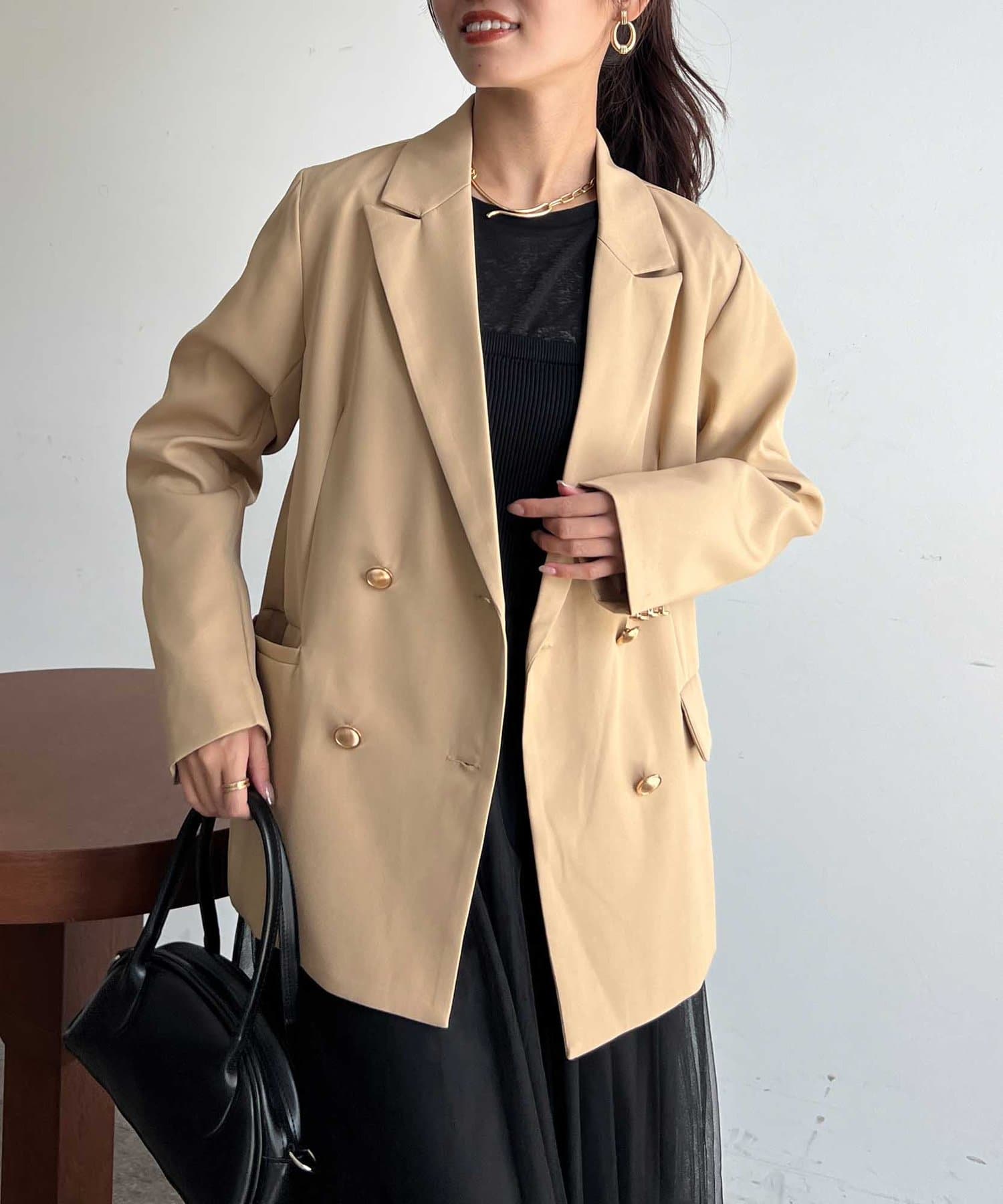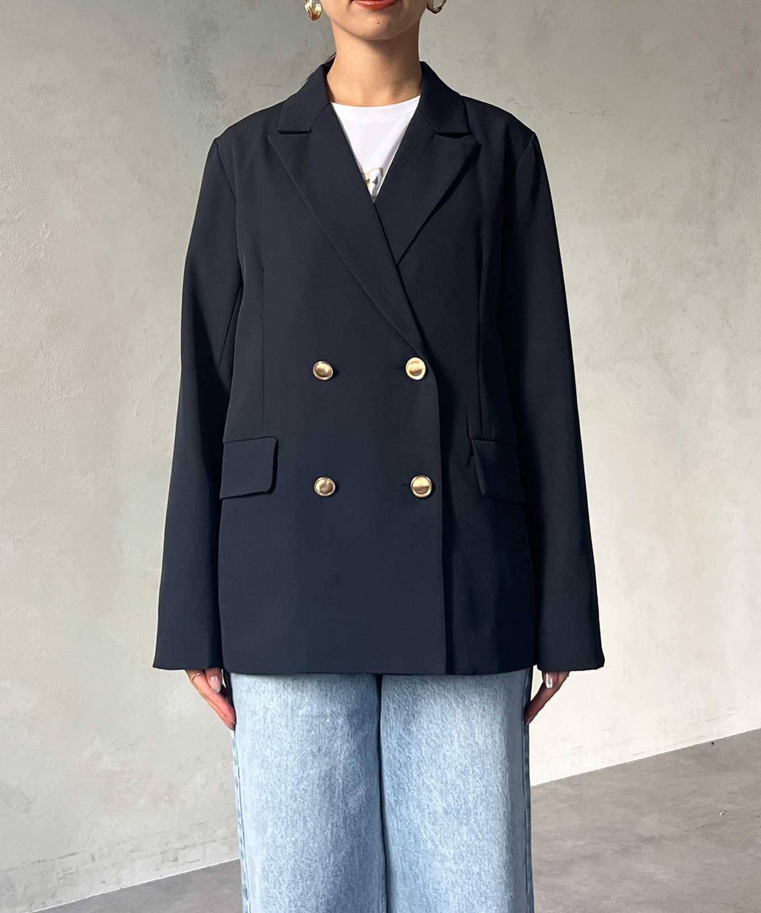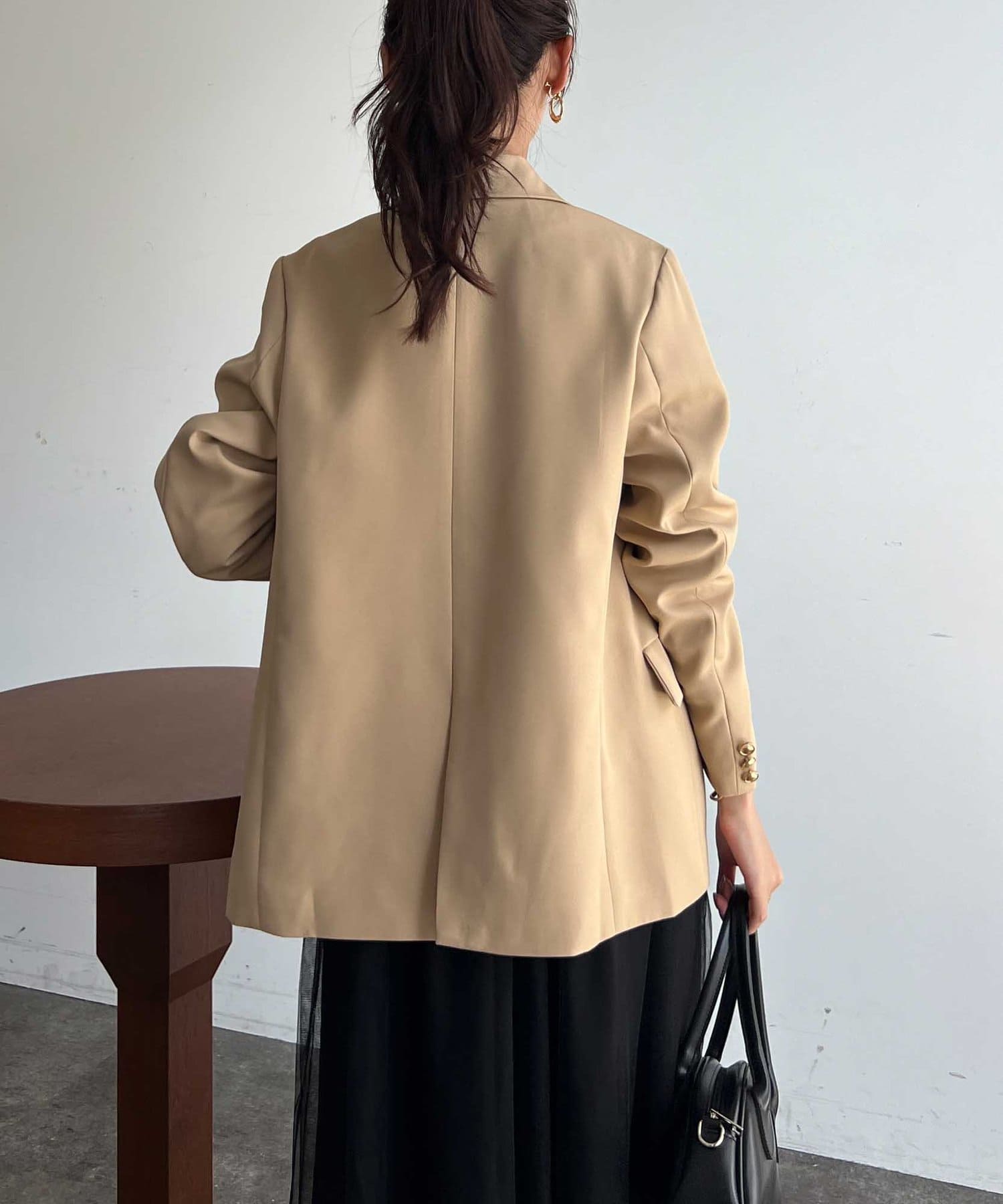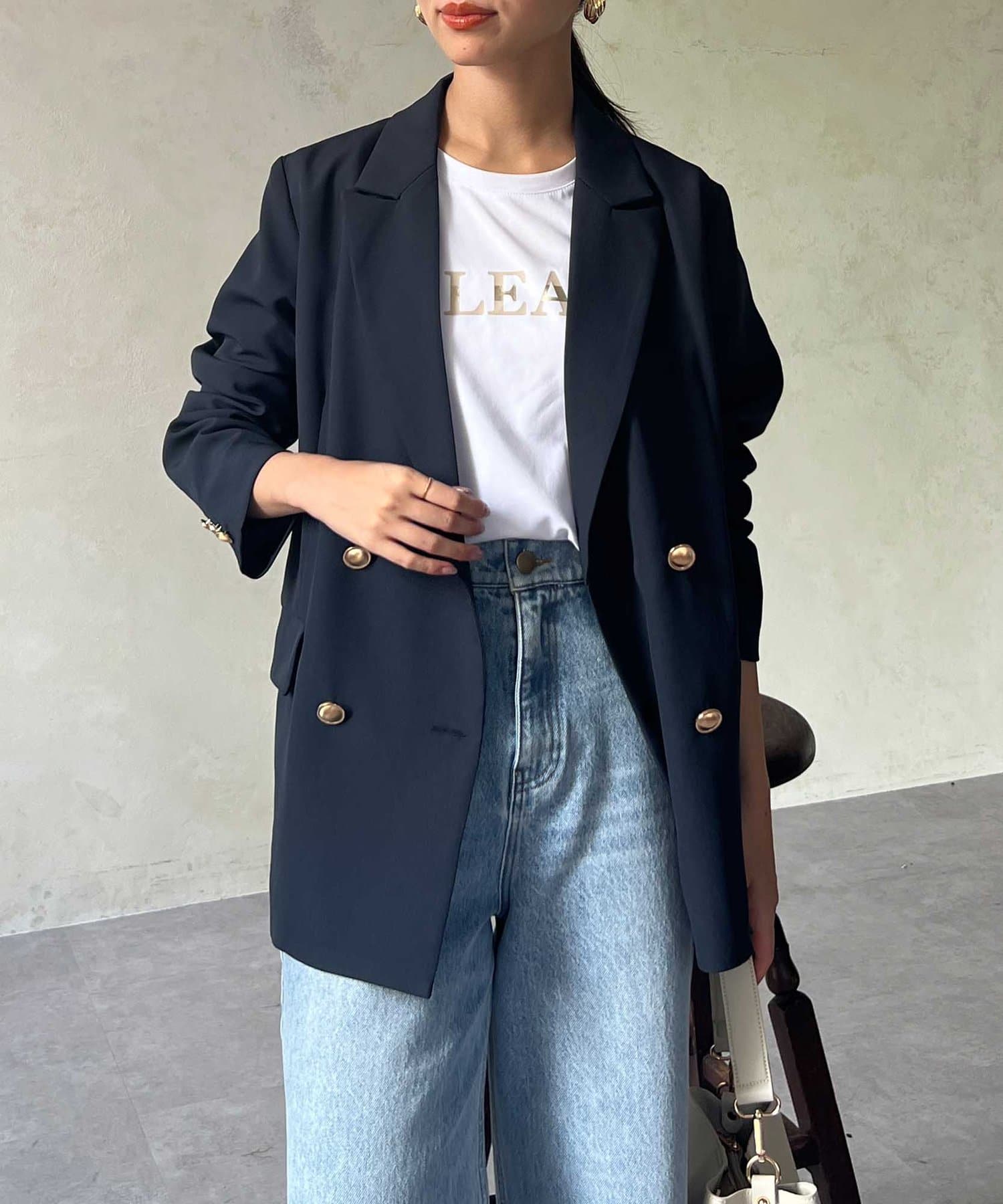 ゴールドボタンが女性らしさをプラスしたテーラードジャケット。