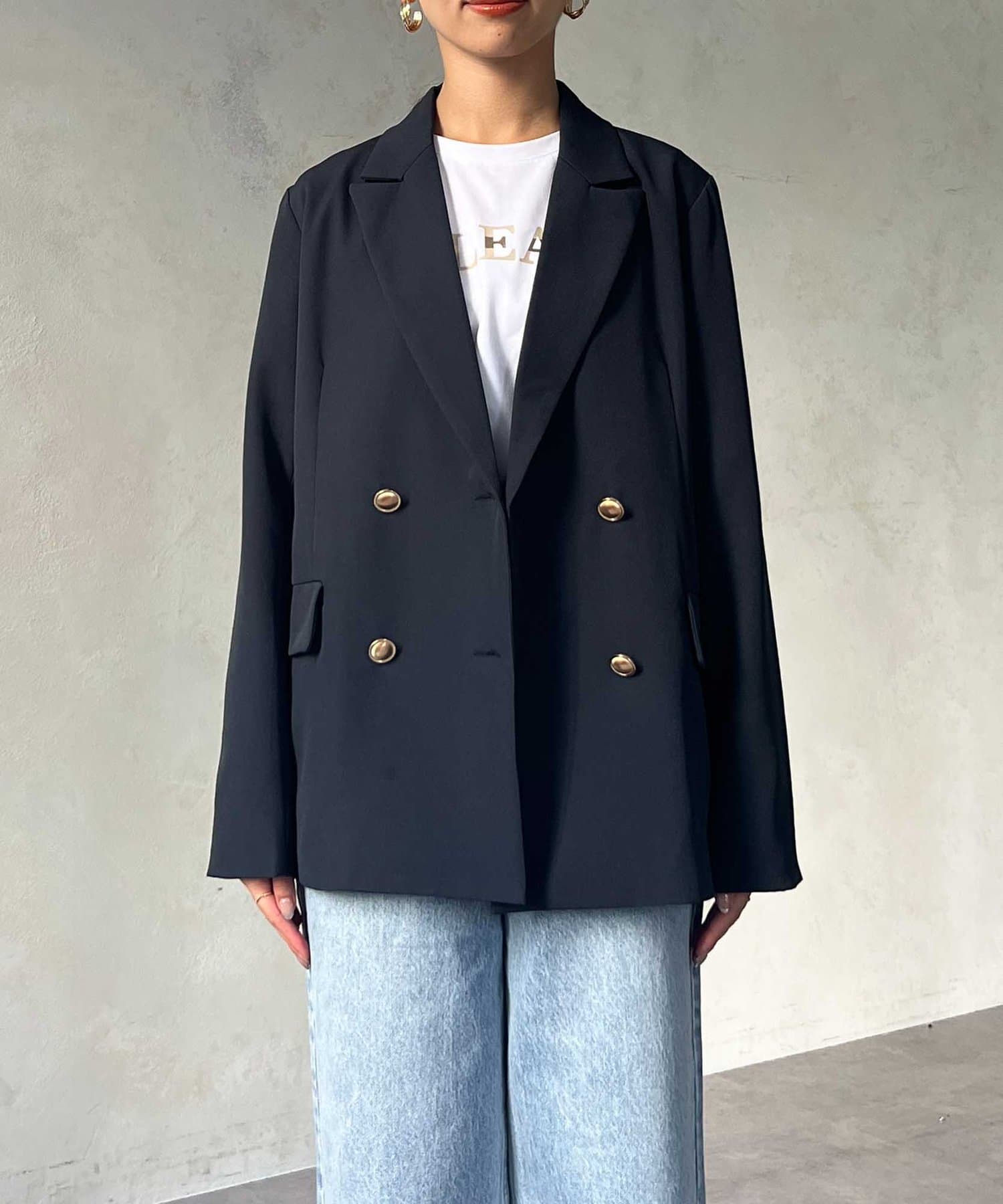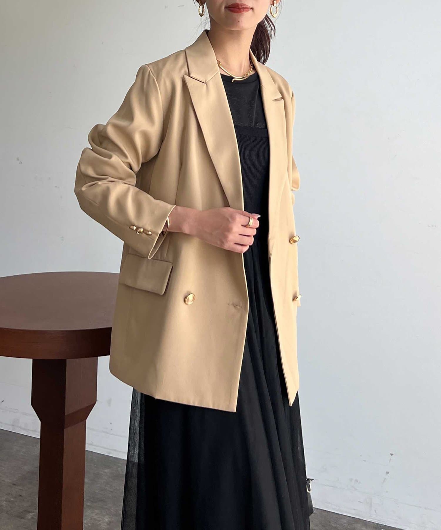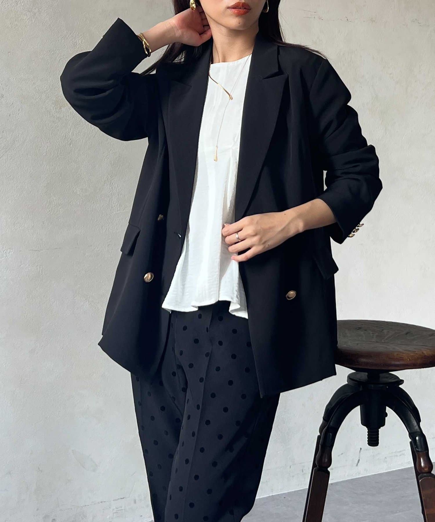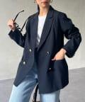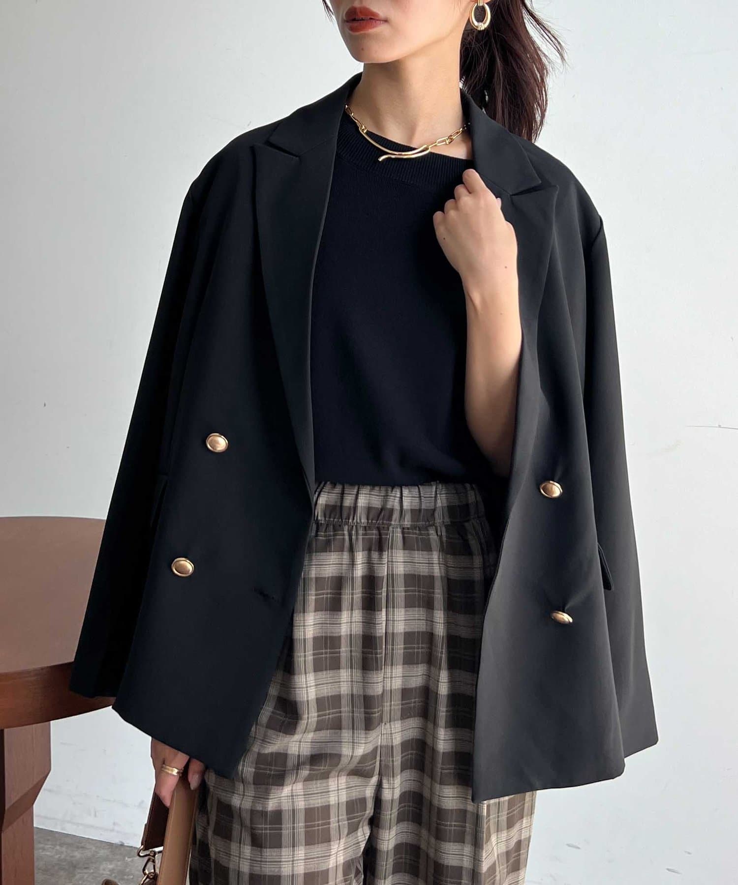 ゴールドボタンが女性らしさをプラスしたテーラードジャケット。