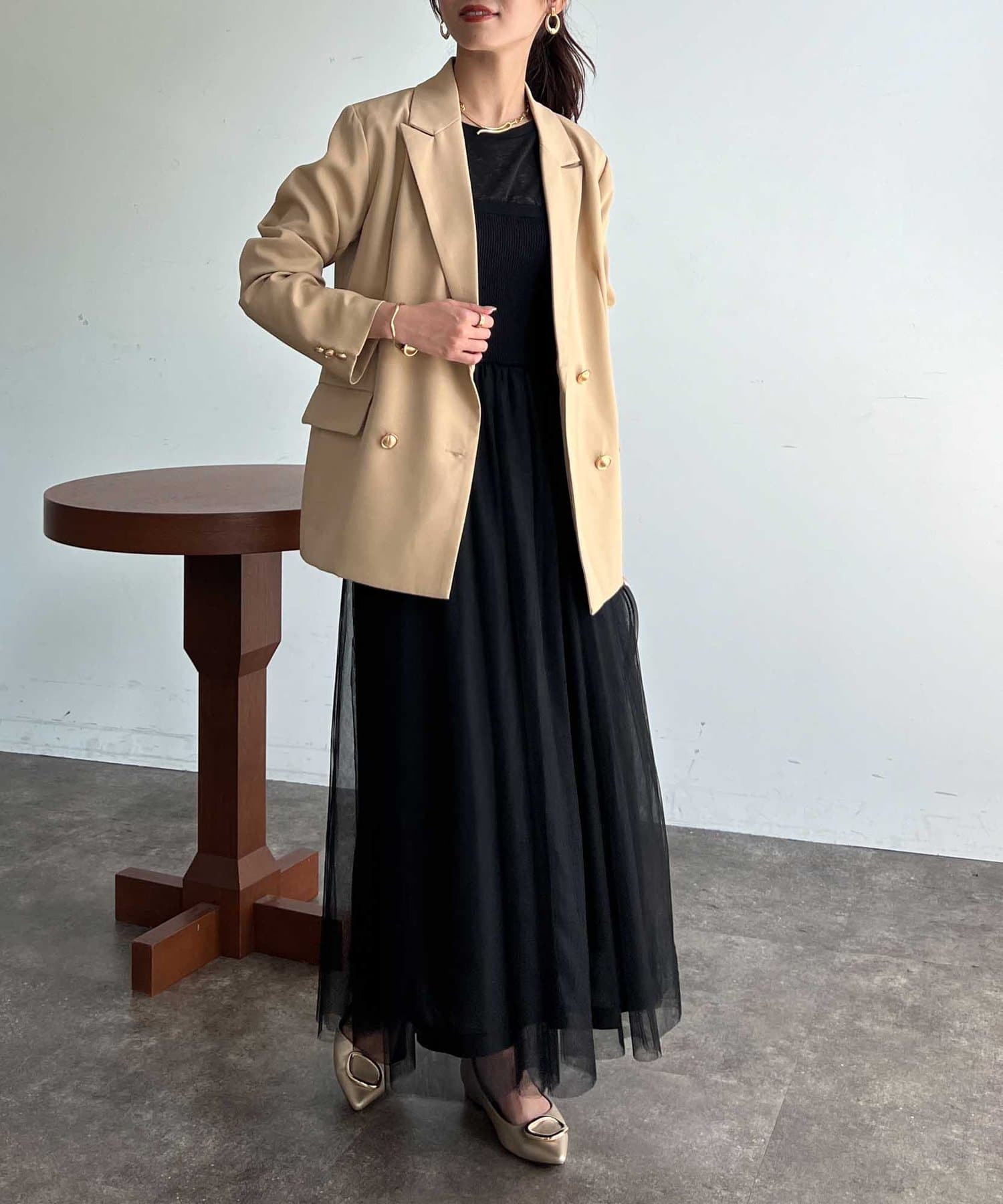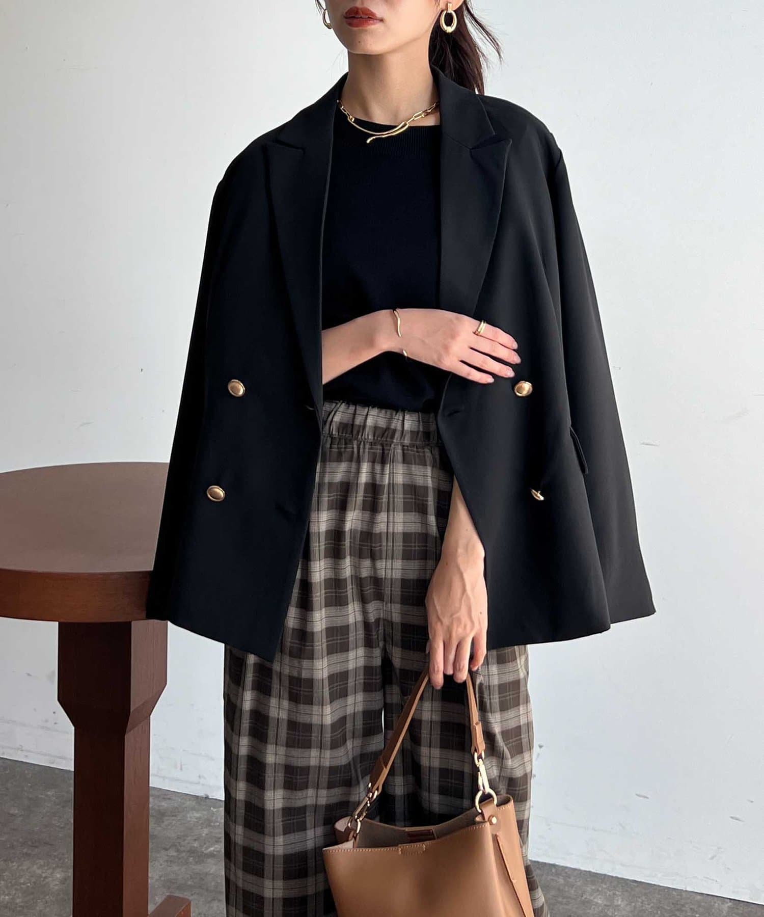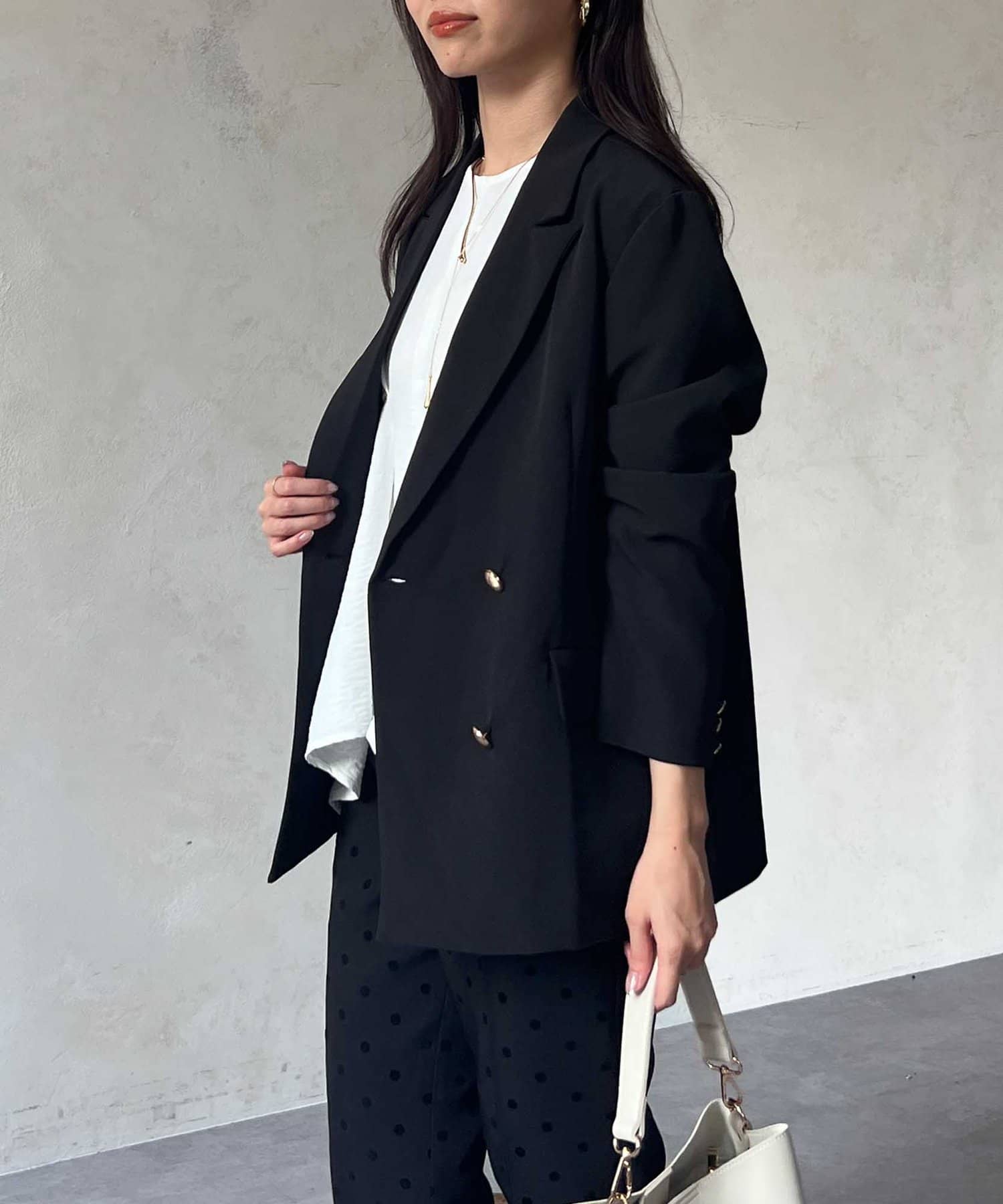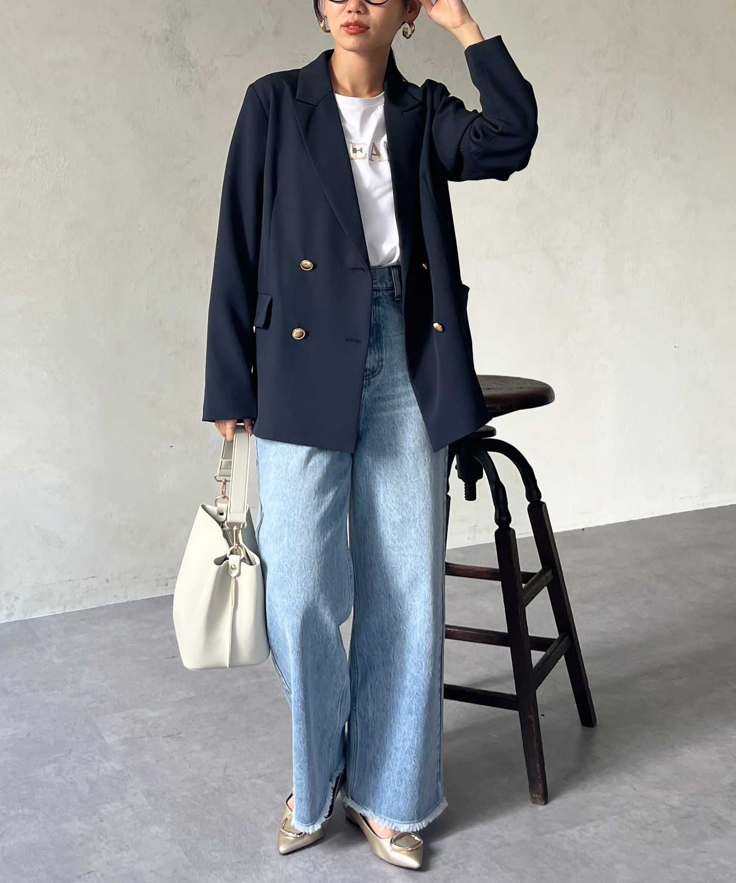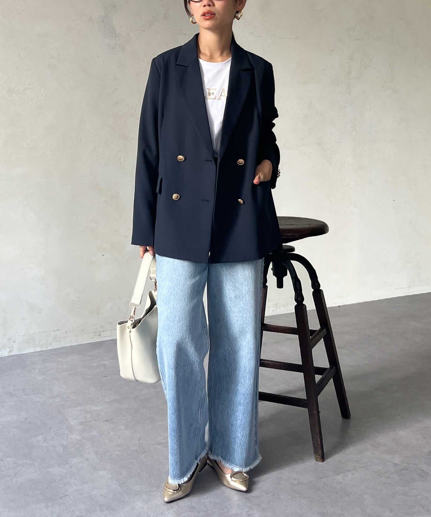 ゴールドボタンが女性らしさをプラスしたテーラードジャケット。
