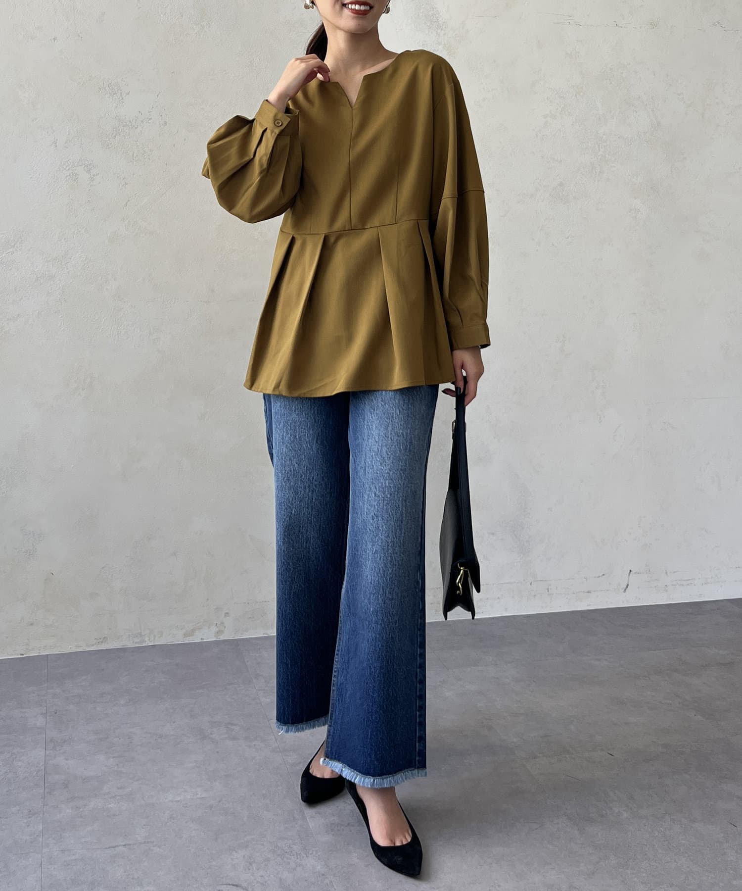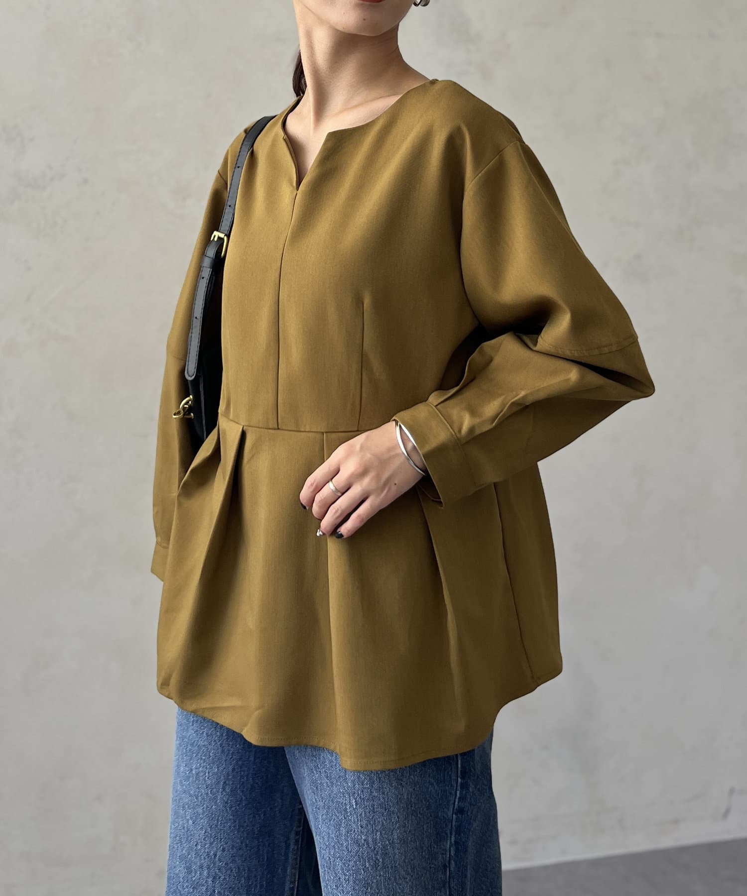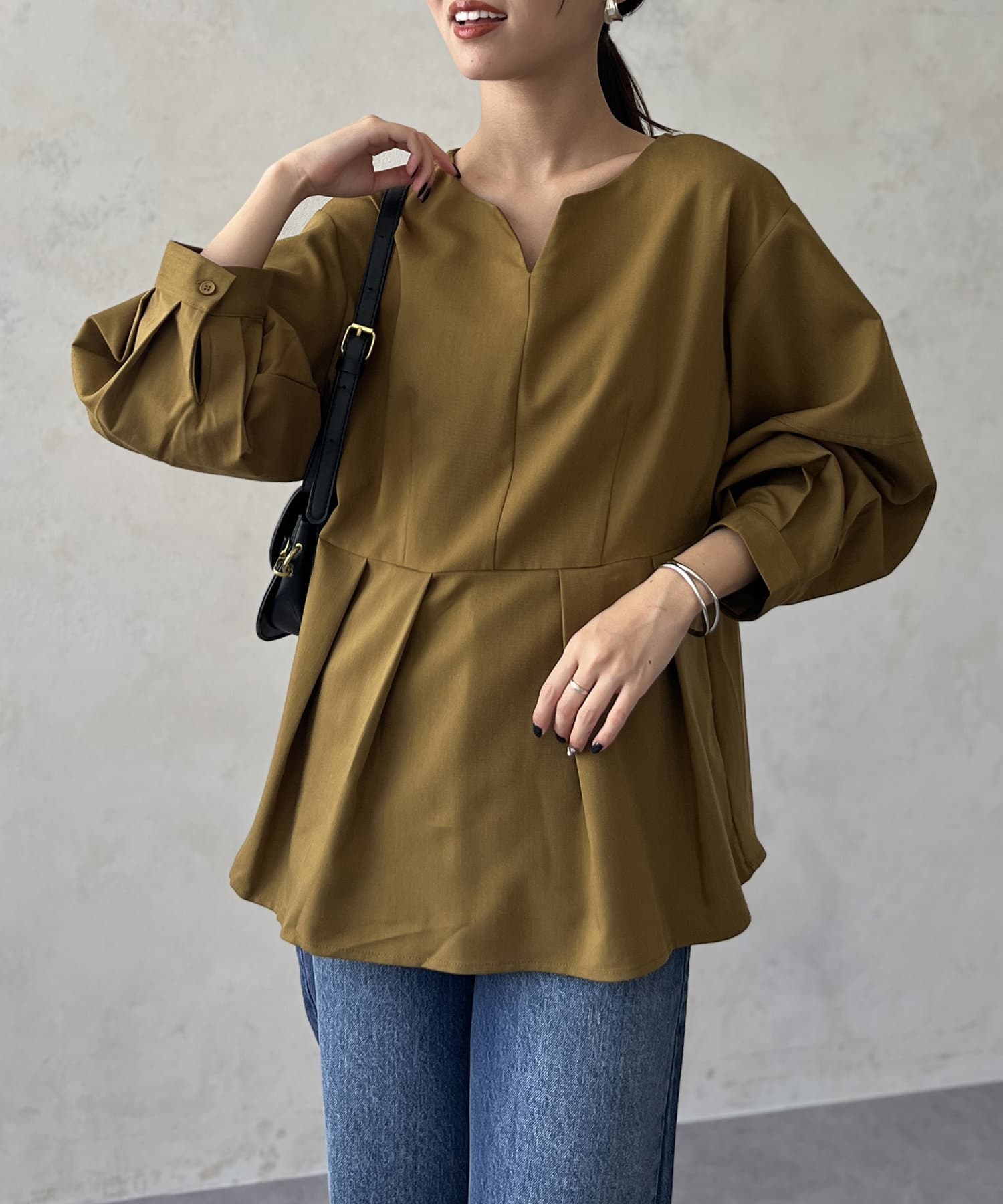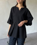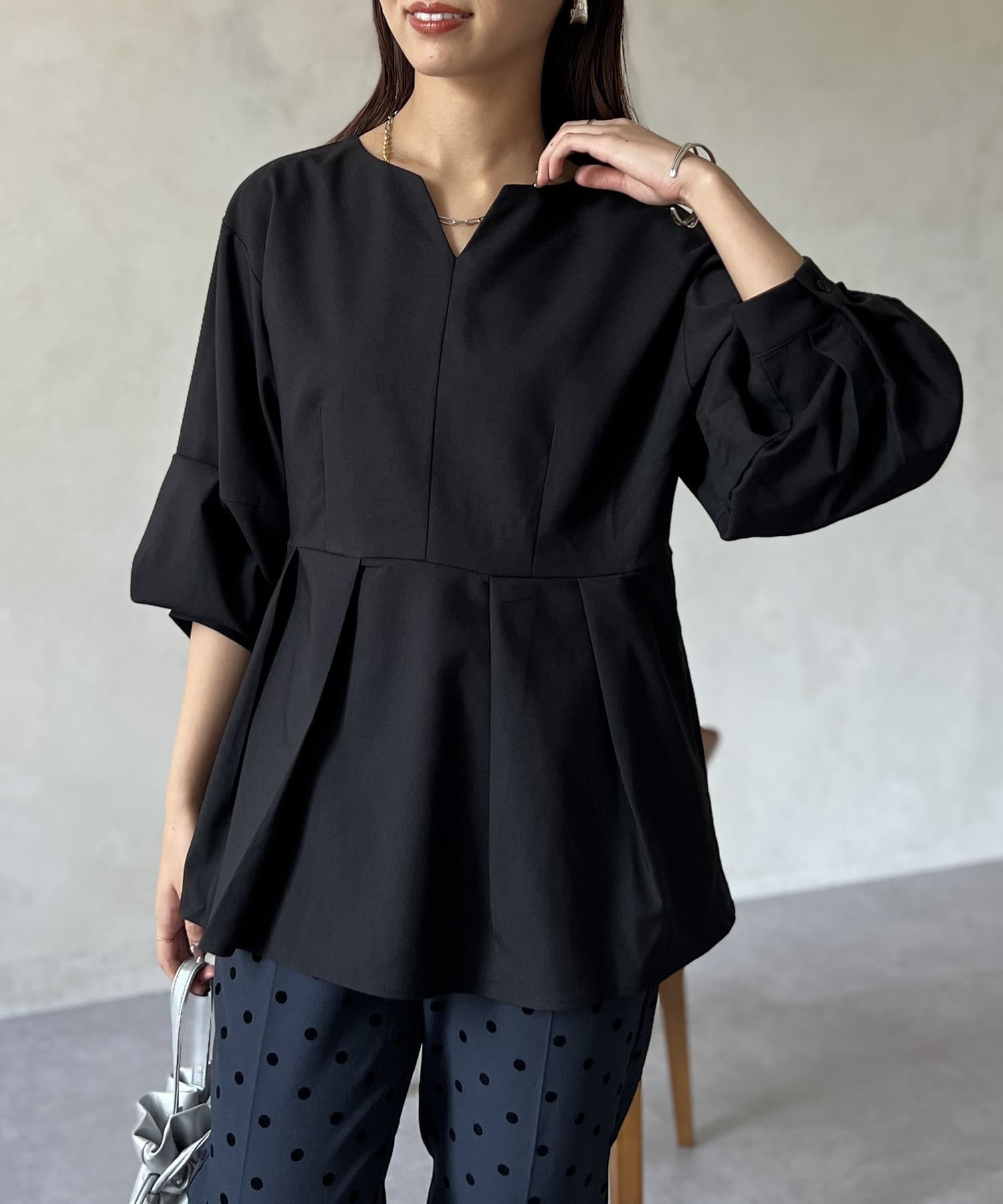 【マイナス3キロ見え】スリットネックペプラムブラウス