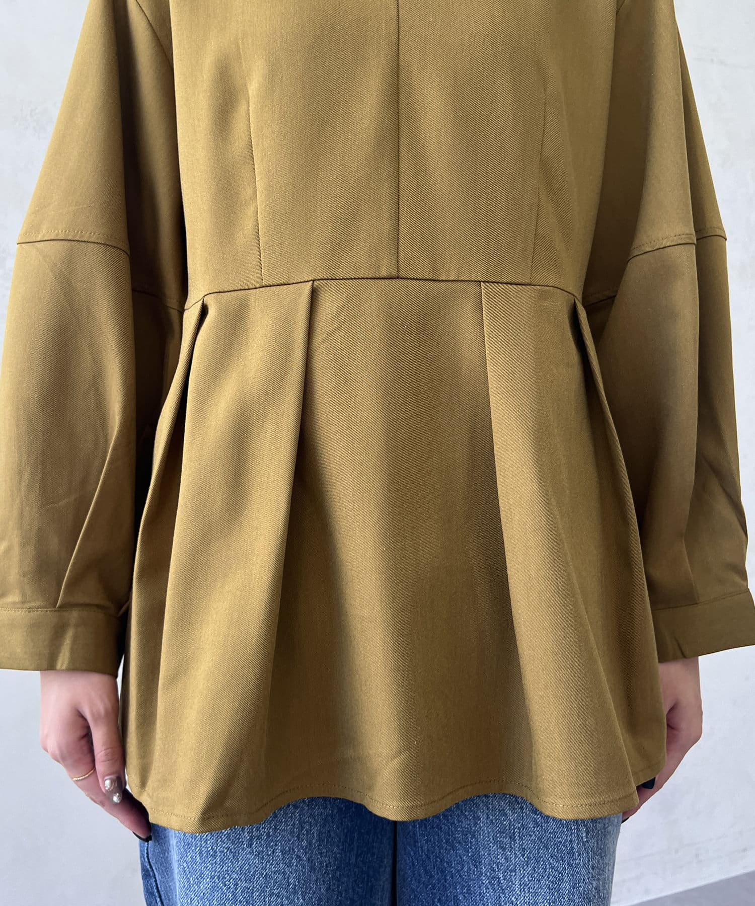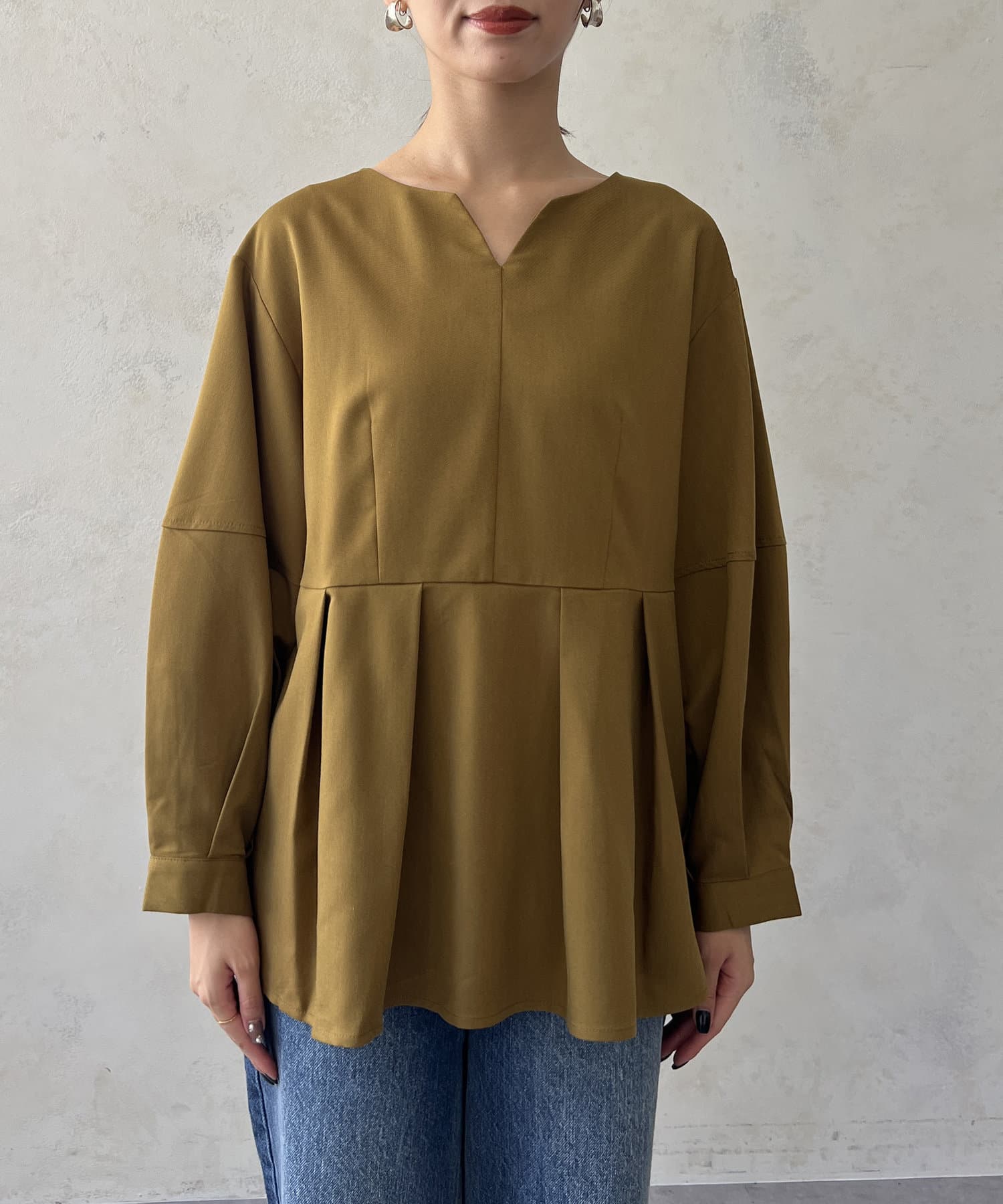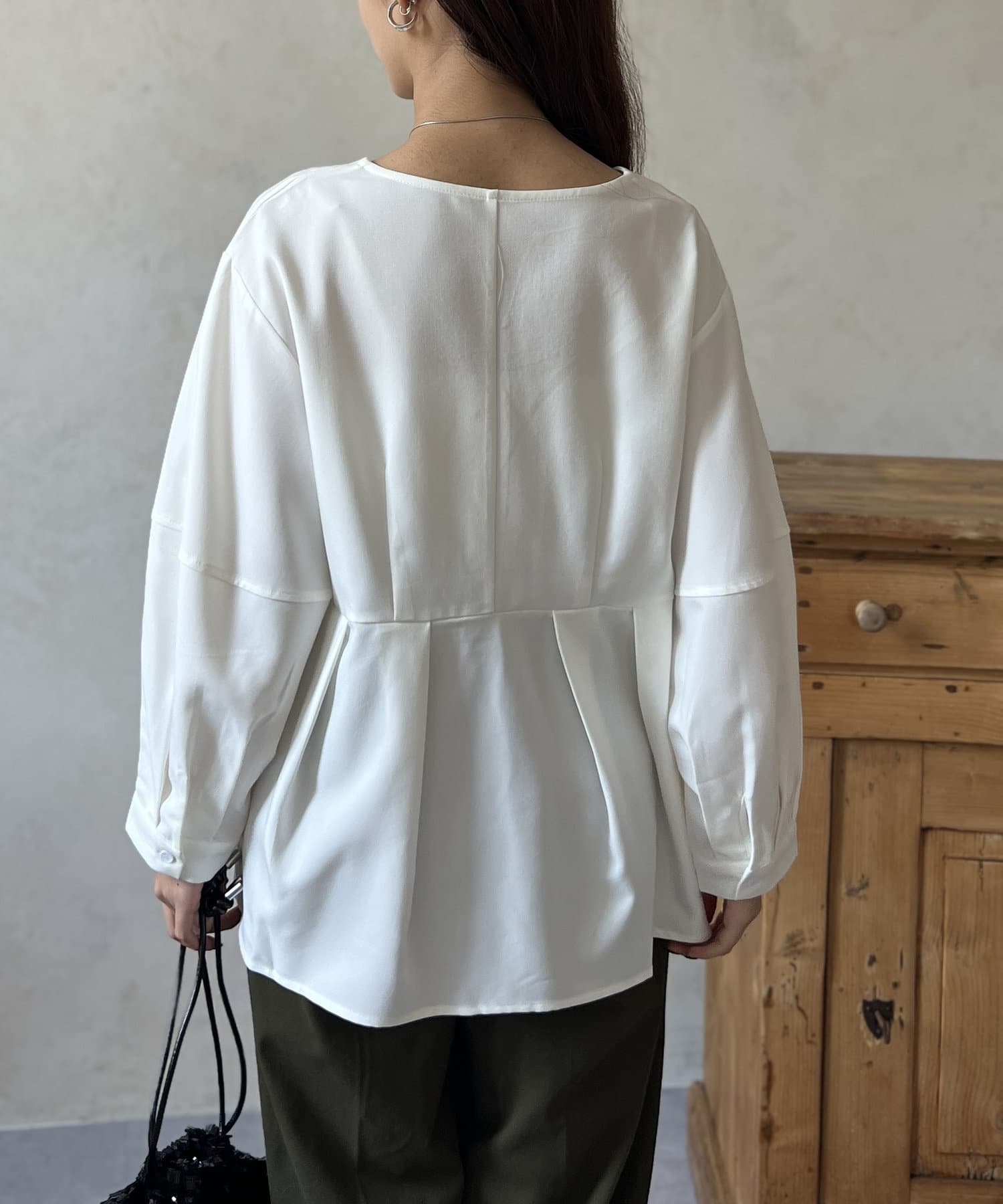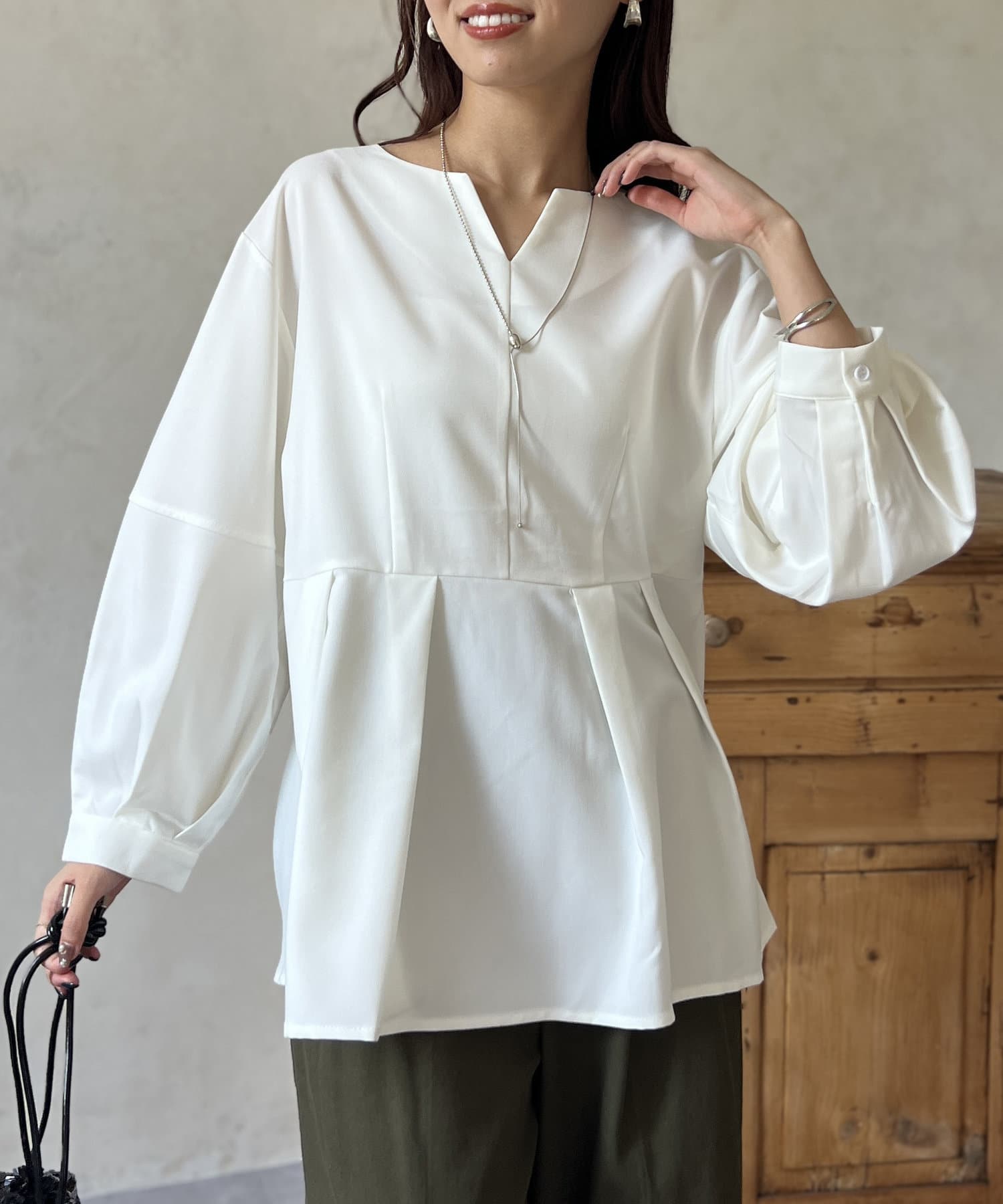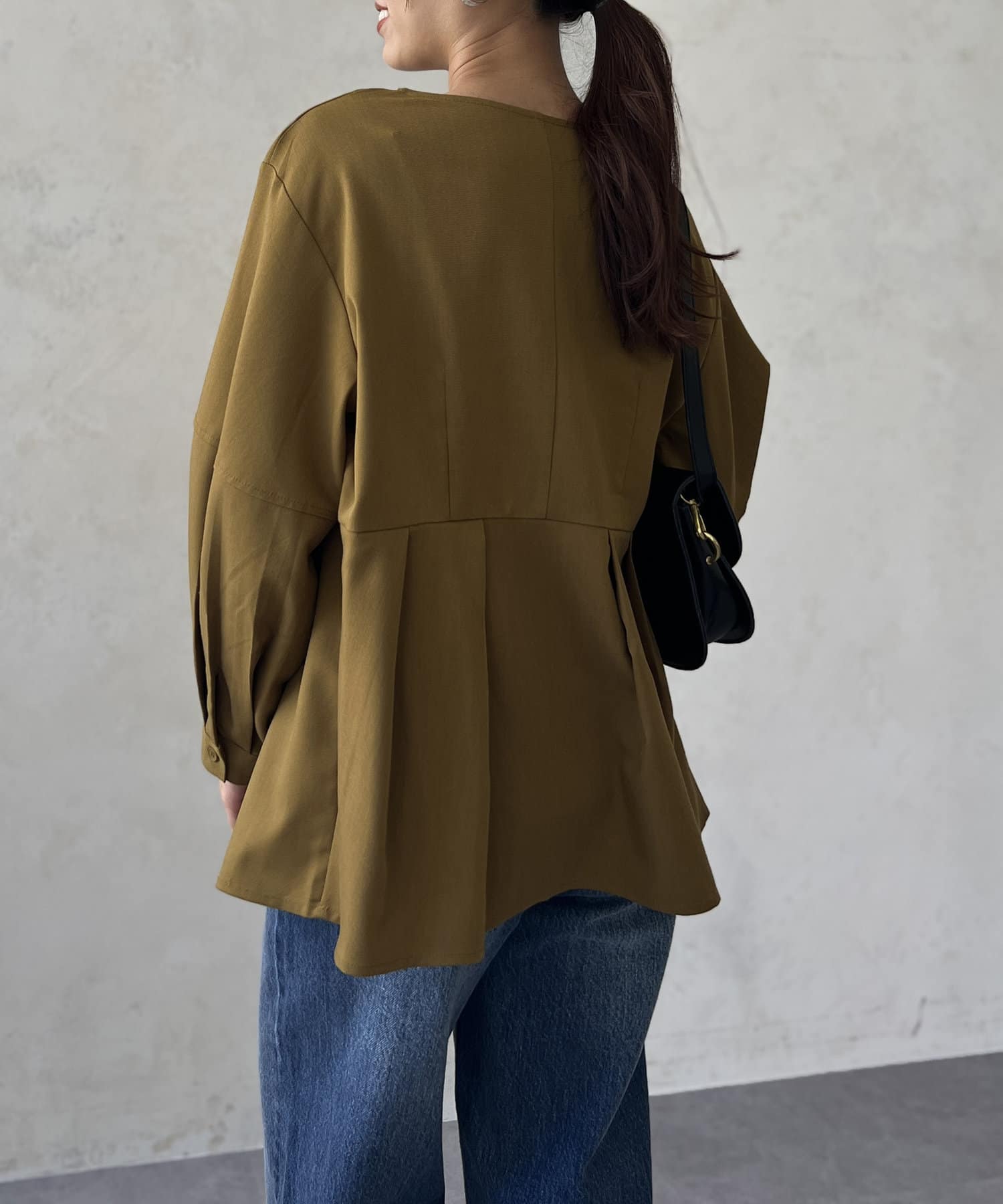 【マイナス3キロ見え】スリットネックペプラムブラウス
