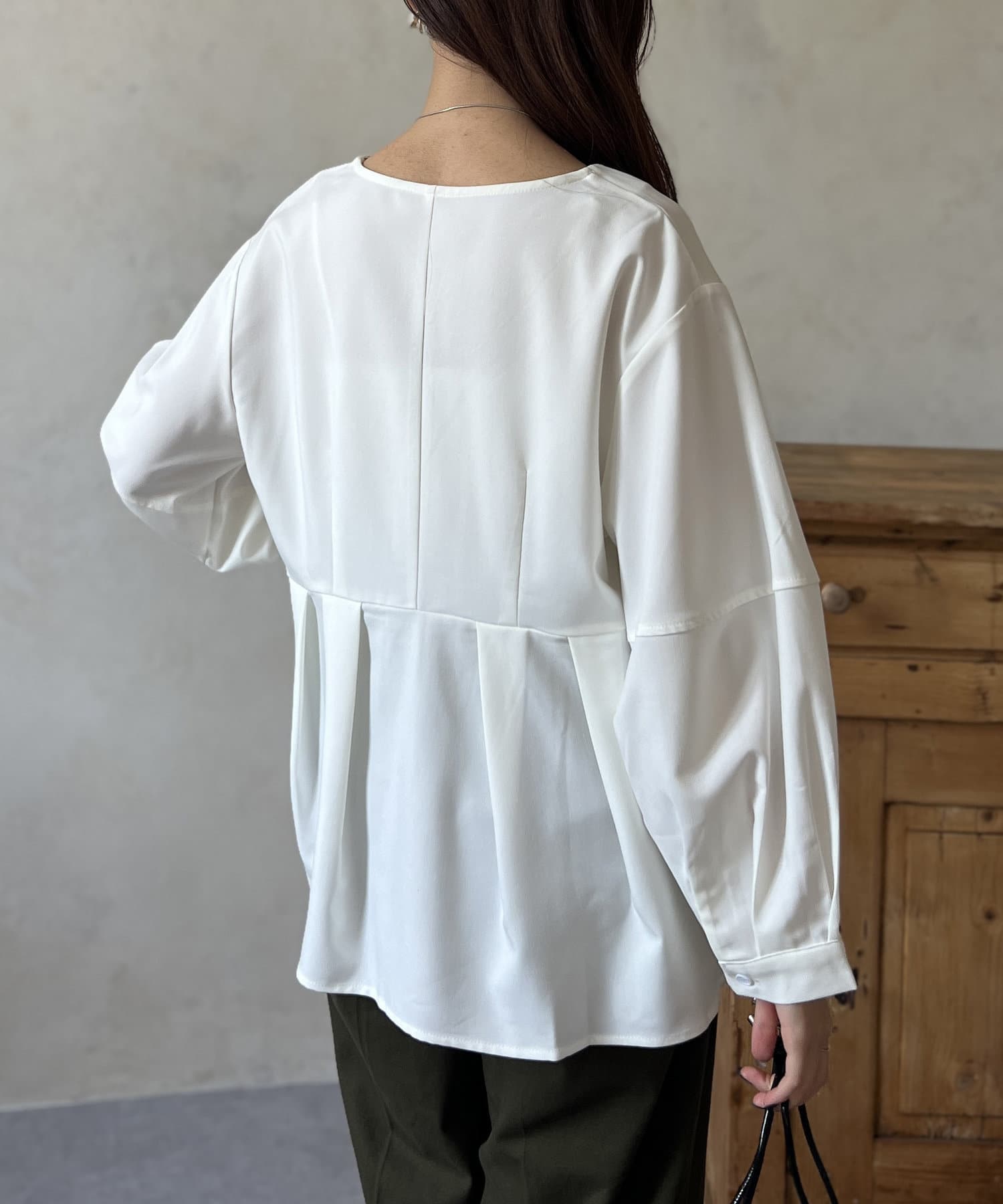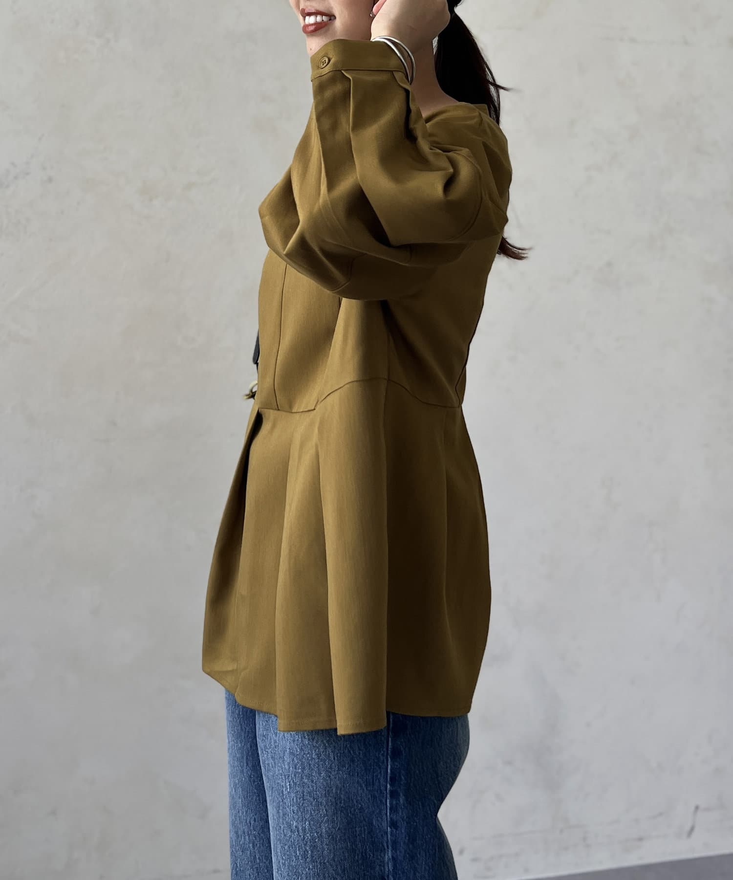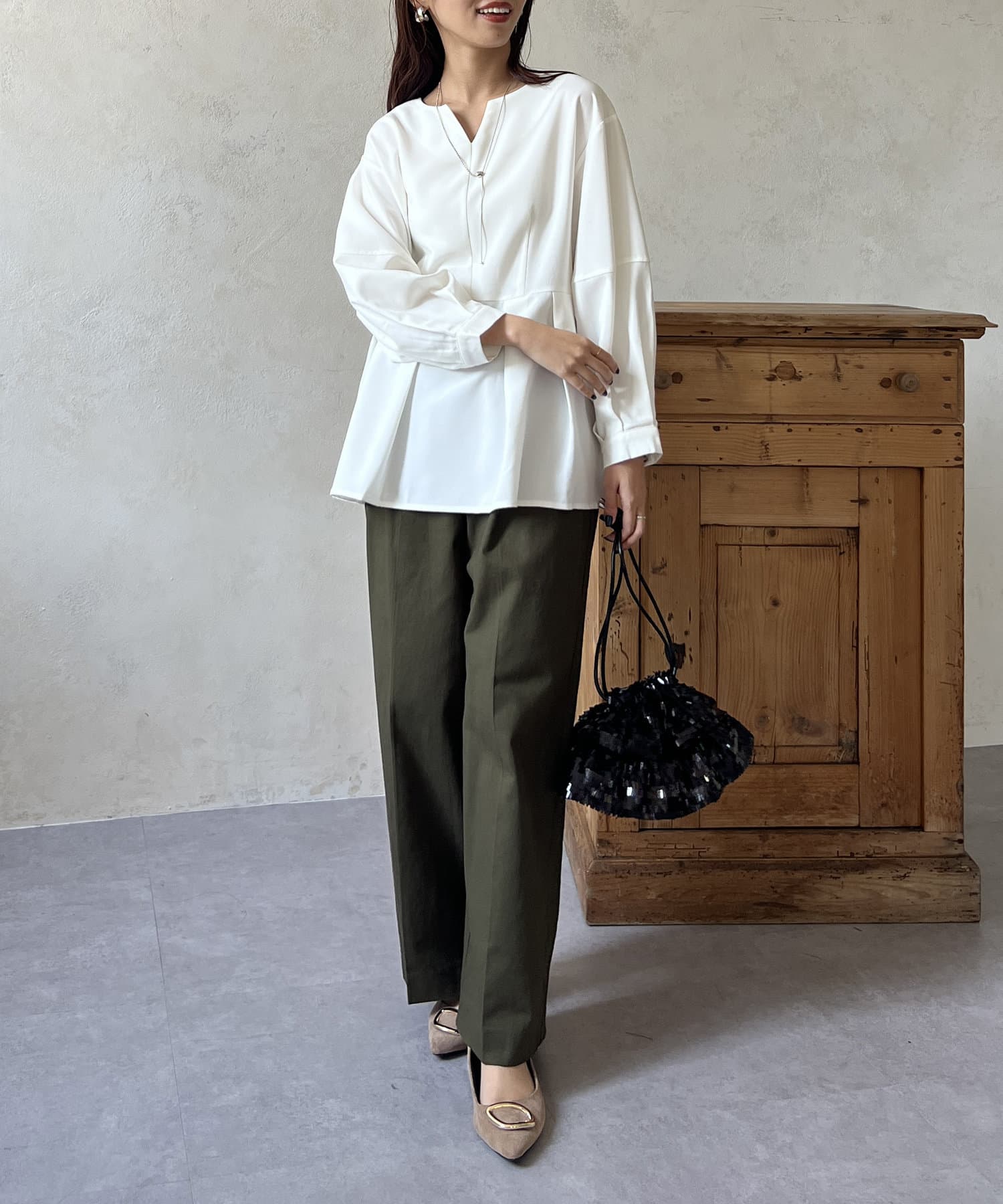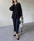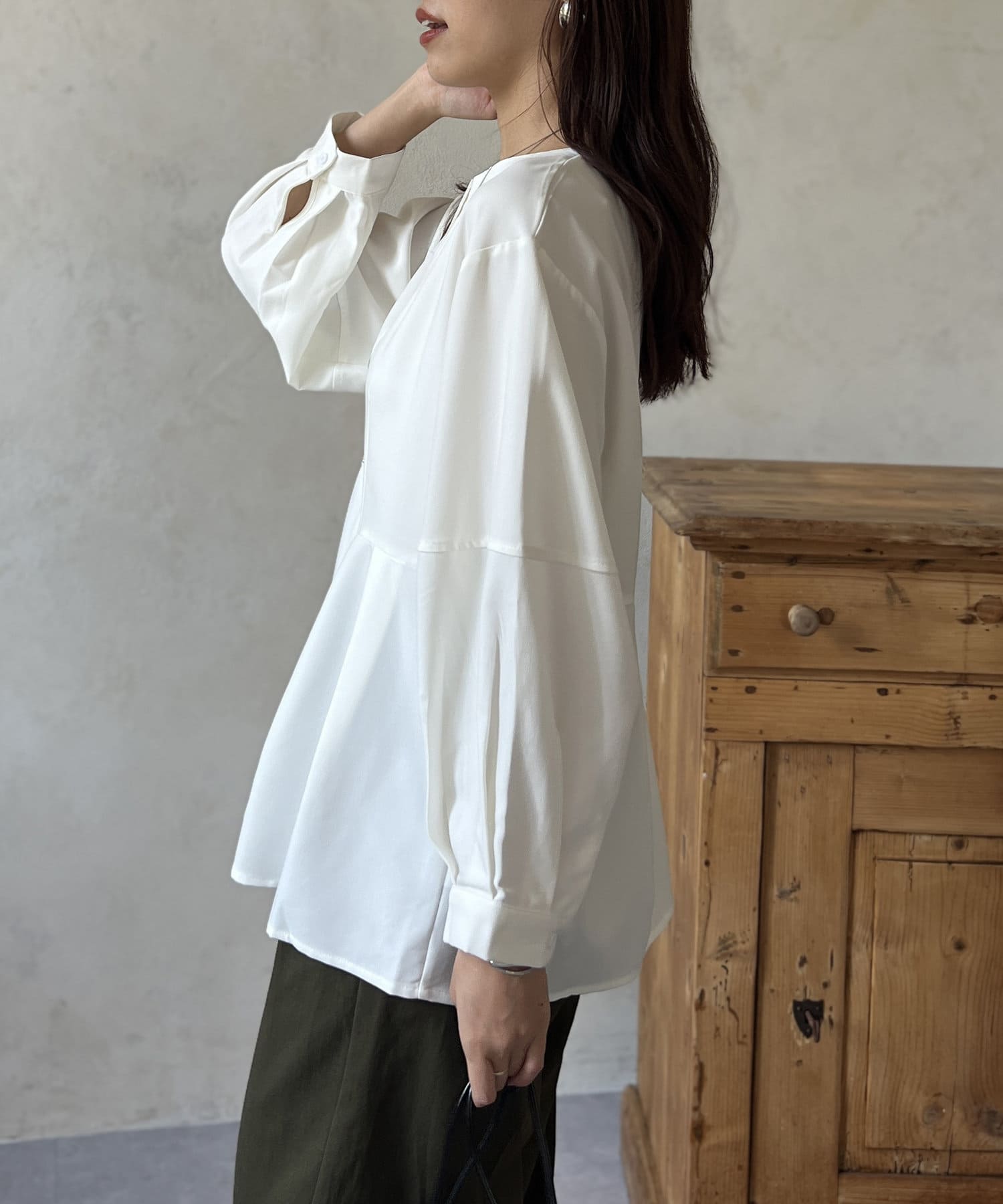【マイナス3キロ見え】スリットネックペプラムブラウス