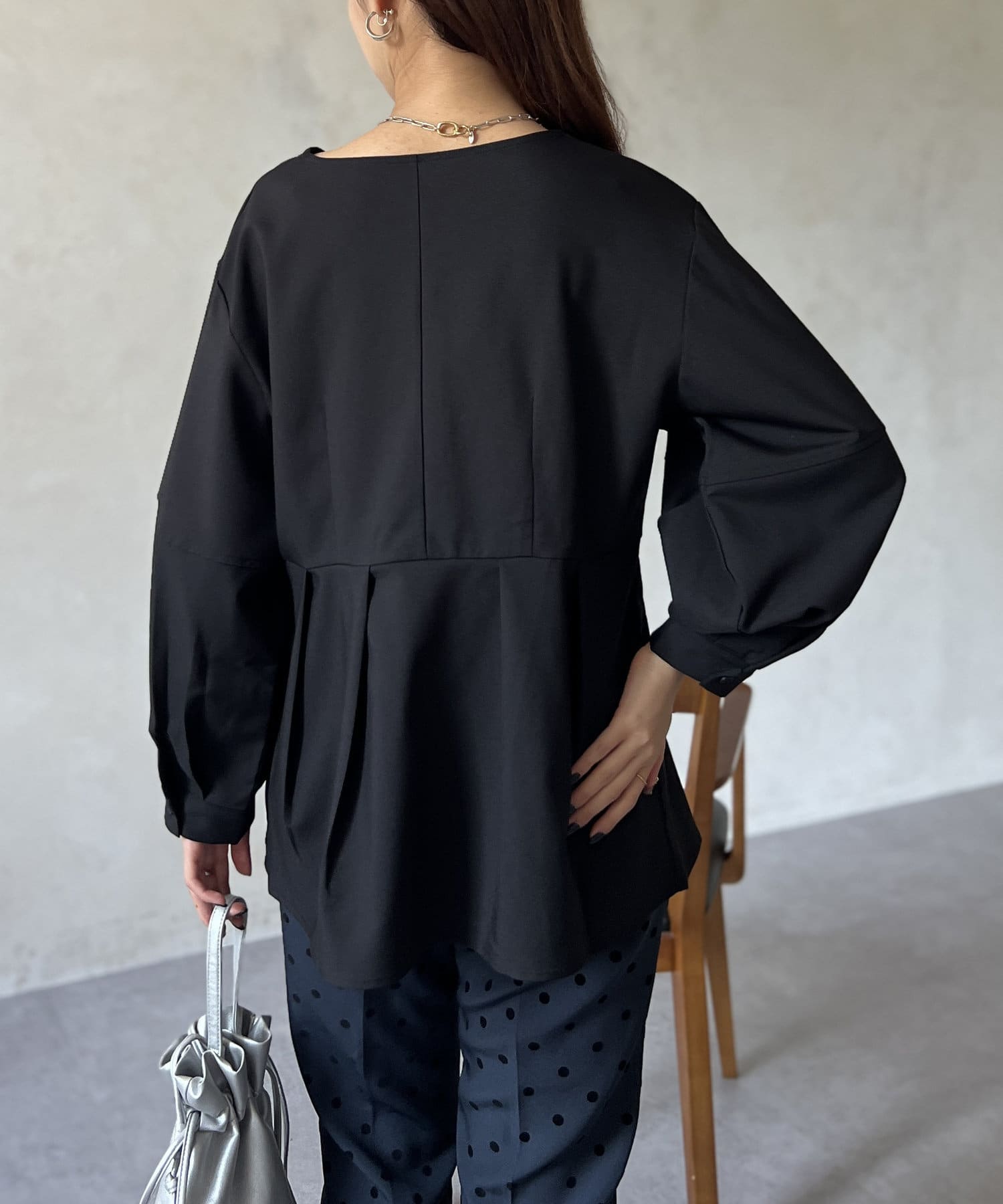 ペプラムデザインがオシャレに体型カバーしてくれるブラウス。